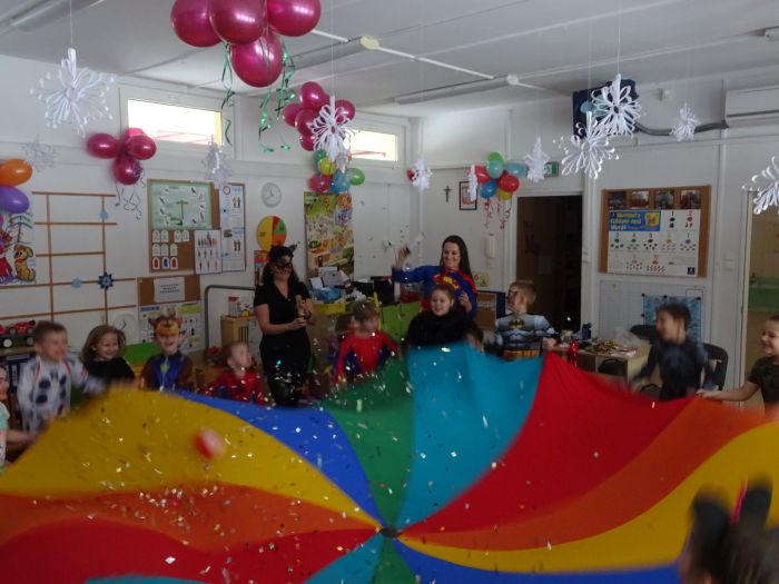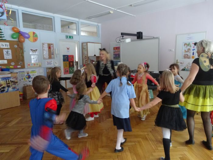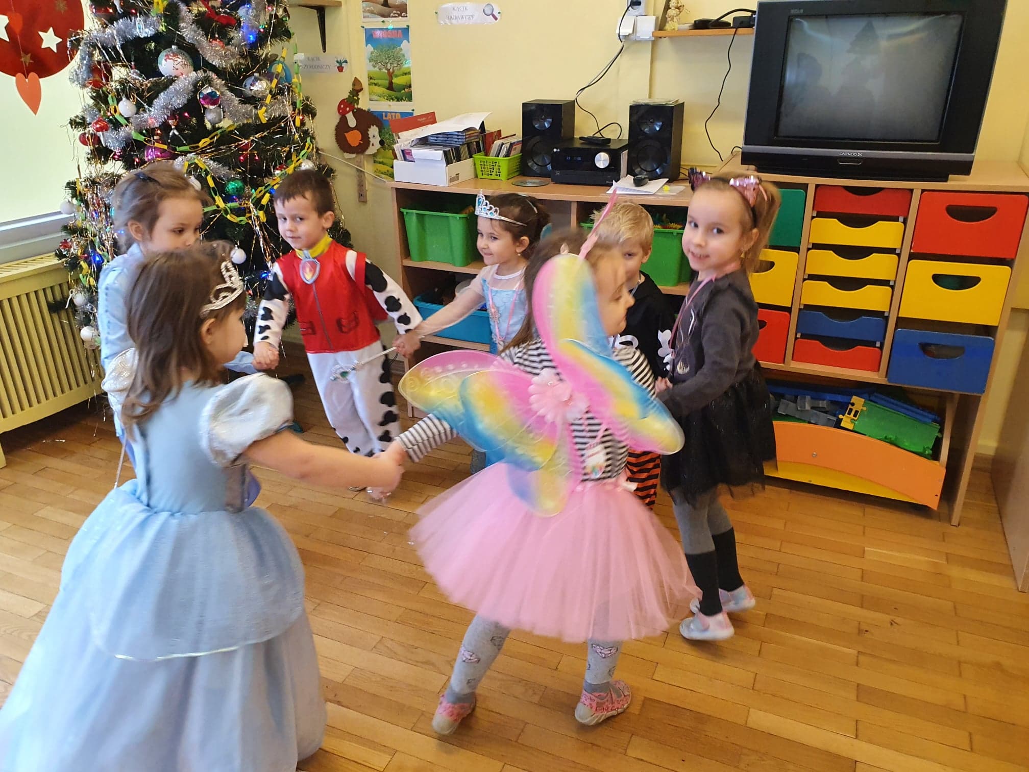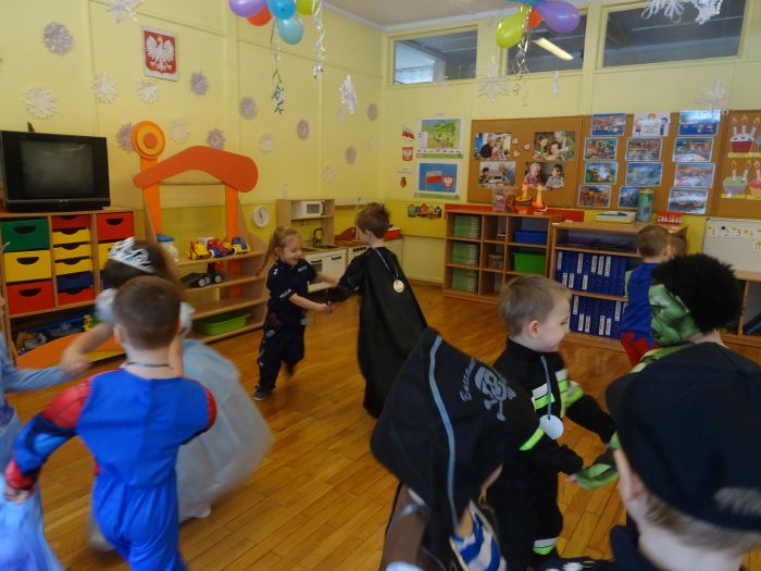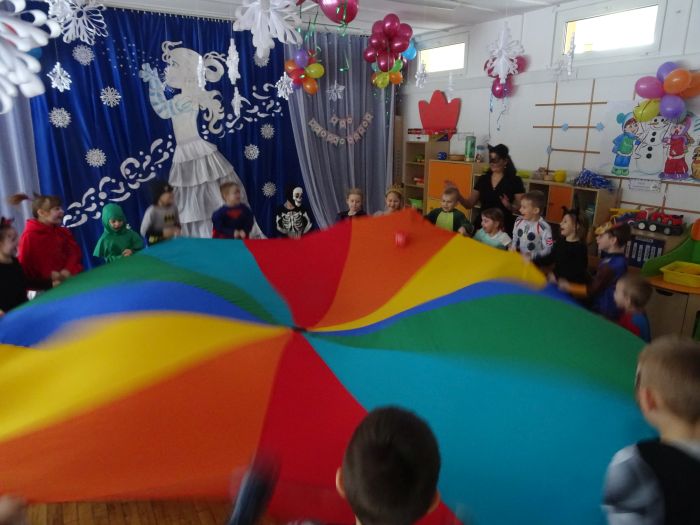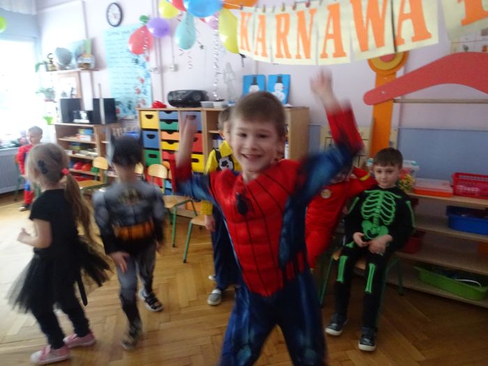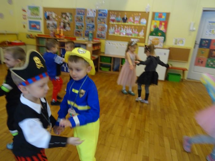 W piątek 29 stycznia w naszym przedszkolu już od rana było bardzo wesoło, a wszystko to za sprawą atmosfery związanej z Zabawą Karnawałową. Sale każdej z grup wyglądały bajecznie i kolorowo, przystrojone serpentynami i balonami. Przepięknie przebrane dzieci z dumą prezentowały wymyślne stroje. Niezliczone księżniczki, czarownice, policjanci, wróżki, biedronki, motylki, kotki, piraci, a także inne postacie z kreskówek zagościły na kilka godzin do naszego przedszkola. W tym dniu nauczycielki poszczególnych grup przygotowały dla dzieci niezliczone atrakcje. Były tańce, konkursy, pokaz mody karnawałowej, malowanie twarzy i modelowanie balonów. Wszyscy świetnie się bawili!