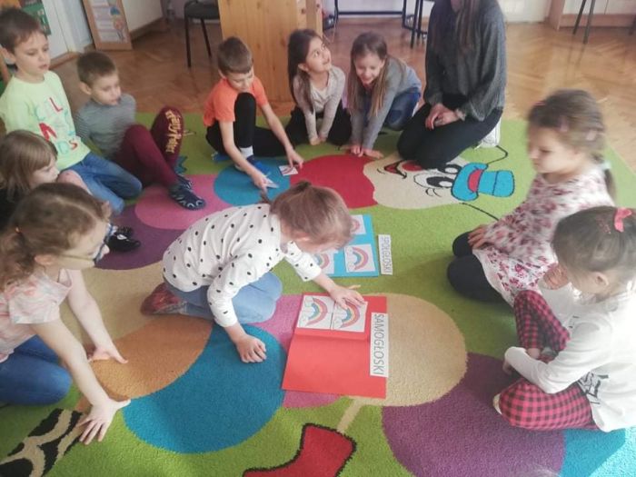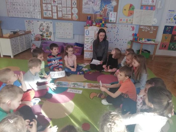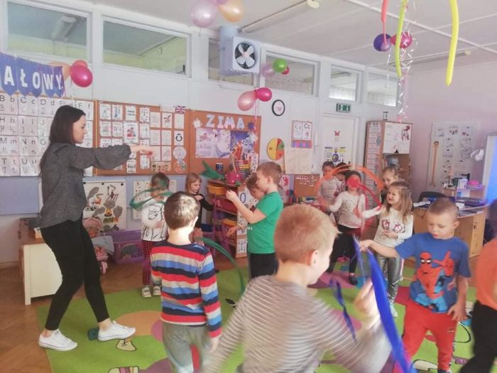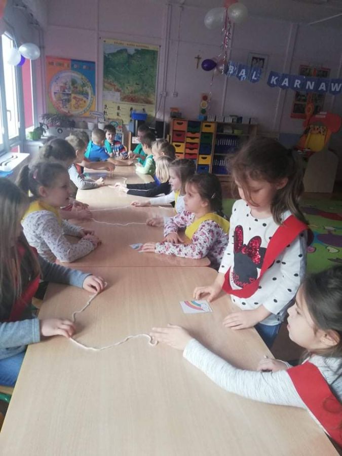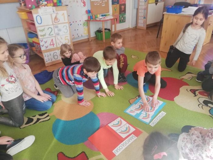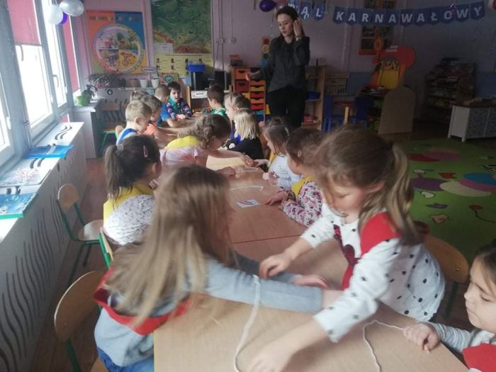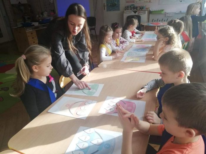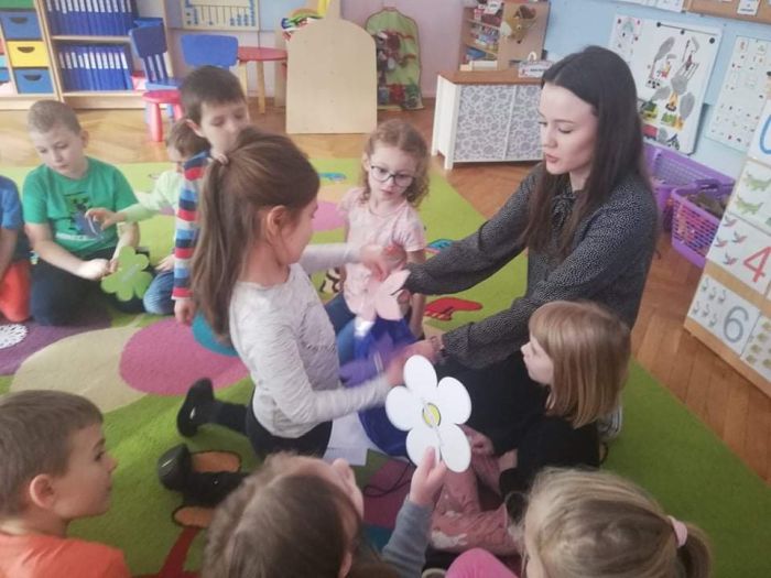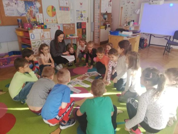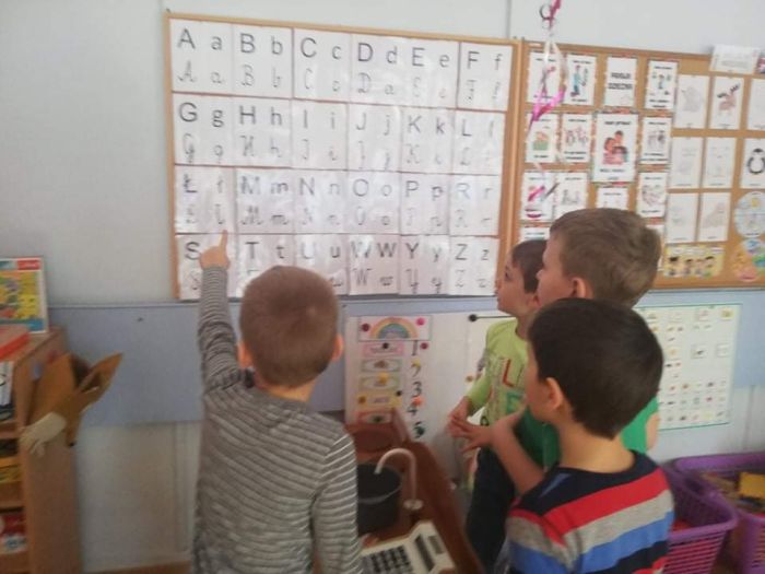 W lutym, w grupie „Motylki“ odbyły się zajęcia, mające na celu przygotowanie dzieci do nauki czytania i pisania. Dzieci wykonywały różne zadania mające na celu doskonalenie procesów analizy i syntezy wzrokowo-słuchowej. Pierwszym zadaniem było rozpoznanie swoich imion na wizytówkach i dostarczenie ich osobom, do których należą. Następnie dzieci odczytały wyrazy i ułożyły z nim temat zajęć. Po wysłuchaniu wiersza S. Karaszewskiego „Cztery pory roku“, zadaniem dzieci było odpowiedzenie na zadane pytania przez nauczyciela oraz określenie, czy dane zdanie jest prawdziwe, czy fałszywe. Kolejnym zadaniem dla dzieci było wykonanie improwizacji ruchowej do utworu „Wiosna“. Ponadto, dzieci ćwiczyły umiejętność współpracy w parach i grupach. Między innymi ich zadaniem było odnaleźć swoją parę – odpowiedniki liter pisanych – wielkich i małych, określić czy to samogłoska czy spółgłoska i podać wyraz rozpoczynający się od danej litery. Dzieci również pracowały w grupach – określały ilość sylab w wyrazach i przyporządkowywały do odpowiednich wiaderek. Następnie każda grupa dostała kartonik z literką, a ich zadaniem było odwzorować kształty liter za pomocą włóczki. Na zakończenie dzieci zagrały w grę z użyciem tablicy multimedialnej, musiały zaznaczyć odpowiedni obrazek, zaczynający się od danej litery.
