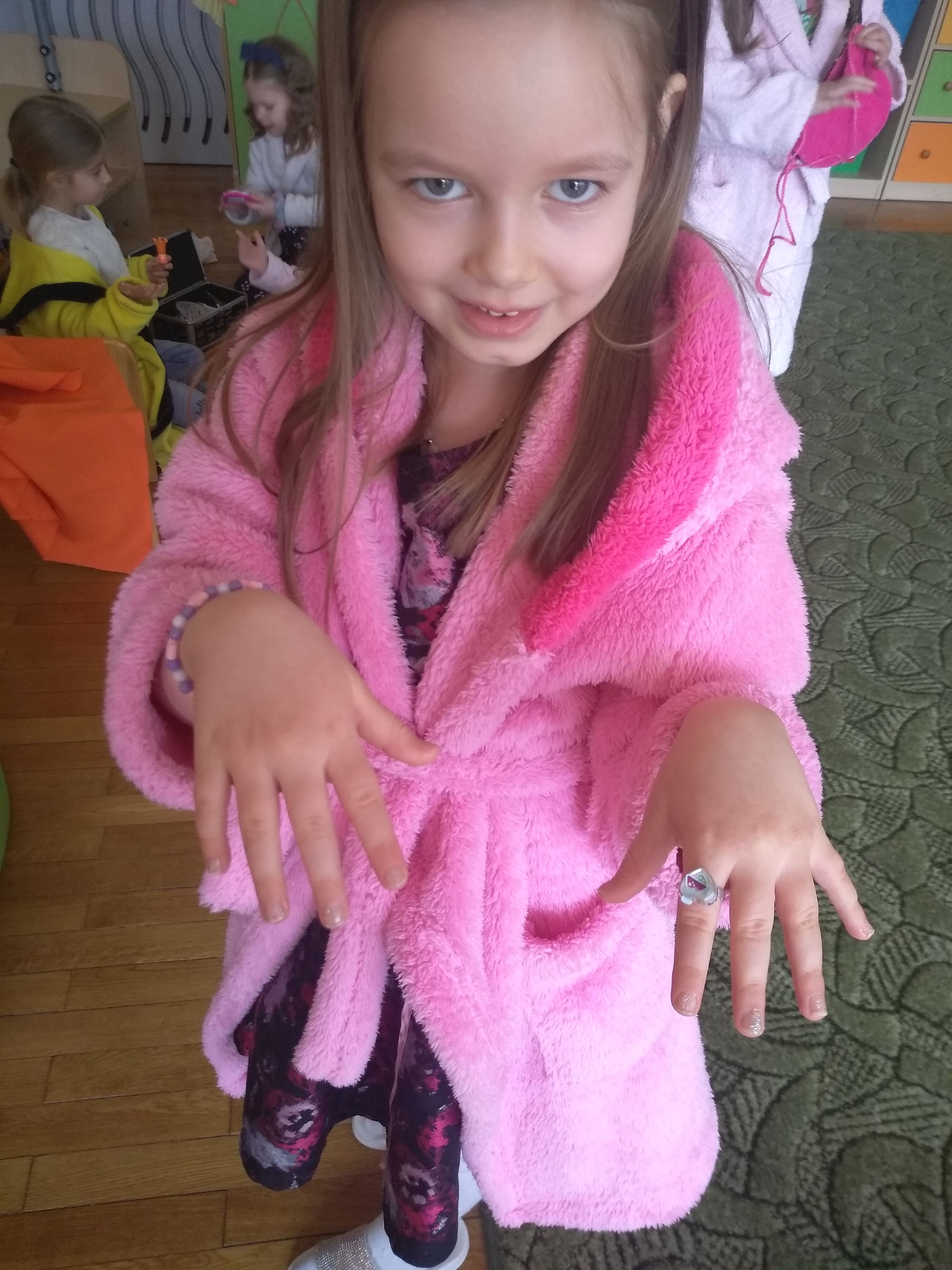 8 marca to wyjątkowy dzień w roku. Wtedy swoje święto obchodzą wszystkie kobiety, zarówno te duże jak i te małe .W tym szczególnym dniu wszyscy chłopcy złożyli swoim paniom i dziewczynkom życzenia. W grupie " Zajączki" radosna atmosfera panowała już od rana, ponieważ przedszkolna sala zamieniła się w salon SPA i urody. Było malowanie paznokci, maseczki na twarz, zdrowe przekąski i strefa odpoczynku przy relaksacyjnej muzyce. Małe kobietki były bardzo dumne gdy mogły mieć pomalowane paznokcie we wszystkich kolorach tęczy. Przy okazji uroczystości dzieci zapoznały się z niektórymi sylwetkami znanych słynnych kobiet i ich działalnością i znaczeniem. W tym wyjątkowym dniu chłopcy spisali się " na medal" ; z ogromnym zaangażowaniem, samodzielnie i przy pełnej współpracy przyrządzili dla dziewczynek przepyszną i zdrową sałatkę owocową, która wszystkim dzieciom bardzo smakowała. Dziewczynki miały okazję ozdobić własne szarfy oraz otrzymały certyfikaty Super dziewczynki z podpisami od chłopców i koleżanek. Dziewczęta otrzymały również piękne imienne bransoletki z życzeniami od chłopców . Dzień minął wszystkim bardzo przyjemnie i z pewnością na lata przetrwa w sercach małych kobietek .