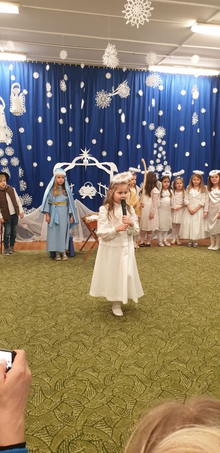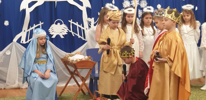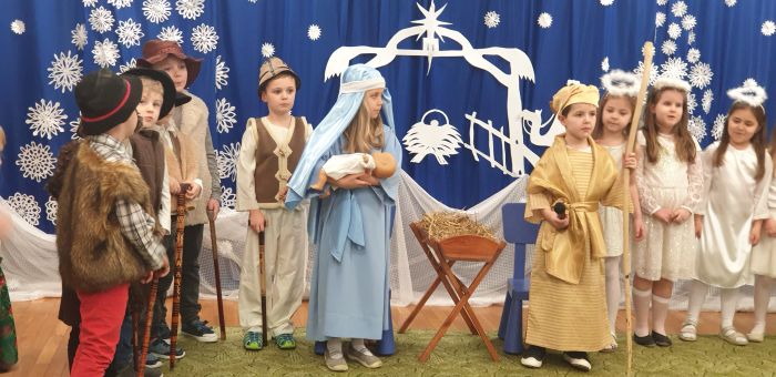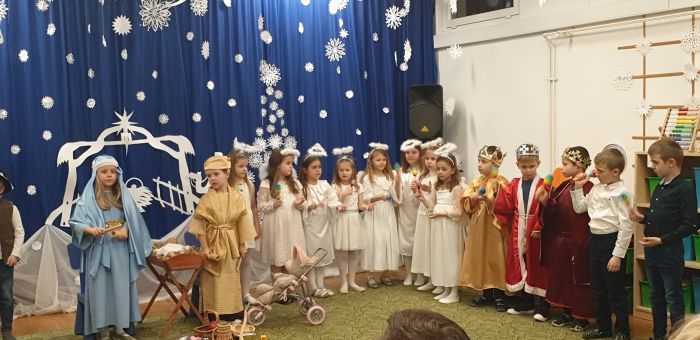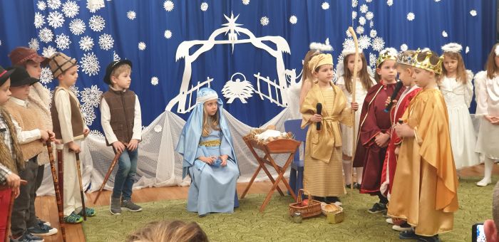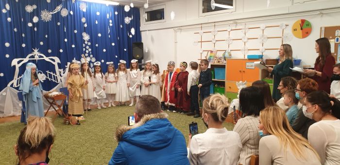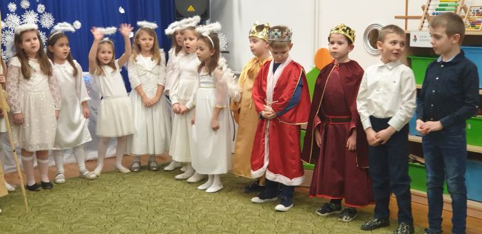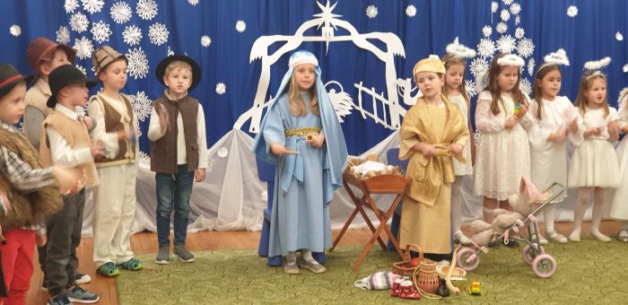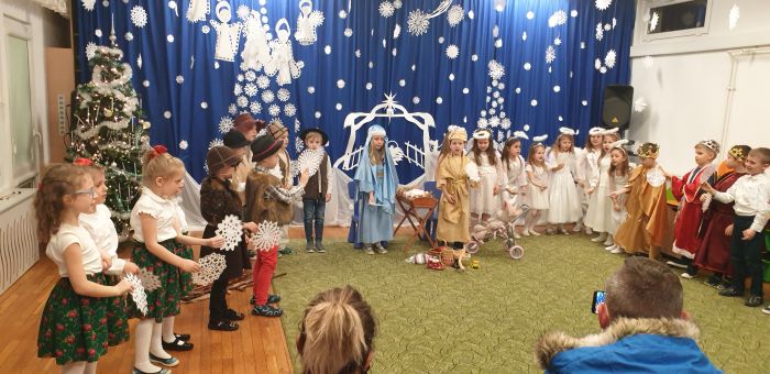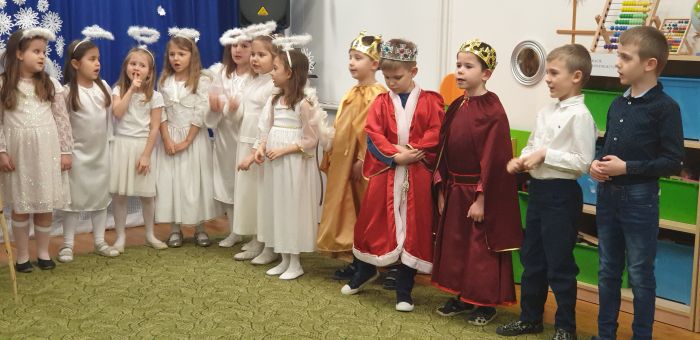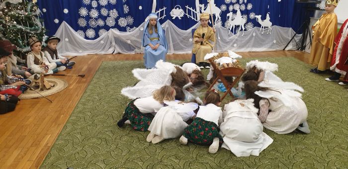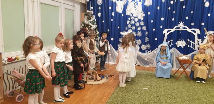 11 stycznia, dzieci z grupy „Motylki“ przedstawiły piękne Jasełka dla swoich rodziców. Występ był wyjątkowy. Mali aktorzy zaprezentowali się doskonale. Dzieci przebrane w piękne stroje recytowały teksty i interpretowały w sposób aktorski swoje role. Sala wypełniona była aniołkami, które śpiewały kolędy, pastorałki i wspaniale recytowały przygotowane wierszyki. Do szopki przybyli też pastuszkowie oraz dzieci z różnych stron świata, które przyniosły Dzieciątku dary. Nasi artyści śpiewali pastorałki i kolędy, grały na instrumentach, a aniołki i dzieci pięknie zatańczyły do pastorałki „Cicho, cicho na paluszkach“. Na koniec, zgodnie z tradycją, dzieci złożyły swoim rodzicom serdeczne życzenia.