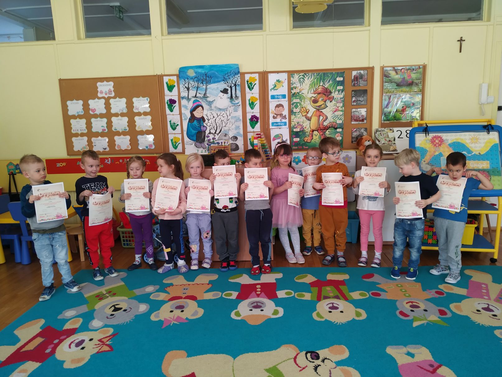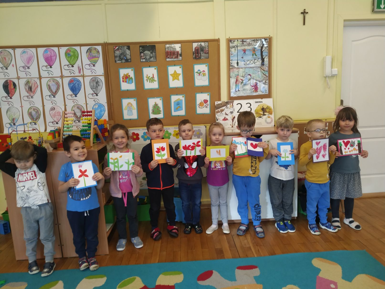 Przedszkolaki z grupy „Misie“ wzięły udział w konkursie plastycznym zorganizowanym przez Przedszkole nr 43 w Lublinie pod Honorowym Patronatem Prezydenta Miasta Lublin, Froebel.pl oraz Bliżej Przedszkola. Zadanie konkursowe polegało na przygotowaniu kartki na Dzień Kobiet. Chętne „Misie“ z zaangażowaniem wykonywały kartki, które miały wywołać uśmiech i radość Pań w Dzień Ich Święta. Kartki zostały przesłane do Lublina, a następnie przekazane Wspaniałym Kobietom:
