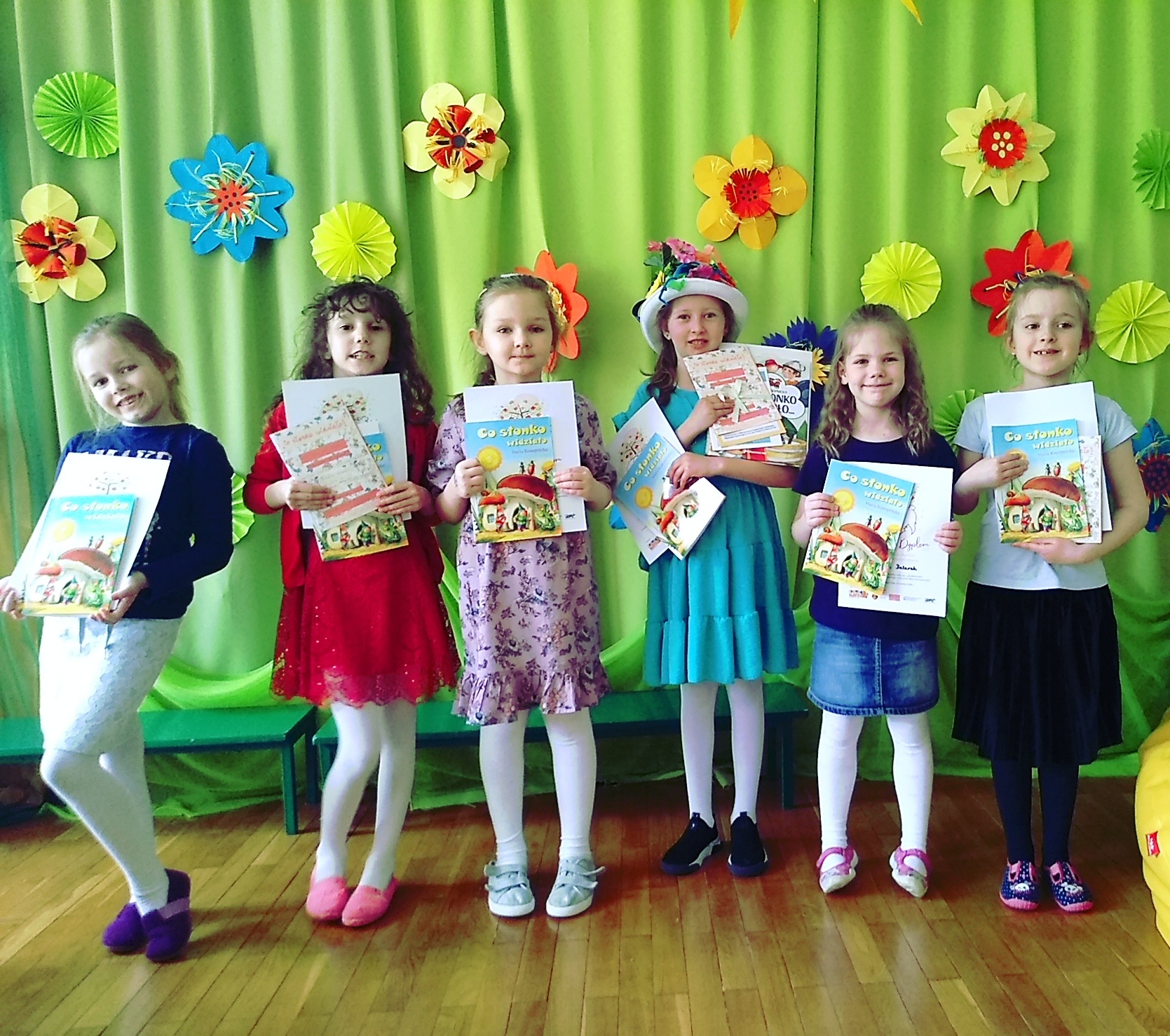 W Miejskiej Bibliotece Publicznej podsumowano 6. Przegląd „Książka czeka na Przedszkolaka" o tematyce „Co słonko widziało". W tym roku tematem przewodnim przeglądu były inspiracje twórczością Marii Konopnickiej. Kilka dziewczynek: Hanna, Paulina, Emilia S. ,Laura, Amelia i Emilia J. stworzyły ilustracje i tekst własnej książeczki inspirowanej twórczością bajkopisarki. Gotowe książeczki dzieci wraz ze swoimi opiekunami odczytały i zaprezentowały swoim kolegom i koleżankom, a następnie same zaprojektowały kapelusz dedykowany Marii Konopnickiej. Po wręczeniu nagród i dyplomów przyszedł czas na słodki poczęstunek. W literackich szrankach oprócz naszych „Zajączków" stanęły dzieci z Przedszkola Chatka Misia, Zespołu Szkół nr 2 oraz maluchy z Zespołu Szkół nr 6.