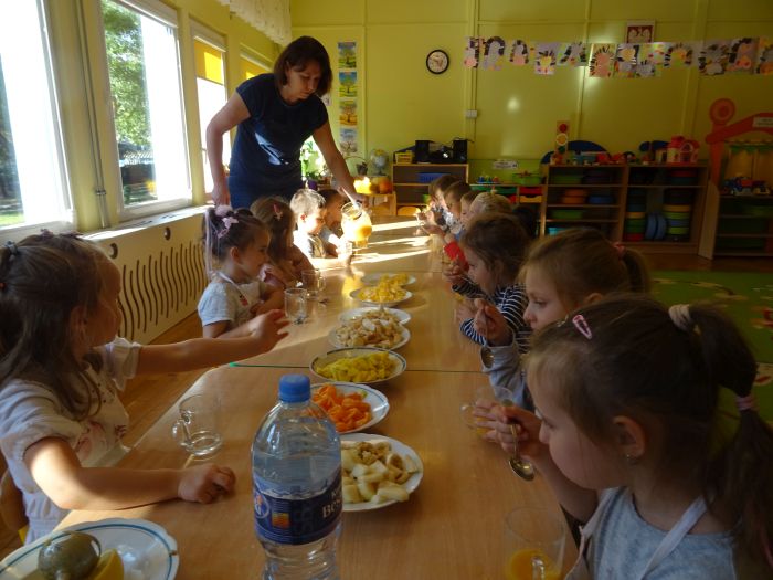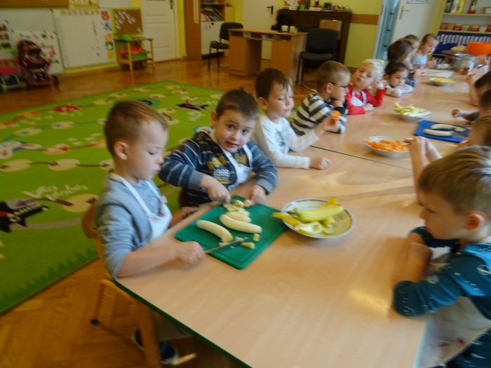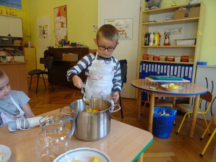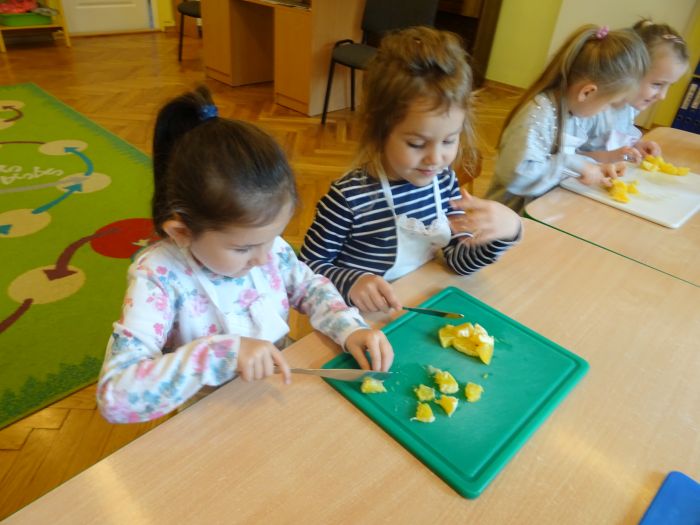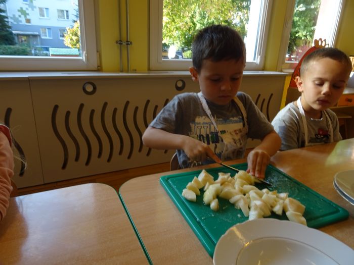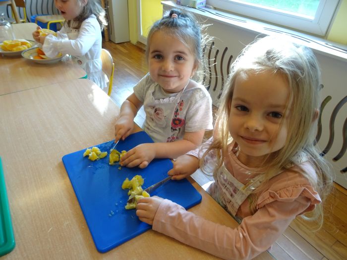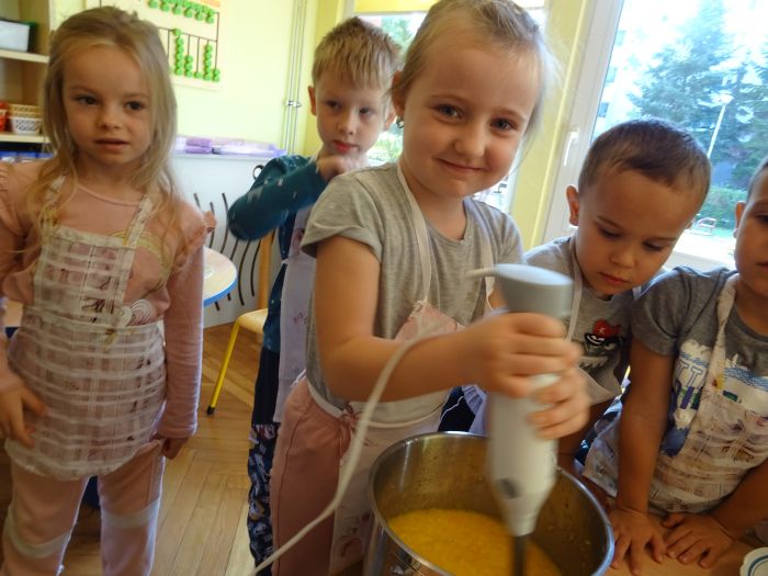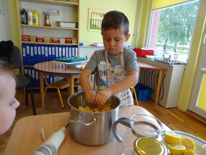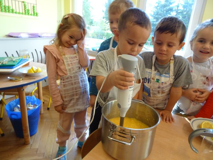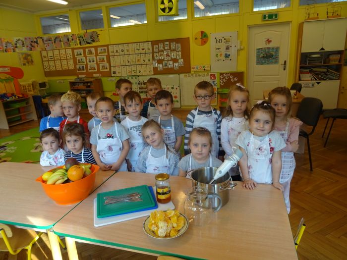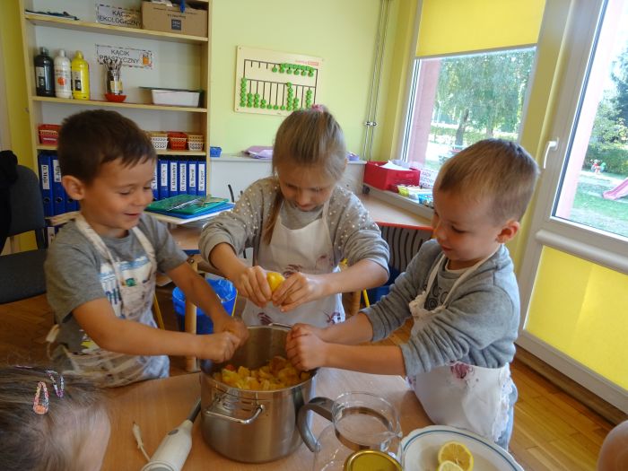 Dnia 07.10.2021r. dzieci wykonały mus owocowy. Pogadanka na temat zdrowego odżywiania oraz samodzielne wykonanie zachęciło dzieci do konsumpcji. Wartości zdrowotne wzmocnił dodatek miodu i sok z cytryn. Dzieci chętnie pracowały i z ogromnym smakiem wypiły pyszny i zdrowy napój. Polecamy - wszystkie dzieci z grupy „Biedronki” ;-)