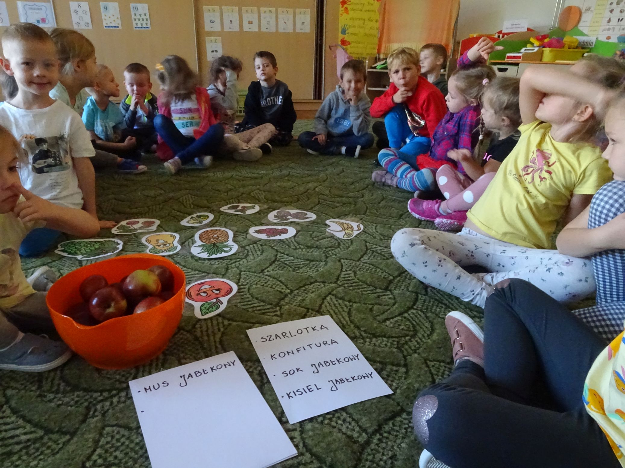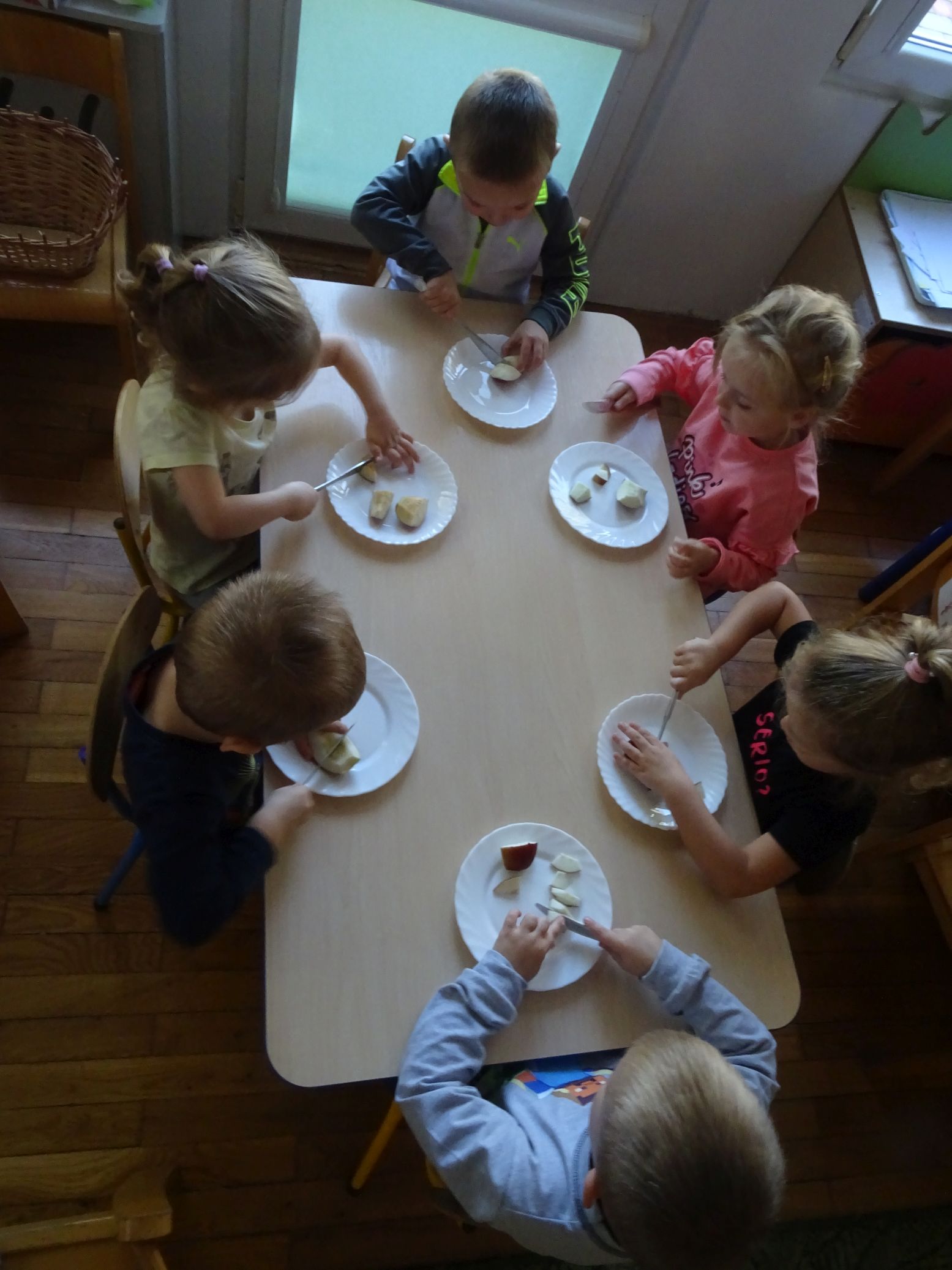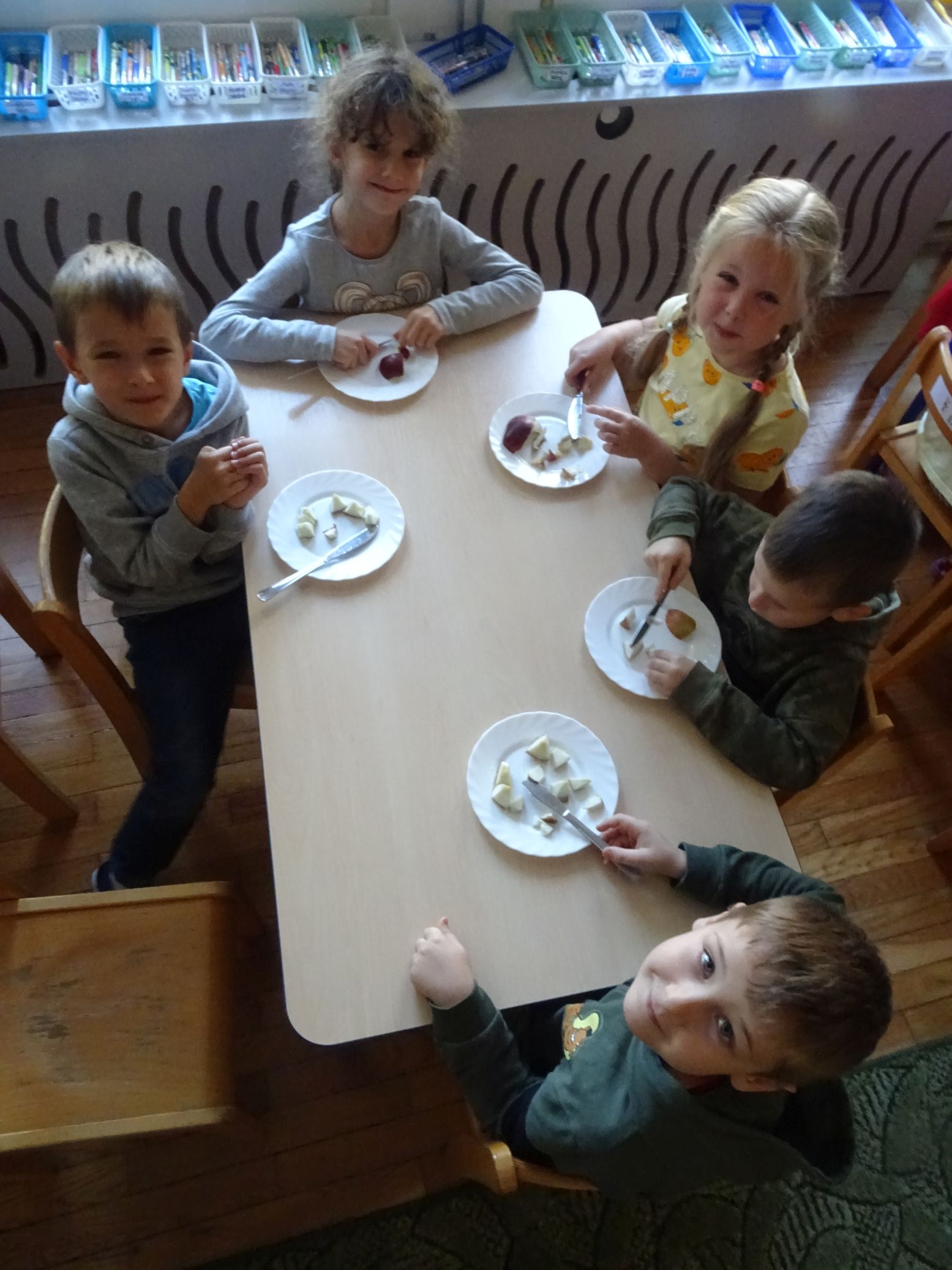 Jabłka to niewątpliwie jedne z popularniejszych owoców, także wśród naszych przedszkolaków. 28.09 obchodziliśmy Światowy Dzień Jabłka. W te obchody włączyły się także przedszkolaki z naszego przedszkola. Poznawały właściwości jabłek, degustowały je, a także wykonywały prace plastyczne o tematyce jabłka. Dzieci z pewnością będą pamiętać, dlaczego warto jeść jabłka i jakie korzyści to za sobą niesie.