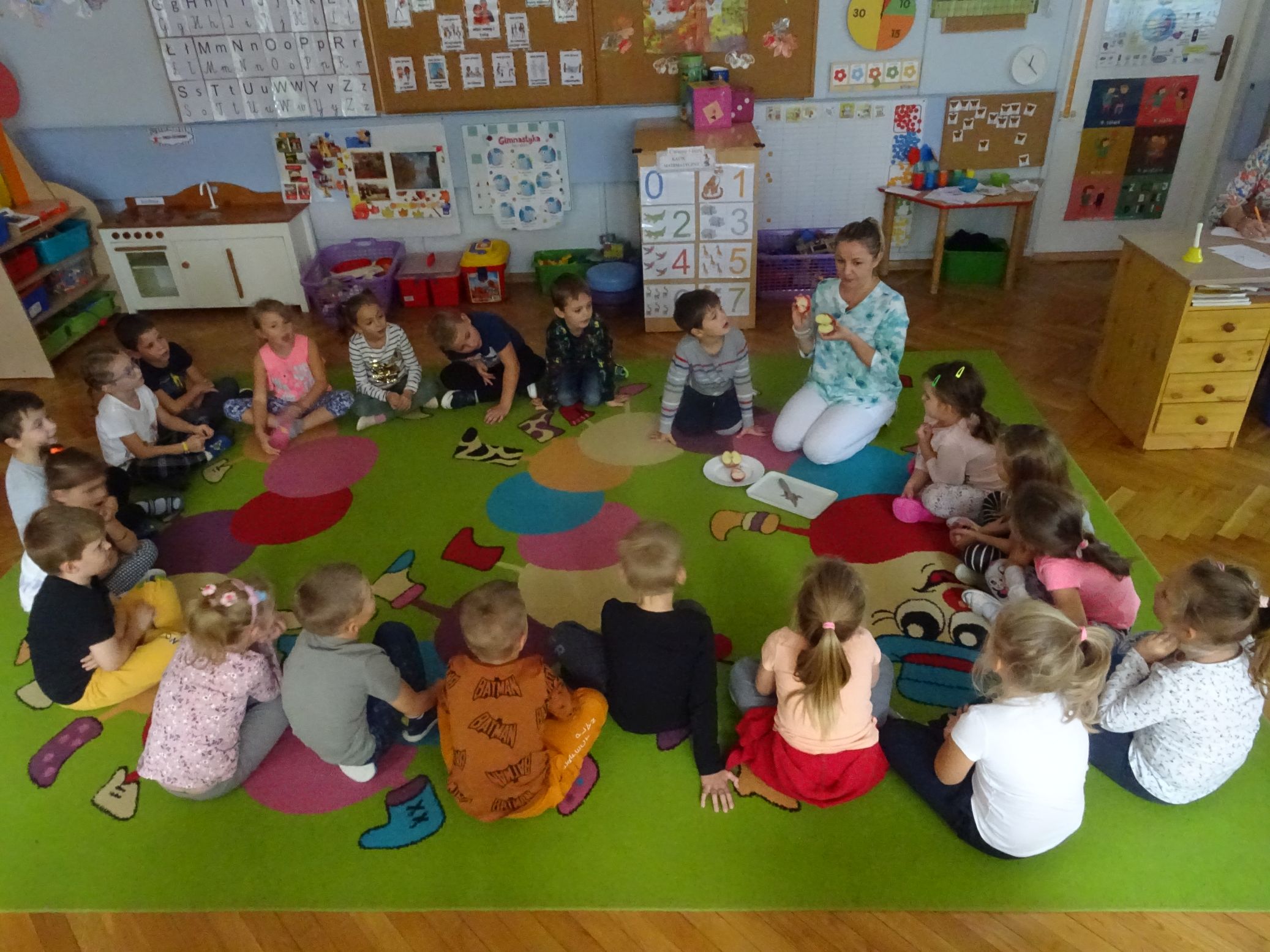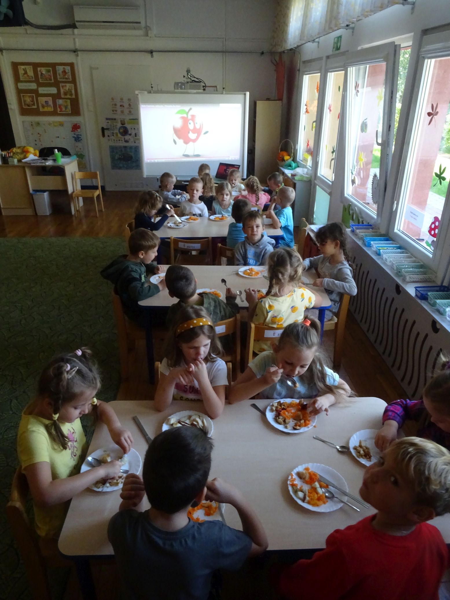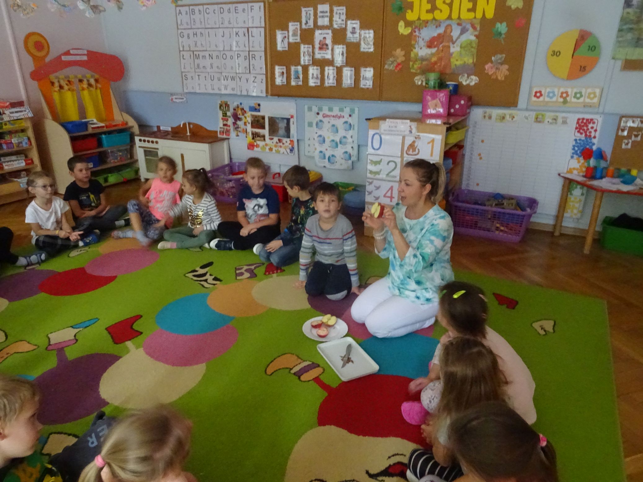 Jabłka to niewątpliwie jedne z popularniejszych owoców, także wśród naszych przedszkolaków. 28.09 obchodziliśmy Światowy Dzień Jabłka. W te obchody włączyły się także przedszkolaki z naszego przedszkola. Poznawały właściwości jabłek, degustowały je, a także wykonywały prace plastyczne o tematyce jabłka. Dzieci z pewnością będą pamiętać, dlaczego warto jeść jabłka i jakie korzyści to za sobą niesie.
