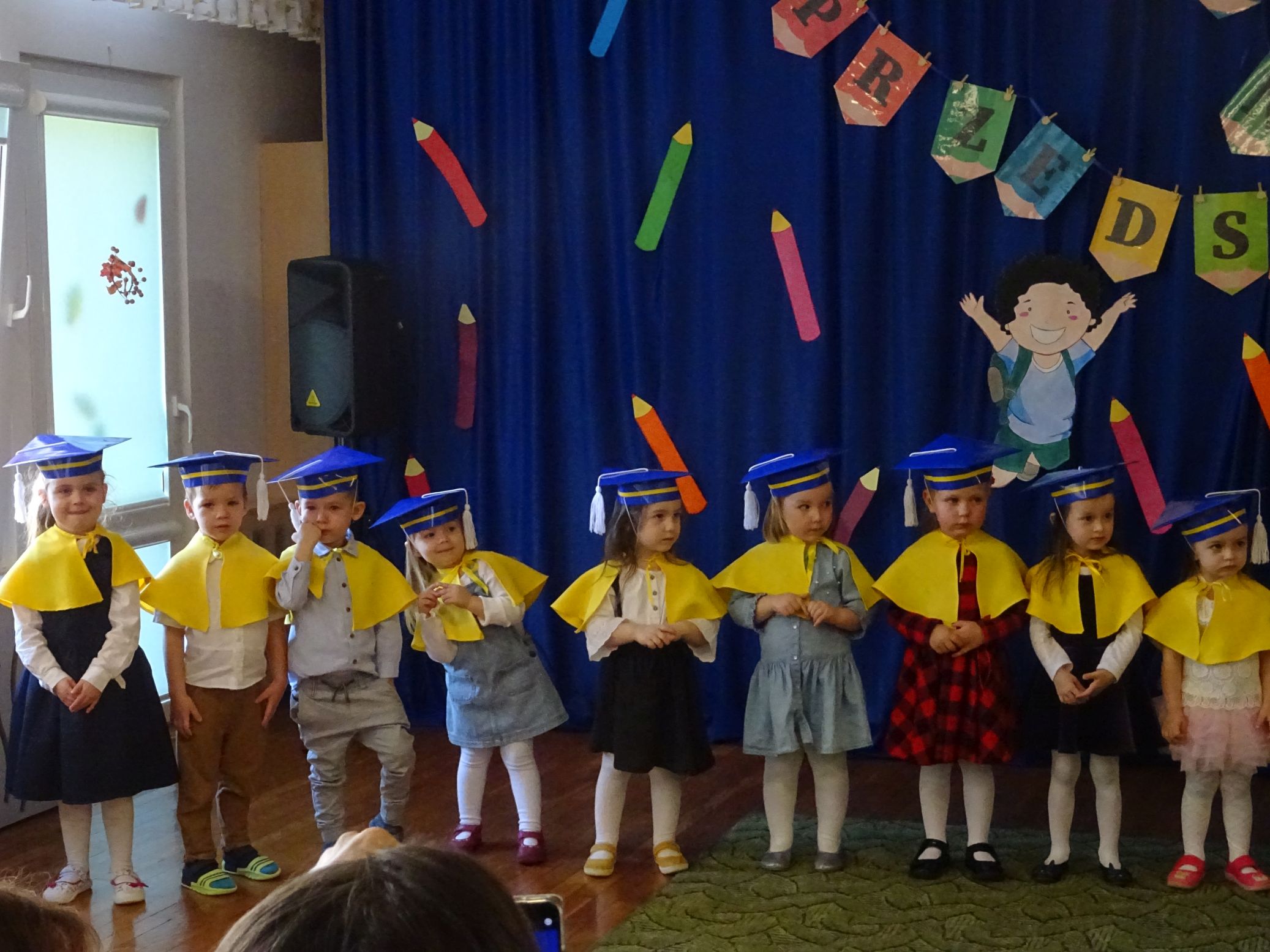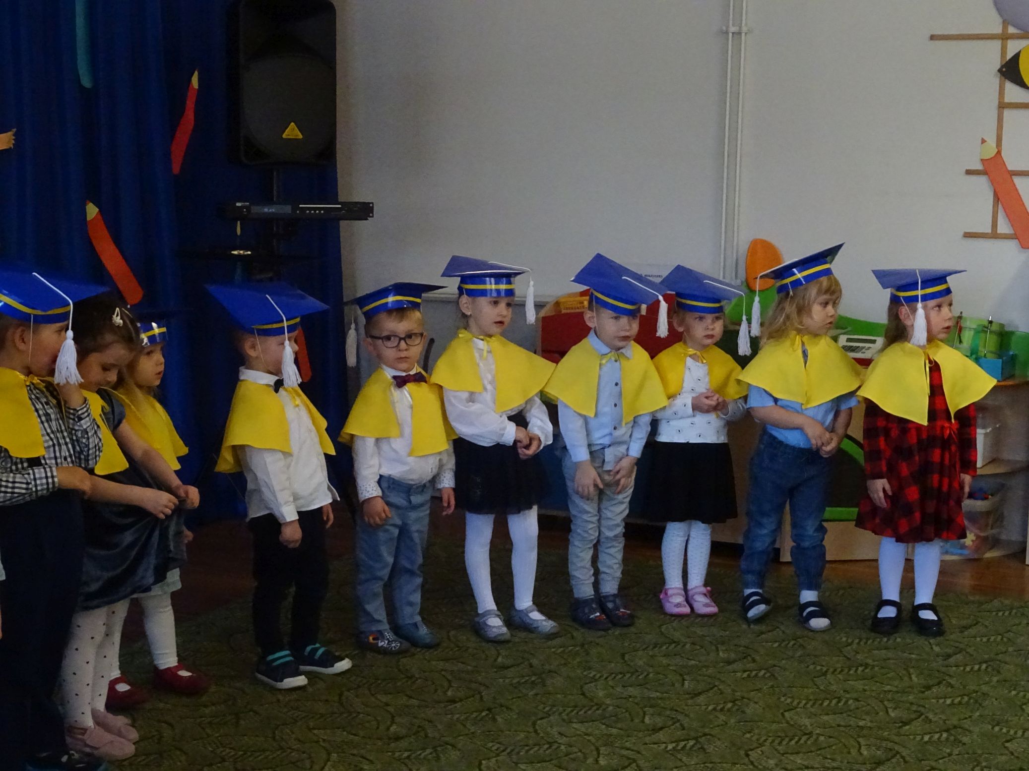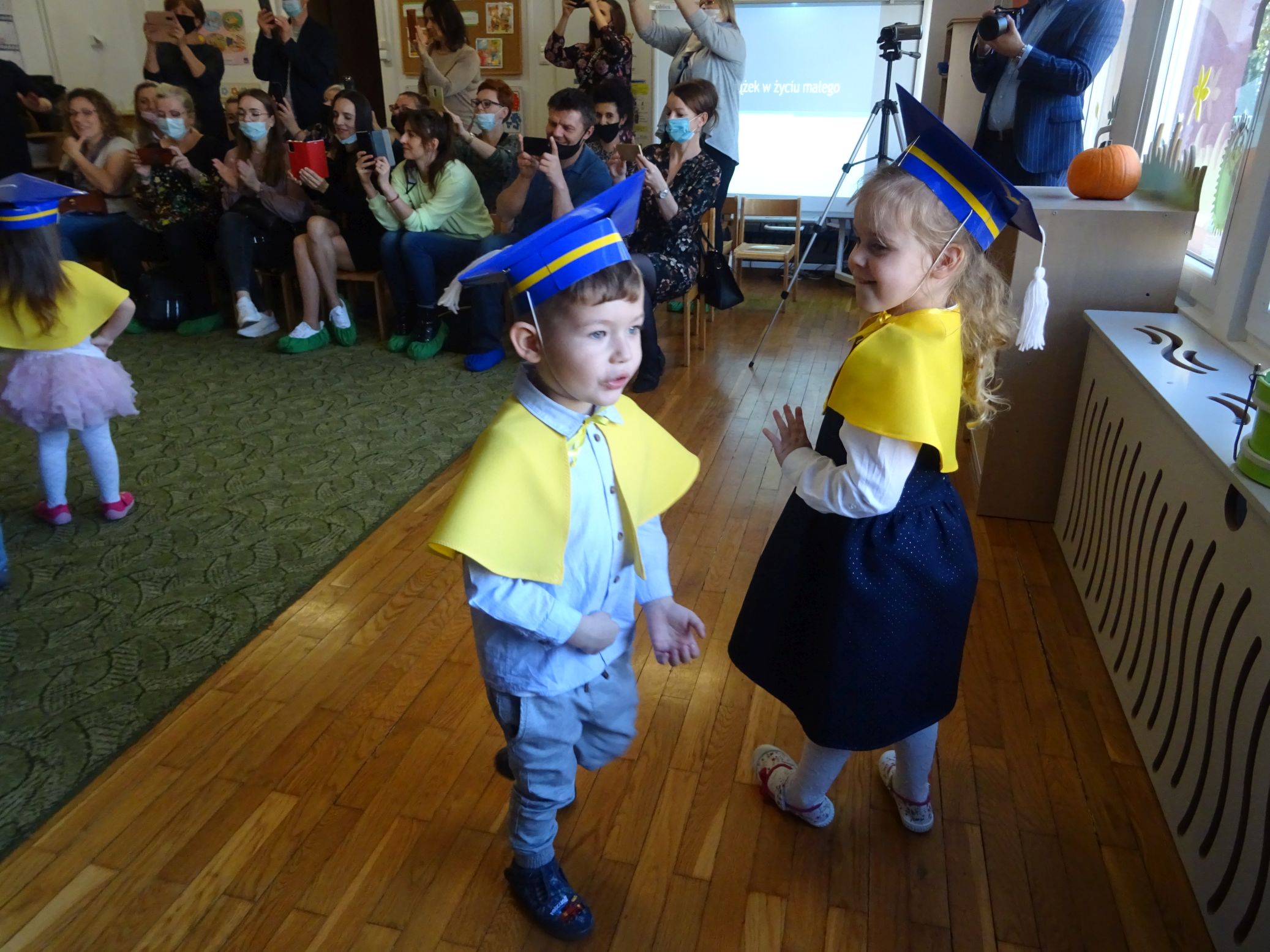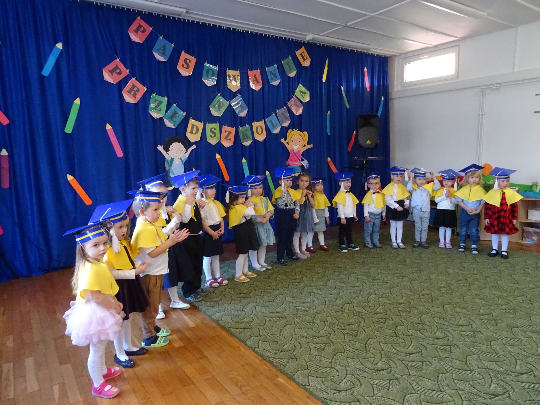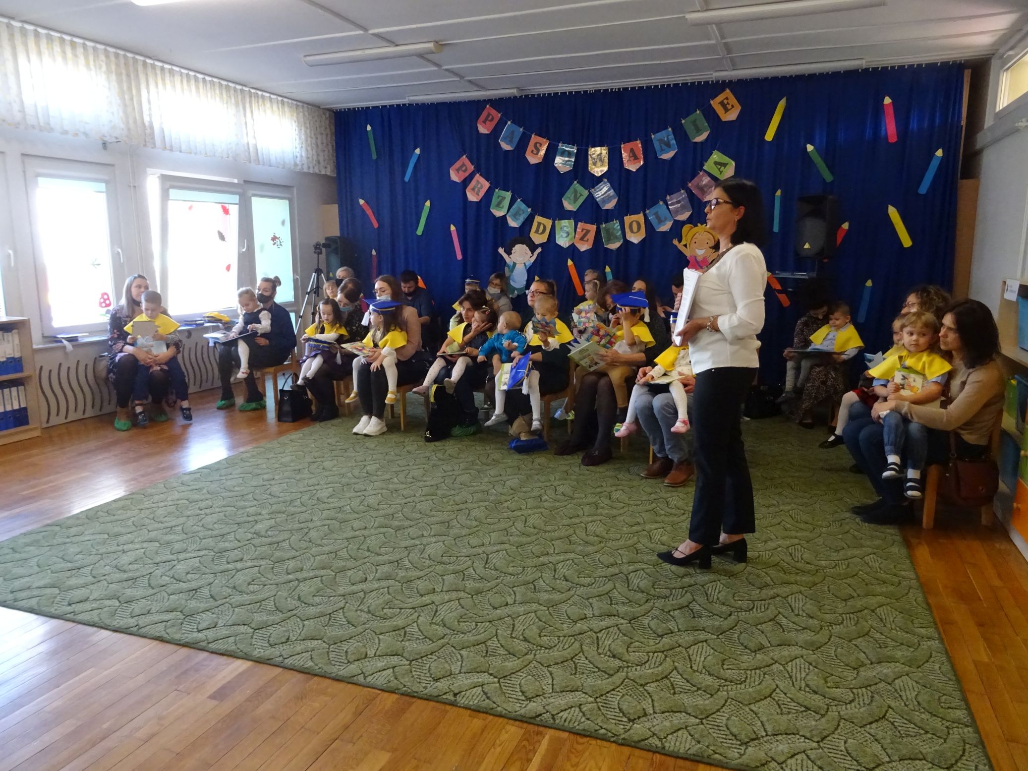 29.10.2021 r. odbyła się uroczystość Pasowania na Przedszkolaka w grupie „Krasnale“. Dzieci zaśpiewały piosenki pt. ,,Przedszkolaczek”, ,,Krasnoludki”, ,,Orkiestra” z użyciem instrumentów, ,,Kodeks Przedszkolaka", Jestem małym przedszkolakiem", ,,Wesoła zabawa", recytowały wiersze pt. ,,Pasowanie”, ,,Mam trzy latka", zatańczyły taniec ,,Jesienna poleczka”, ,,Grozik", oraz ,,Nie chcę cię". Wszystkie dzieci ślubowały z rączką podniesioną do góry, wypowiadając słowa przysięgi. Następnie zostały uroczyście „pasowane“ na przedszkolaka. Dzieci wyrecytowały także fragmenty wiersza J. Brzechwy ,,Zoo” – Dzik, Lis, Niedźwiedź. Na koniec zostały dzieciomwręczone pamiątkowe dyplomy oraz książeczki – nagrody za udział w konkursie plastyczno – recytatorskim pt. ,,Ilustracje do bajek Jana Brzechwy”. Konkurs został zorganizowany w ramach Narodowego Programu Rozwoju Czytelnictwa 2.0. na lata 2021-2025. Nagrody książkowe zostały zakupione z pozyskanych przez przedszkole, w ramach tego programu, środków.