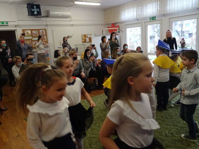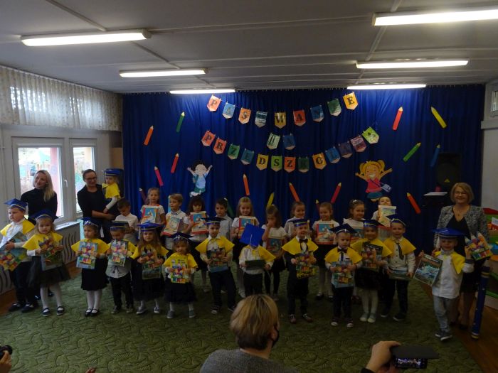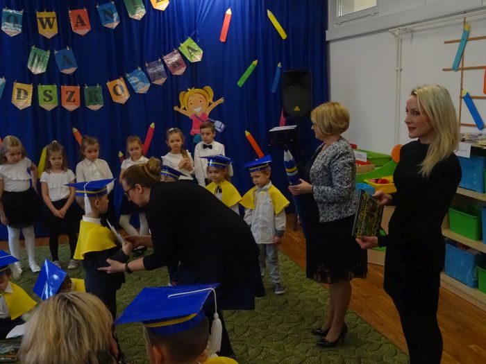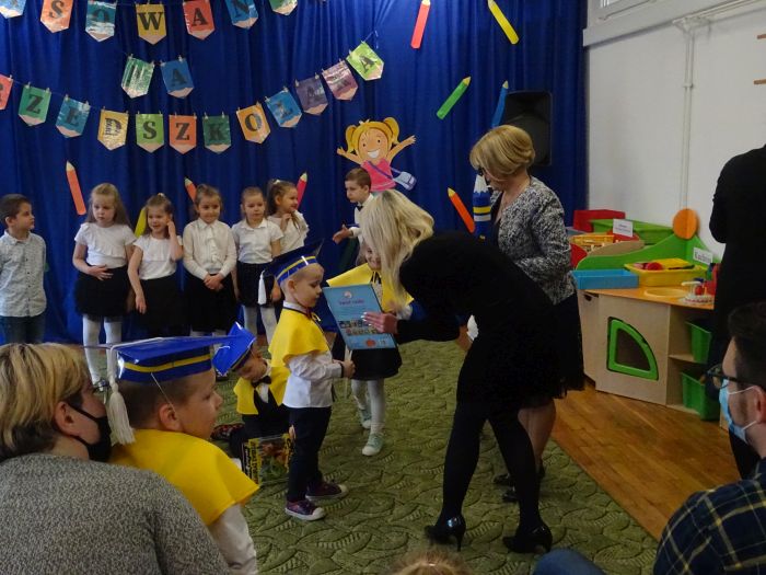 Na tej wyjątkowej uroczystości nie brakowało łez wzruszenia zarówno wśród przejętych przedszkolaków jak i ich rodziców. Na zakończenie uroczystego pasowania "Zajączki" otrzymały pamiątkowe dyplomy oraz książeczki.