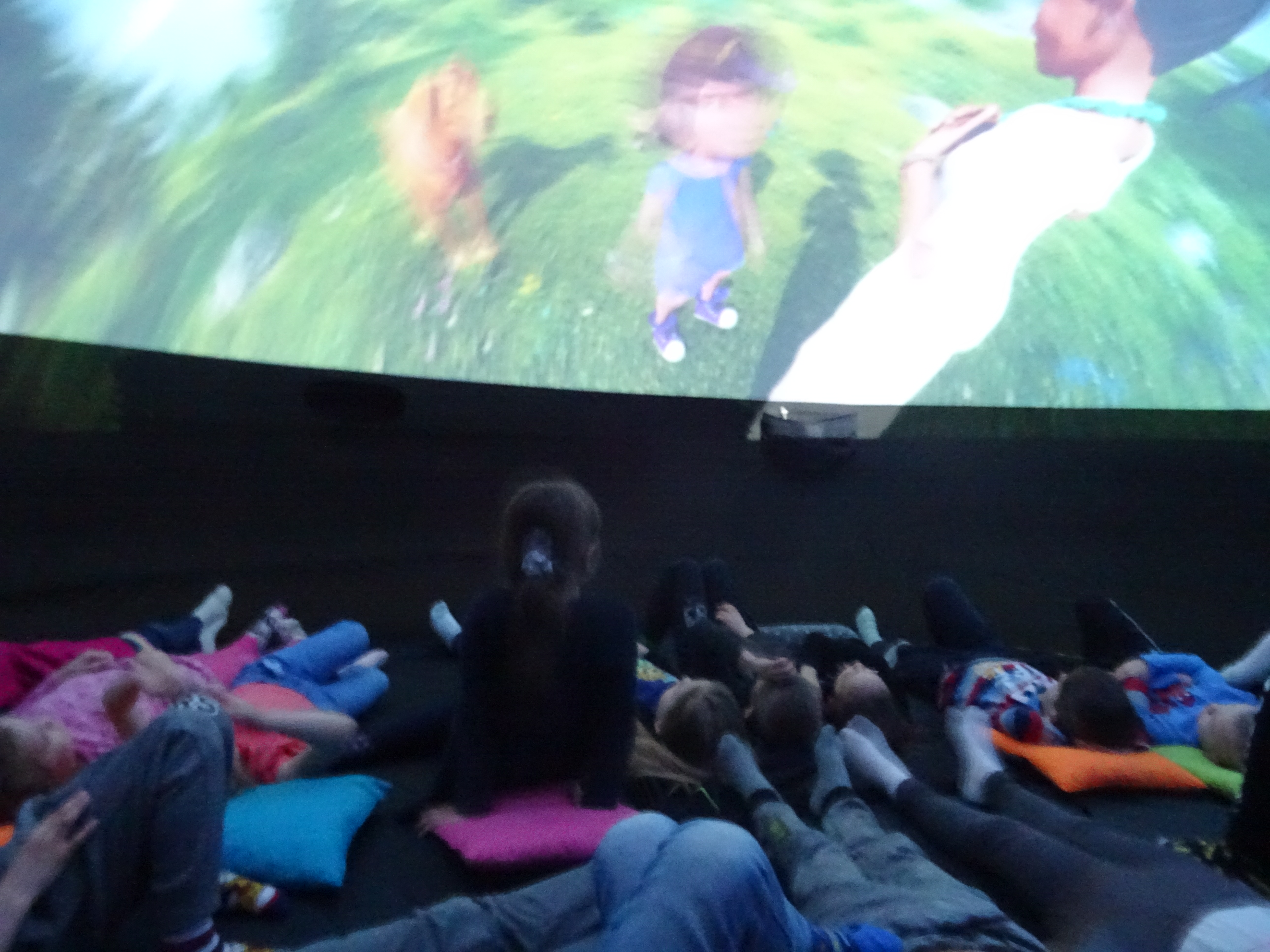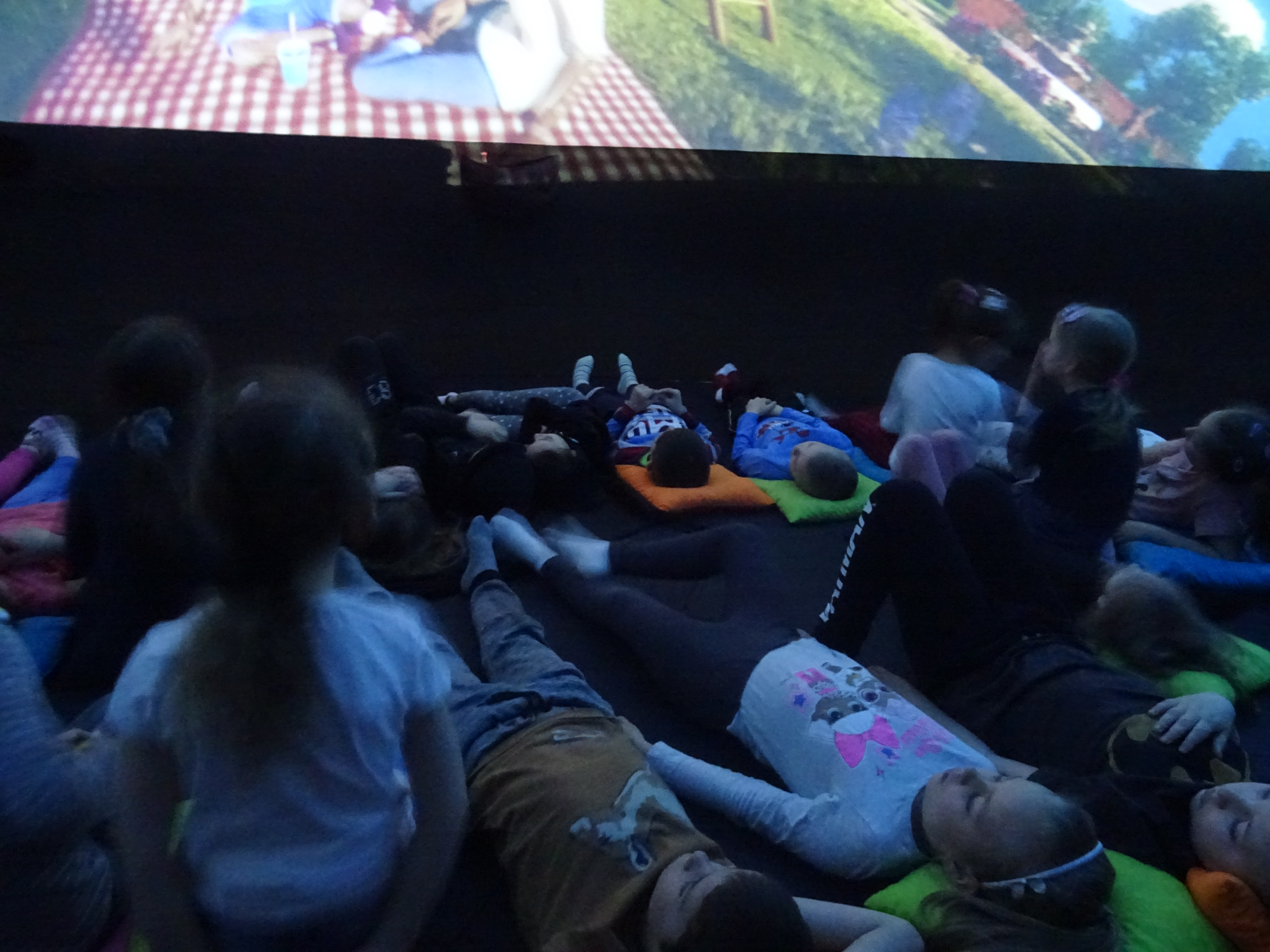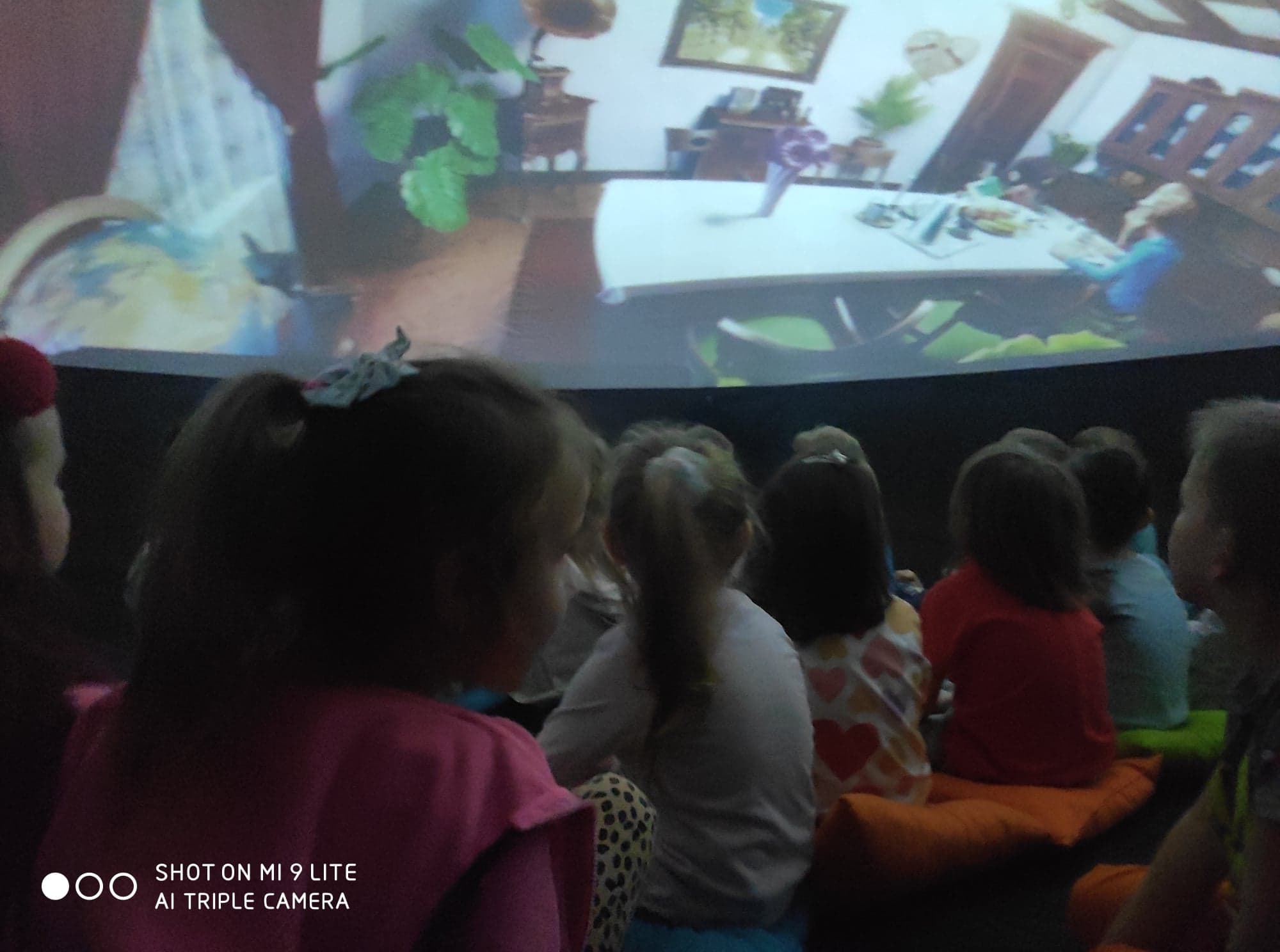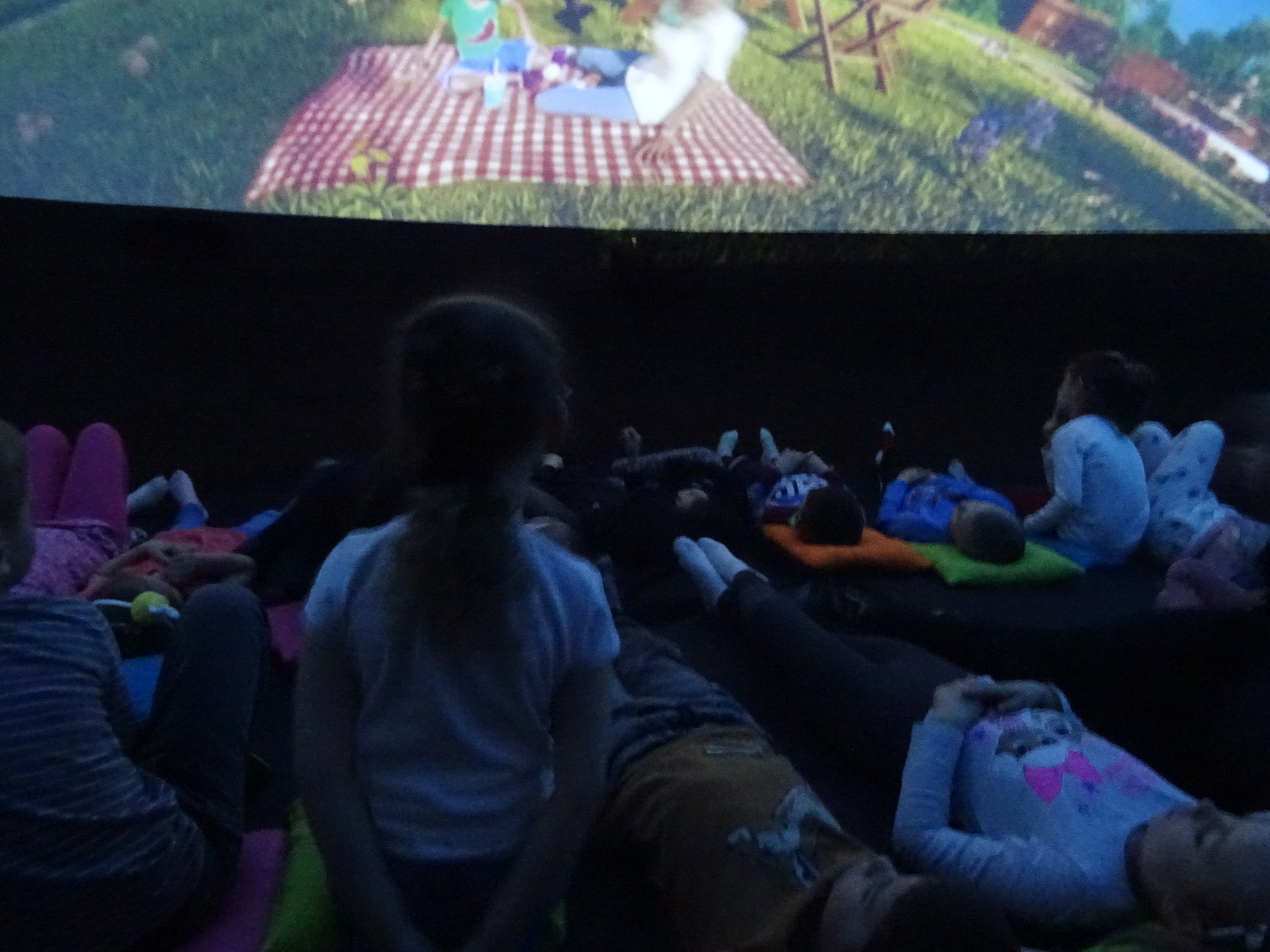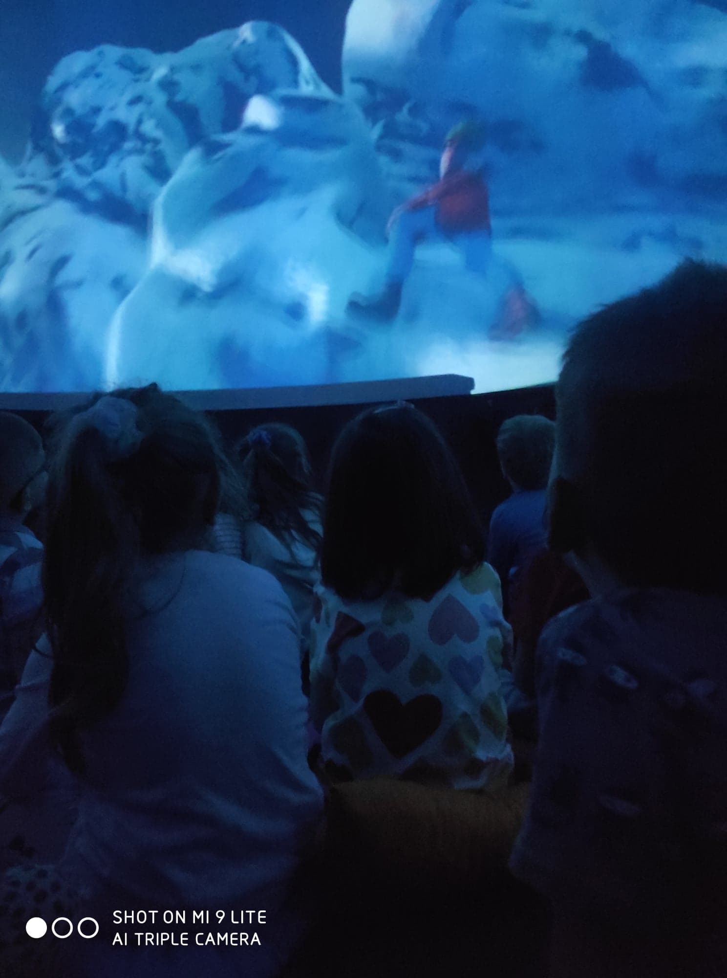 21.04.2022 r. przedszkolaki wzięły udział w niezwykłej lekcji astronomii. Był to seans w planetarium pt: „Zaczarowany globus“. Film opowiada historię małej Mii, która podczas wakacji u dziadka odkrywa na strychu tajemniczą machinę astronomiczną. Edek, Ekscentryczny wujek dziewczynki, podstępnie zmusza ją do wykorzystania sekretnych mocy urządzenia i zmiany pór roku na Ziemii. Bystra dziewczynka szybko orientuje się w potencjalnych konsekwencjach, jednak Edek nie chce odpuścić realizacji swojego niecnego planu. Historia opowiedziana w filmie pomaga dzieciom budować wiedzę przyrodniczą i pozwala im poznać fakty naukowe, m.in. takie jak to, że: Ziemia kręci się wokół własnej osi, a Słońce oświetla ją z jednej strony tworząc dzień i noc; rok jest podzielony na cztery pory roku, ale pogoda nie zawsze współgra z tym podziałem; zwierzęta i rośliny przystosowały się do zmian spowodowanych porami roku i nie mogą bez nich istnieć. Z pewnością tak przekazane dzieciom informacje umożliwią im budowanie wiedzy o otaczającym je świecie.