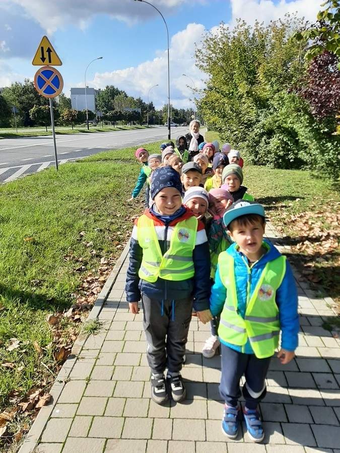 i wybranych znaków drogowych. Podczas powrotu do przedszkola wspólnie omawialiśmy znaczenie niektórych znaków.
