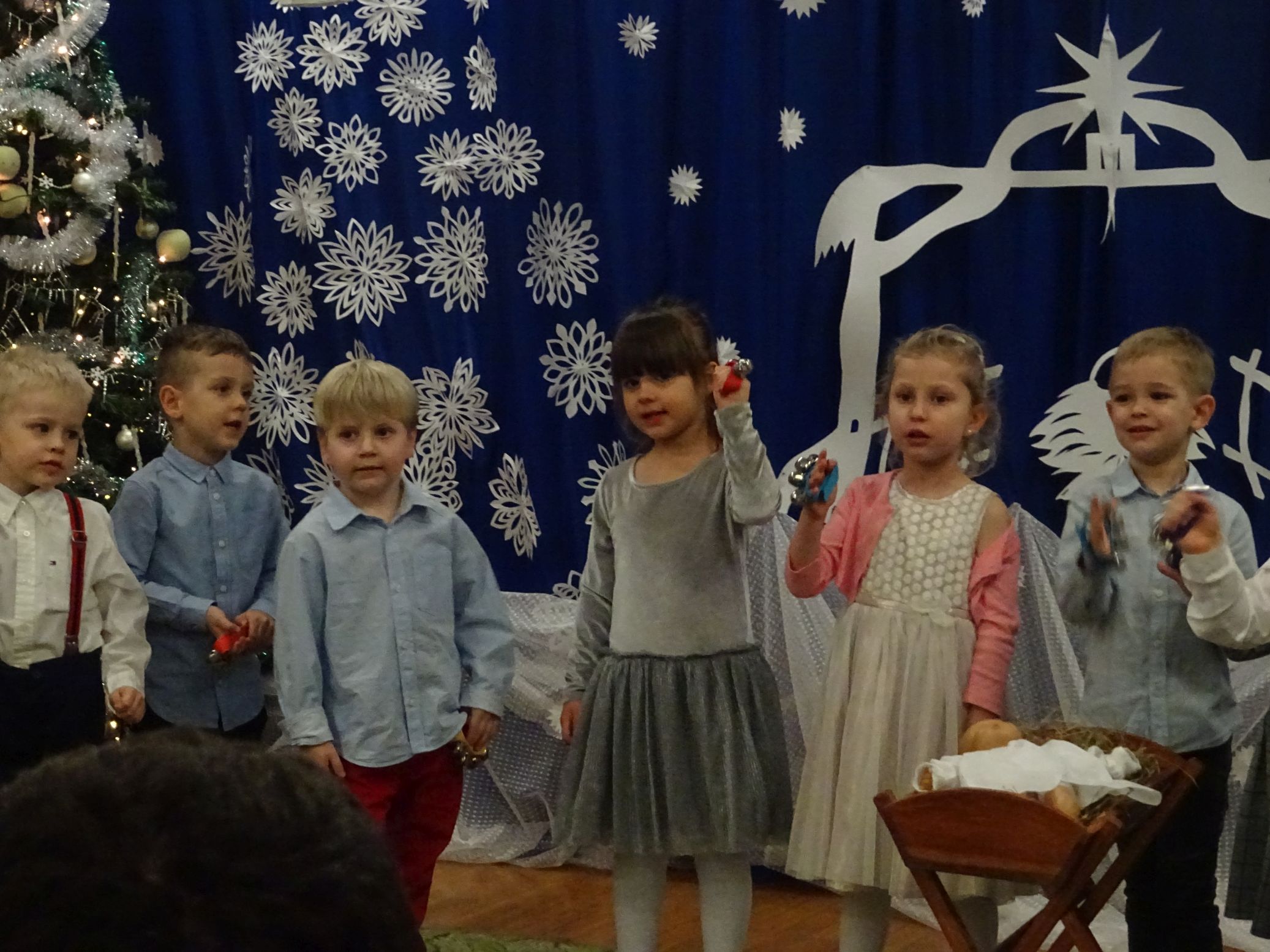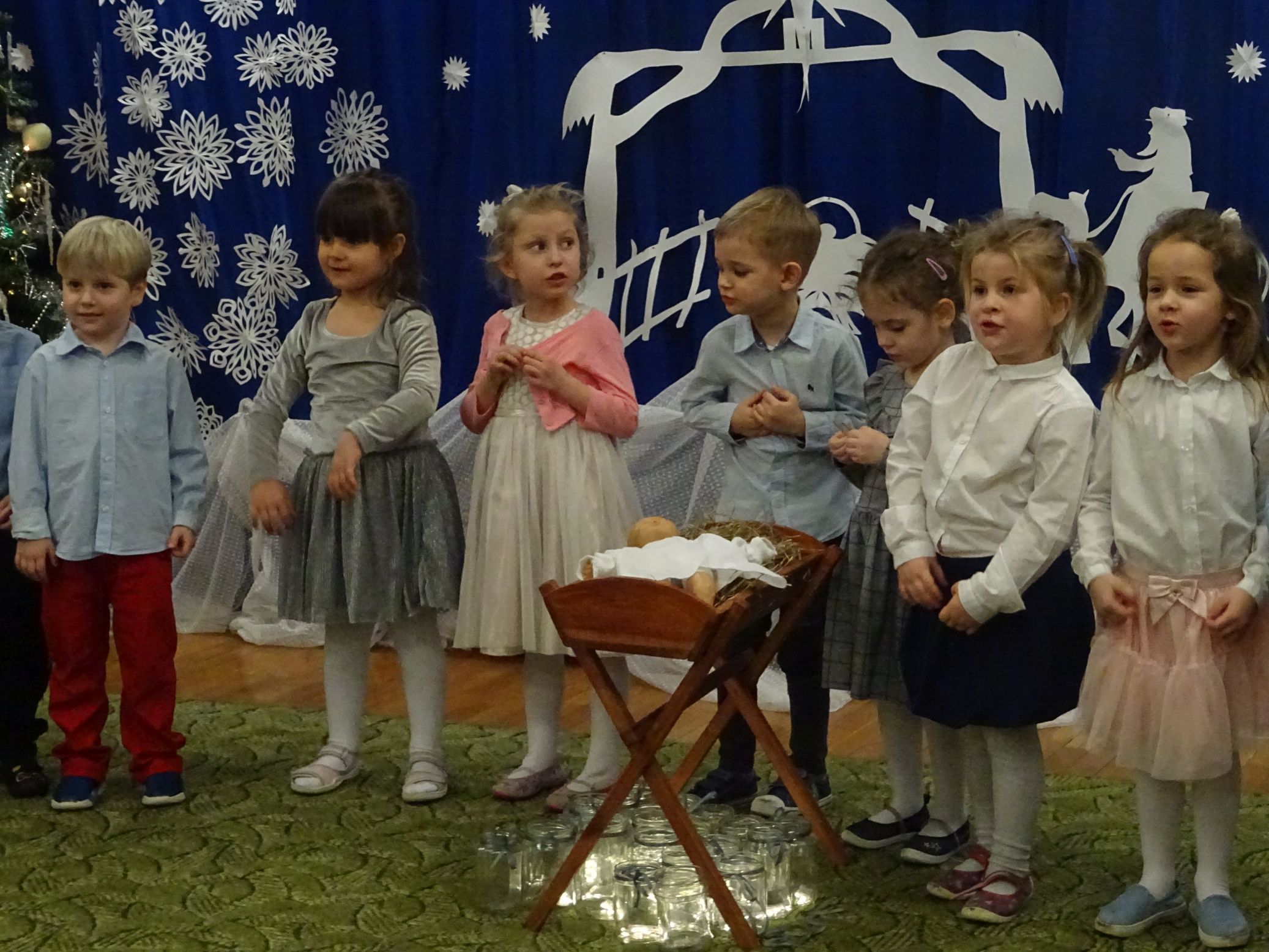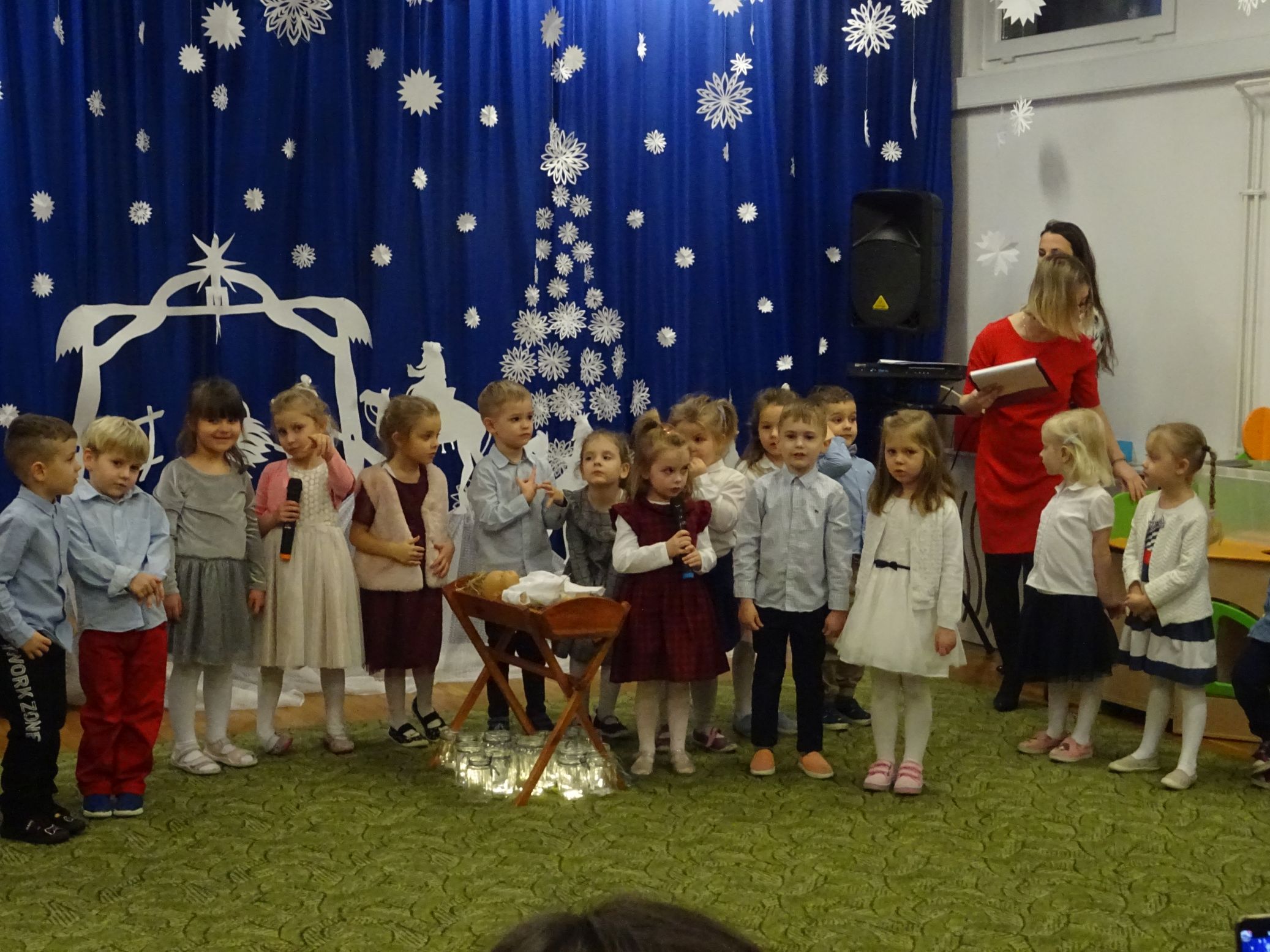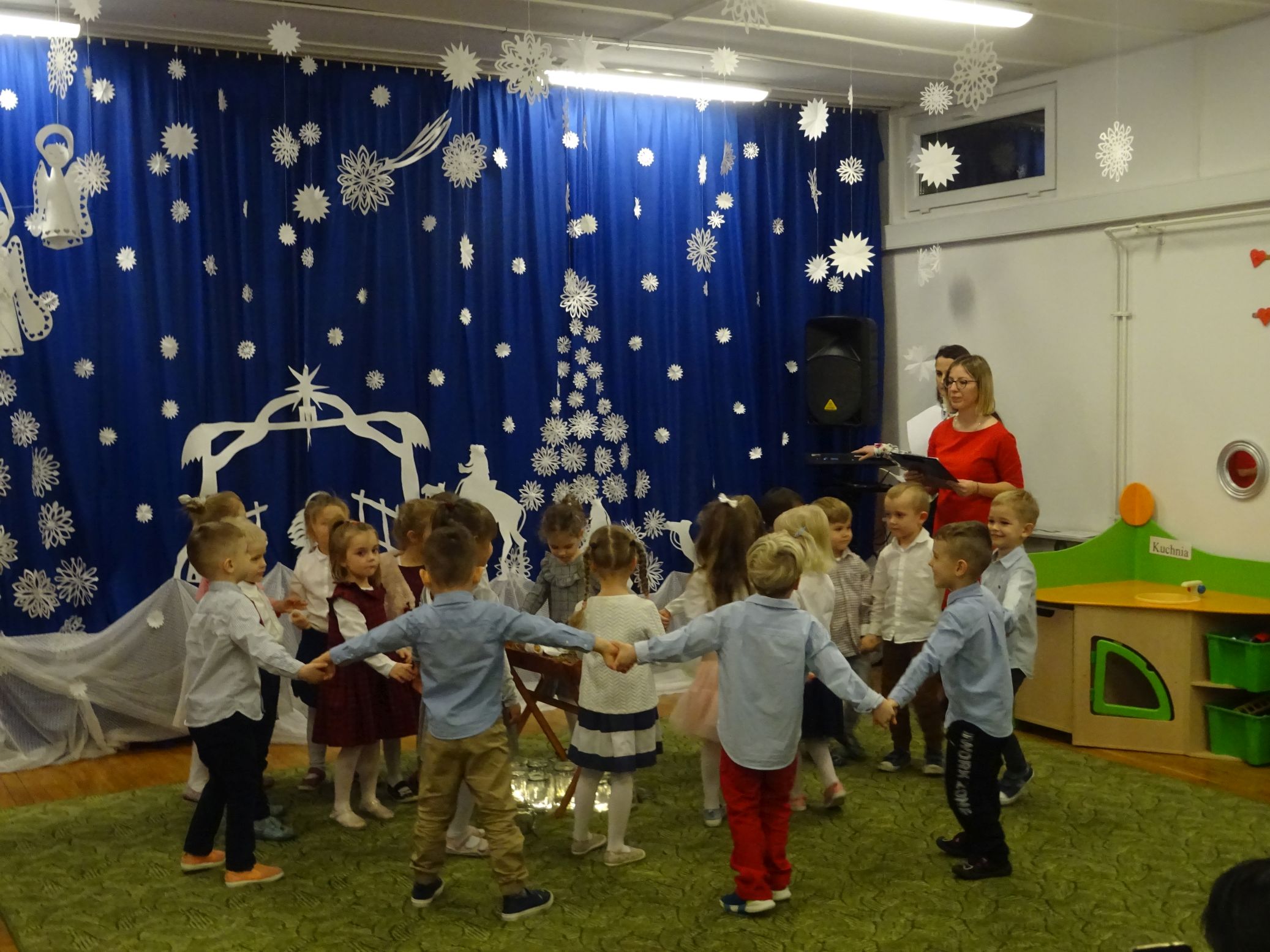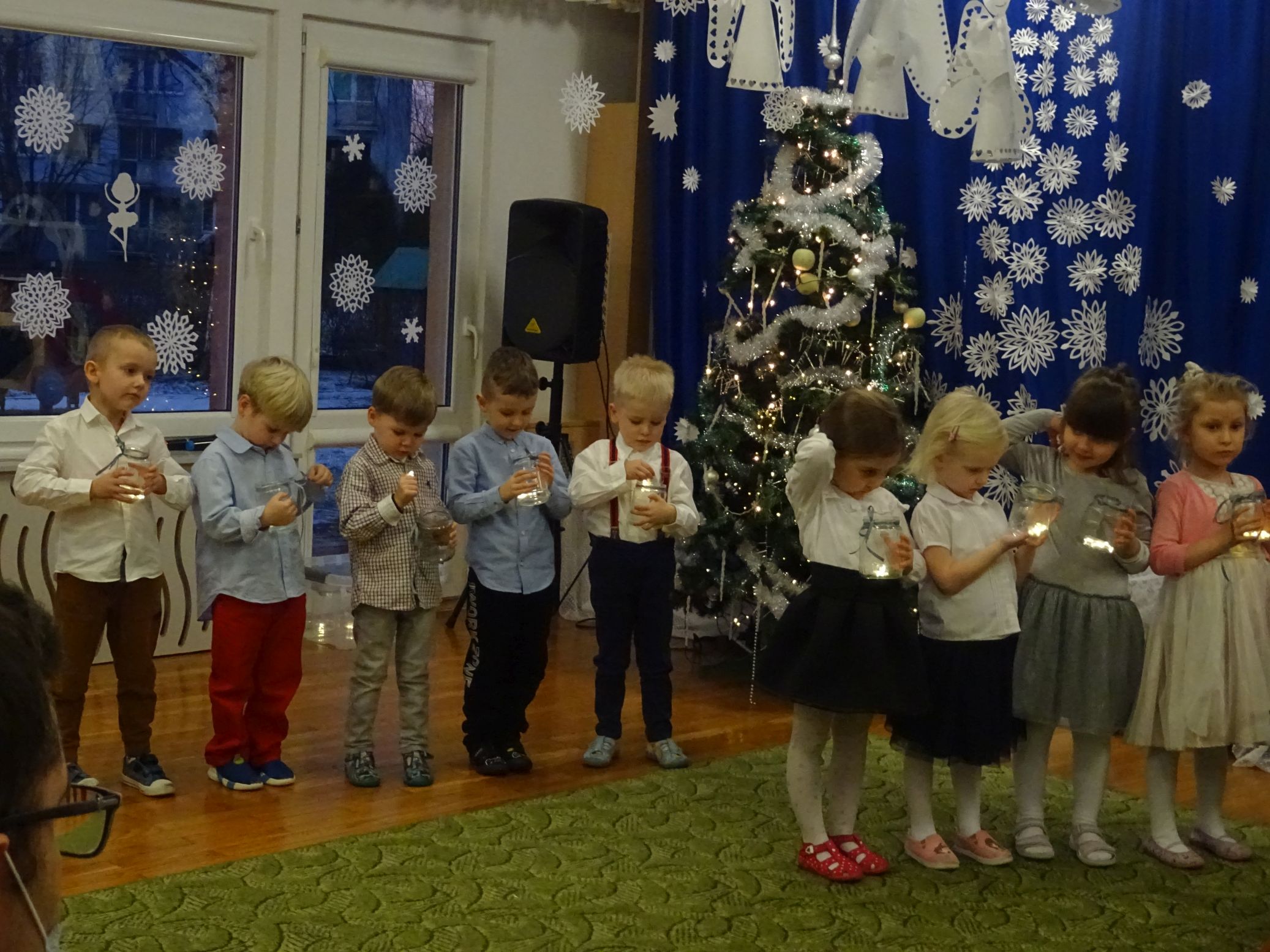 18.01.2022 r. odbyło się spotkanie świąteczne, na które przedszkolaki z grupy „Misie“ zaprosiły swoich rodziców. Przedszkolaki zaprezentowały swoje umiejętności, przedstawiły inscenizację o tradycjach i obrzędach świątecznych. Ukazały najważniejsze zwyczaje takie jak: przygotowania potraw wigilijnych, ubierania choinki, łamanie się opłatkiem, składanie sobie życzeń, pozostawienie wolnego miejsca przy stole dla gościa niespodziewanego oraz śpiewanie kolęd. „Misie“ zaśpiewały też piosenki, zatańczyły taniec z lampionami i zagrały na instrumentach. Dziękujemy wszystkim rodzicom za pomoc w przygotowaniu dzieci do występu i za obecność.
