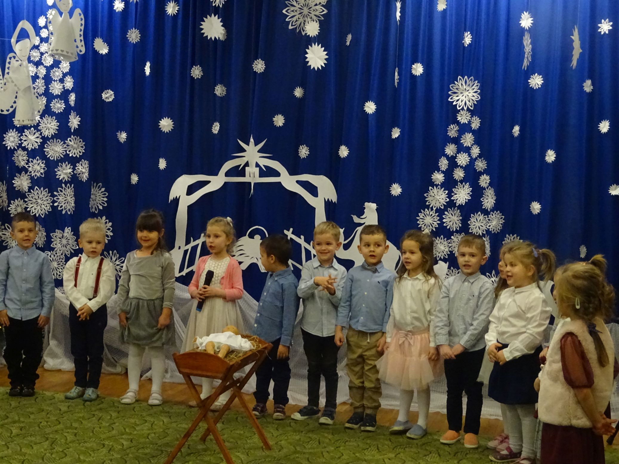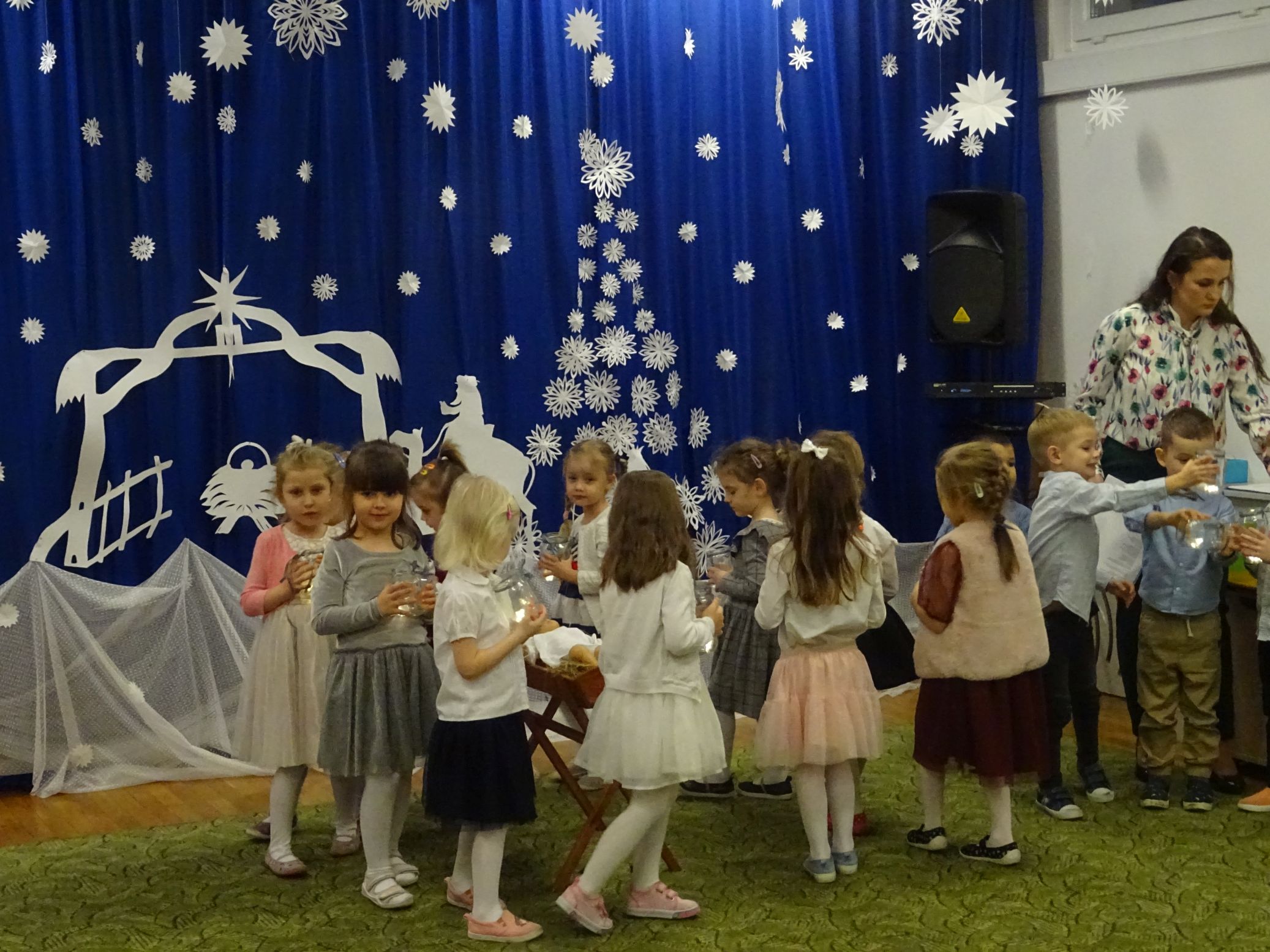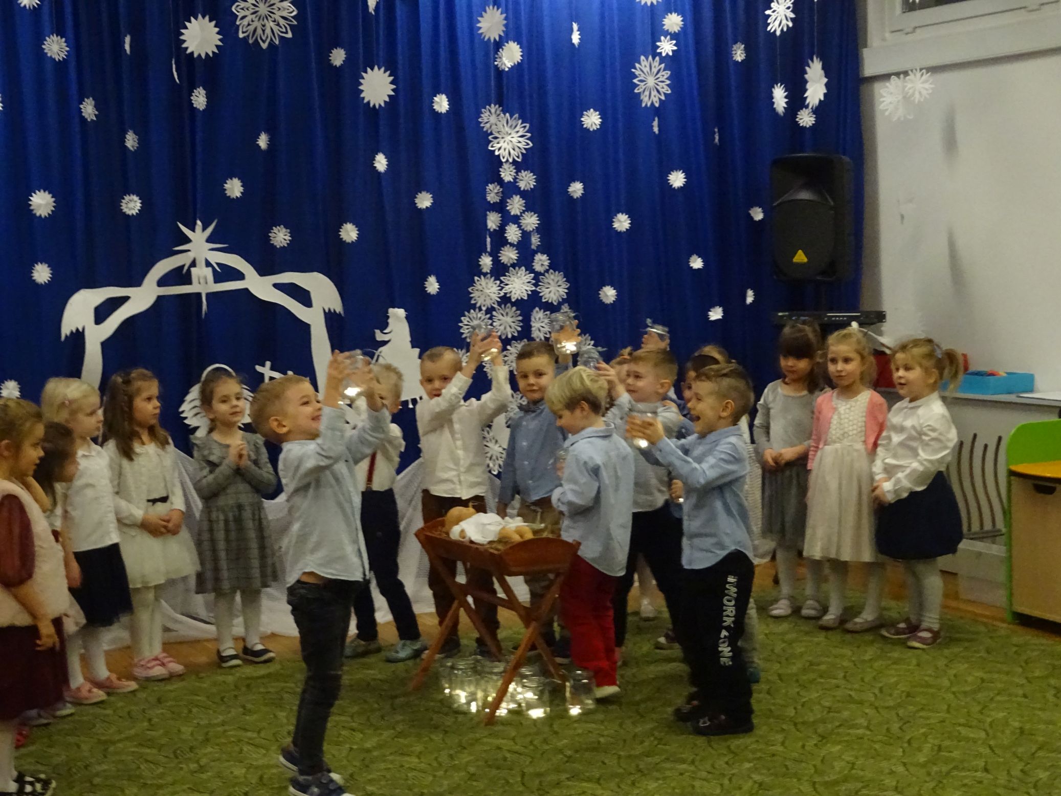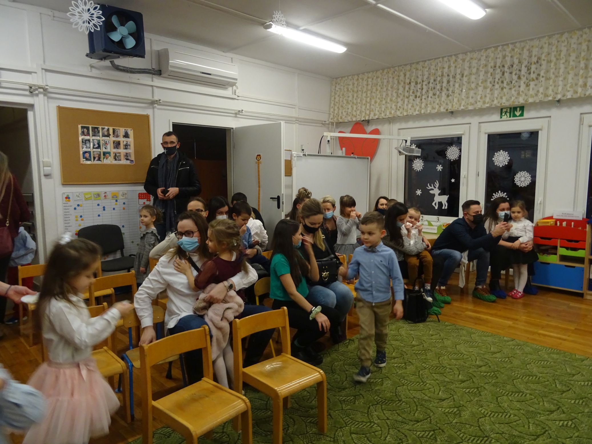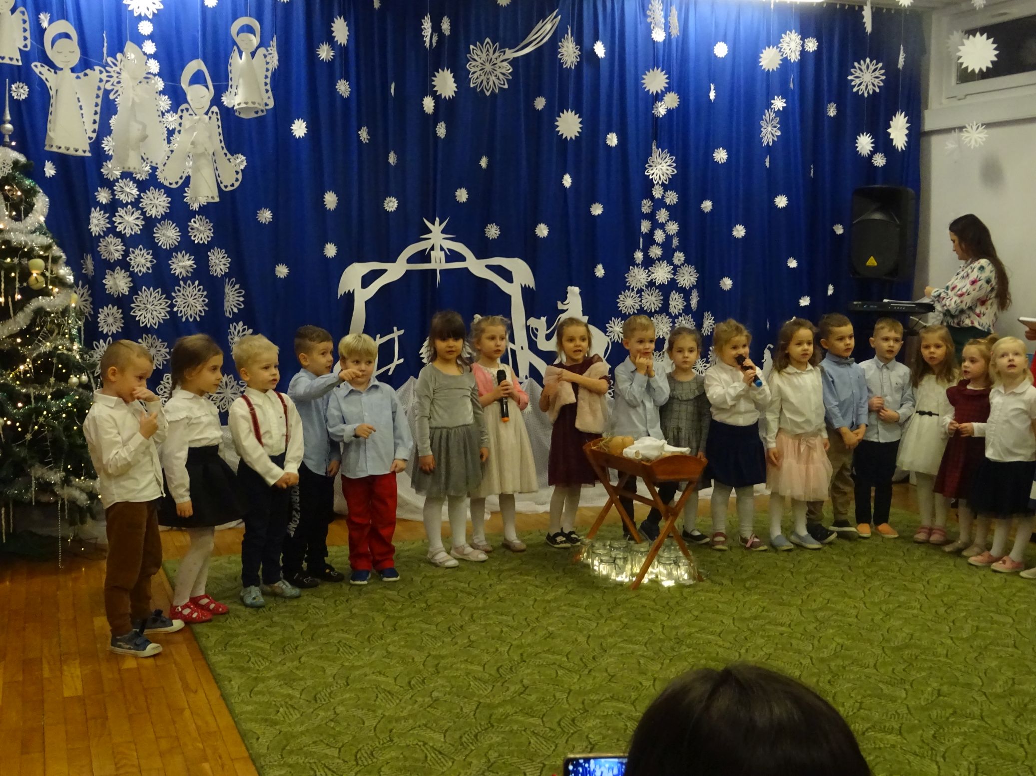 18.01.2022 r. odbyło się spotkanie świąteczne, na które przedszkolaki z grupy „Misie“ zaprosiły swoich rodziców. Przedszkolaki zaprezentowały swoje umiejętności, przedstawiły inscenizację o tradycjach i obrzędach świątecznych. Ukazały najważniejsze zwyczaje takie jak: przygotowania potraw wigilijnych, ubierania choinki, łamanie się opłatkiem, składanie sobie życzeń, pozostawienie wolnego miejsca przy stole dla gościa niespodziewanego oraz śpiewanie kolęd. „Misie“ zaśpiewały też piosenki, zatańczyły taniec z lampionami i zagrały na instrumentach. Dziękujemy wszystkim rodzicom za pomoc w przygotowaniu dzieci do występu i za obecność.