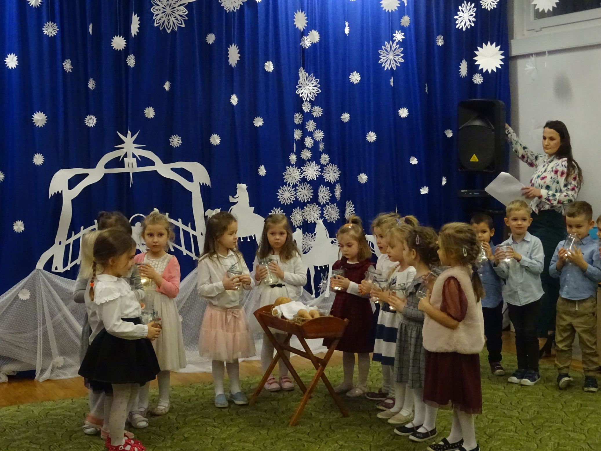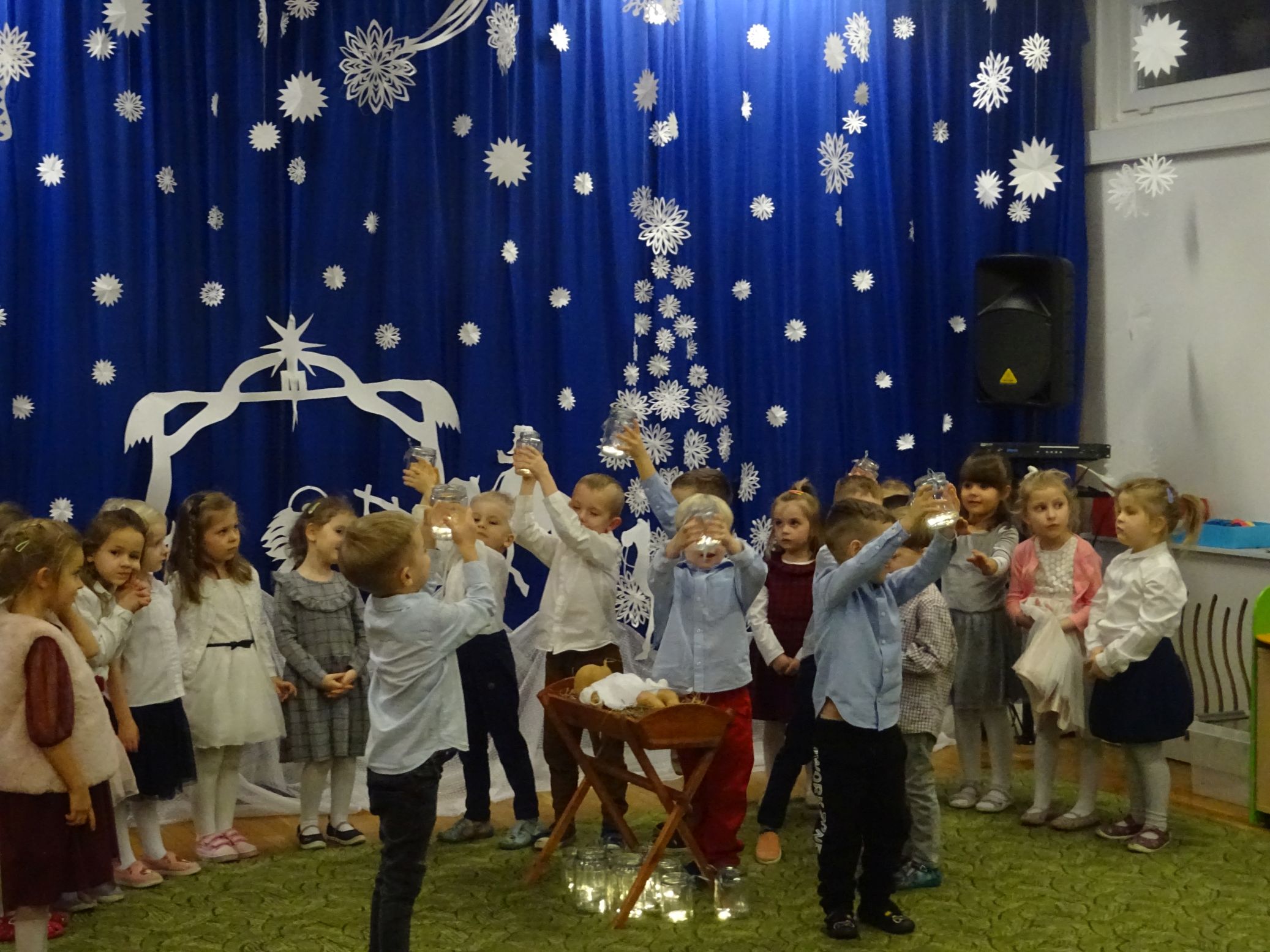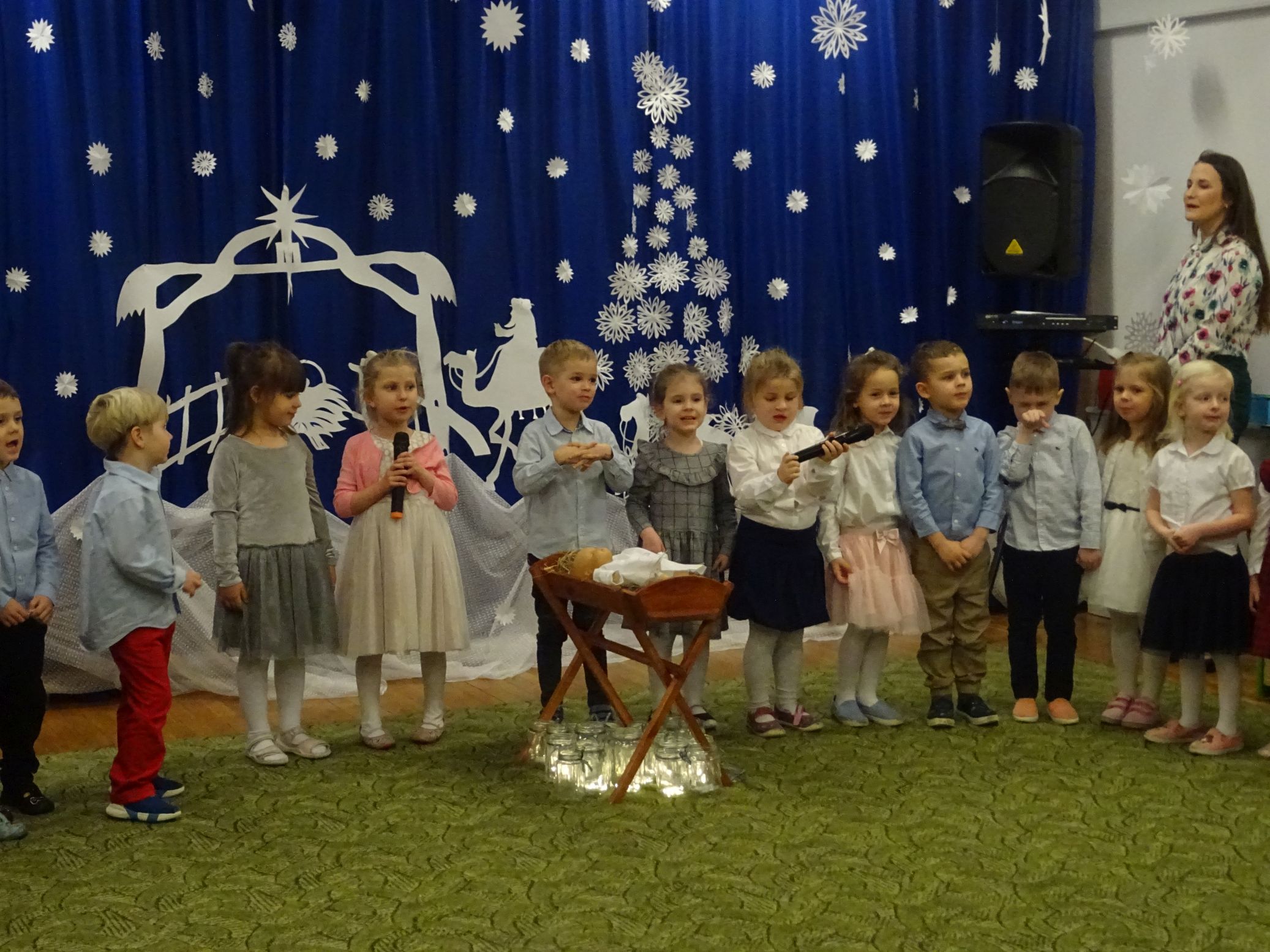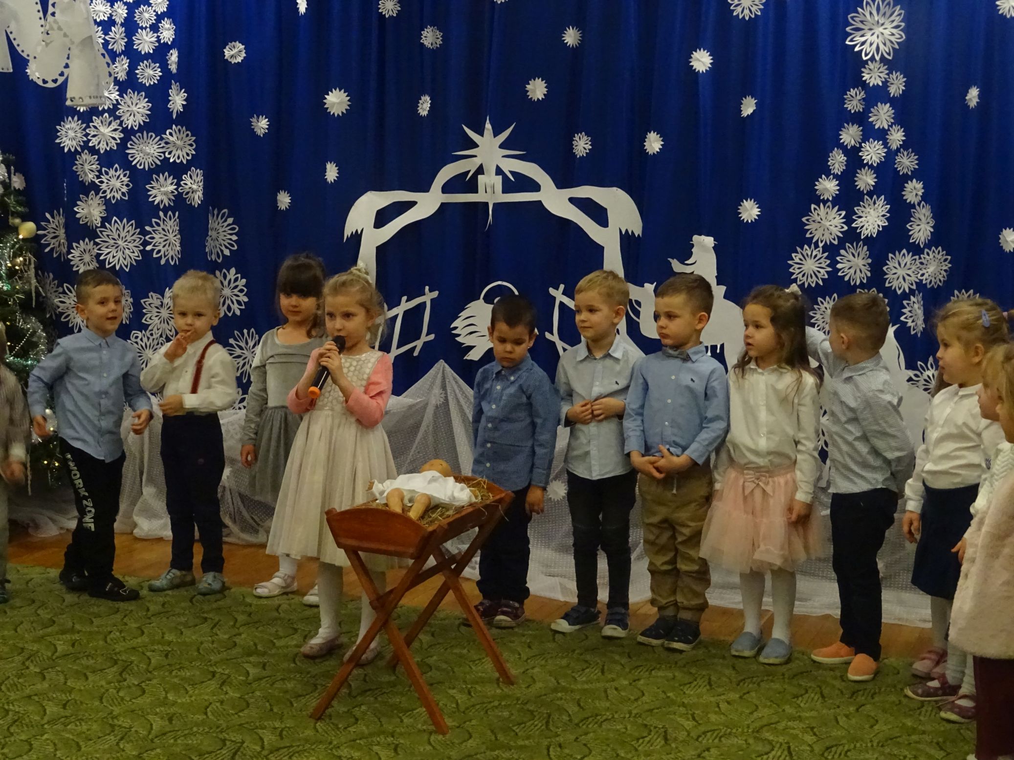 18.01.2022 r. odbyło się spotkanie świąteczne, na które przedszkolaki z grupy „Misie“ zaprosiły swoich rodziców. Przedszkolaki zaprezentowały swoje umiejętności, przedstawiły inscenizację o tradycjach i obrzędach świątecznych. Ukazały najważniejsze zwyczaje takie jak: przygotowania potraw wigilijnych, ubierania choinki, łamanie się opłatkiem, składanie sobie życzeń, pozostawienie wolnego miejsca przy stole dla gościa niespodziewanego oraz śpiewanie kolęd. „Misie“ zaśpiewały też piosenki, zatańczyły taniec z lampionami i zagrały na instrumentach. Dziękujemy wszystkim rodzicom za pomoc w przygotowaniu dzieci do występu i za obecność.