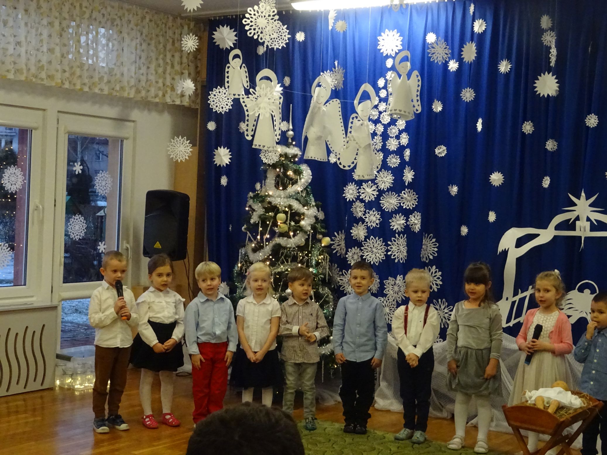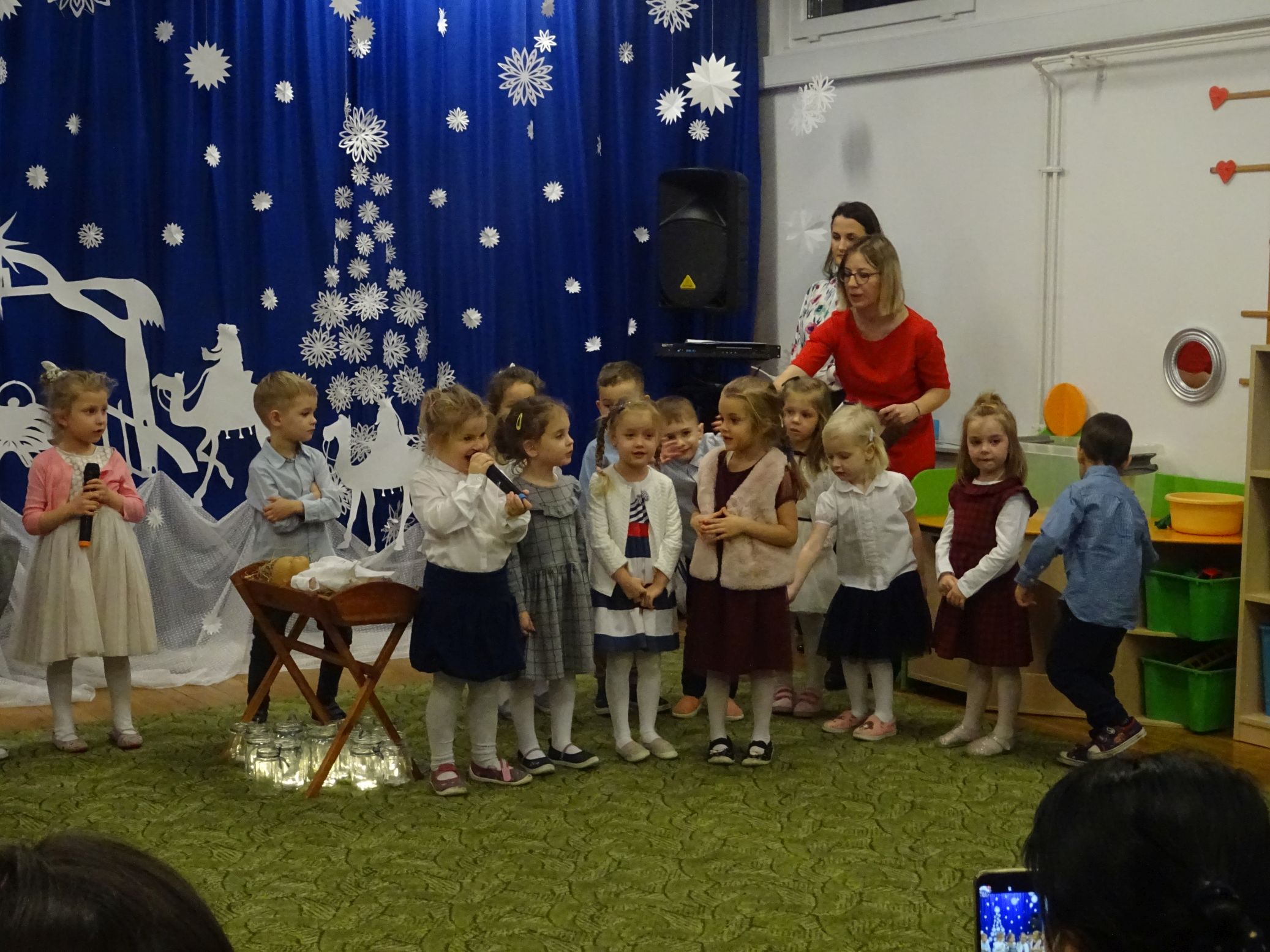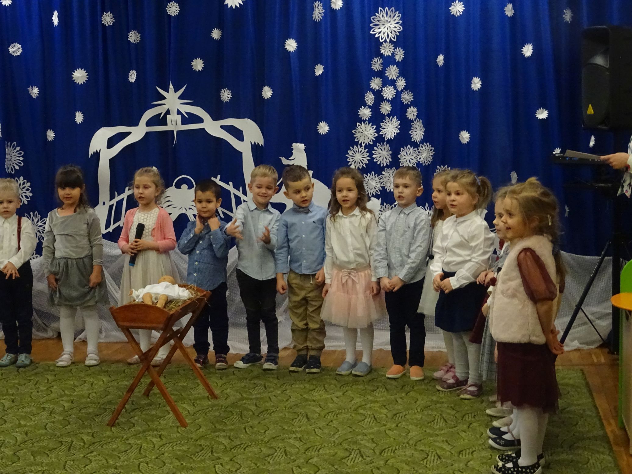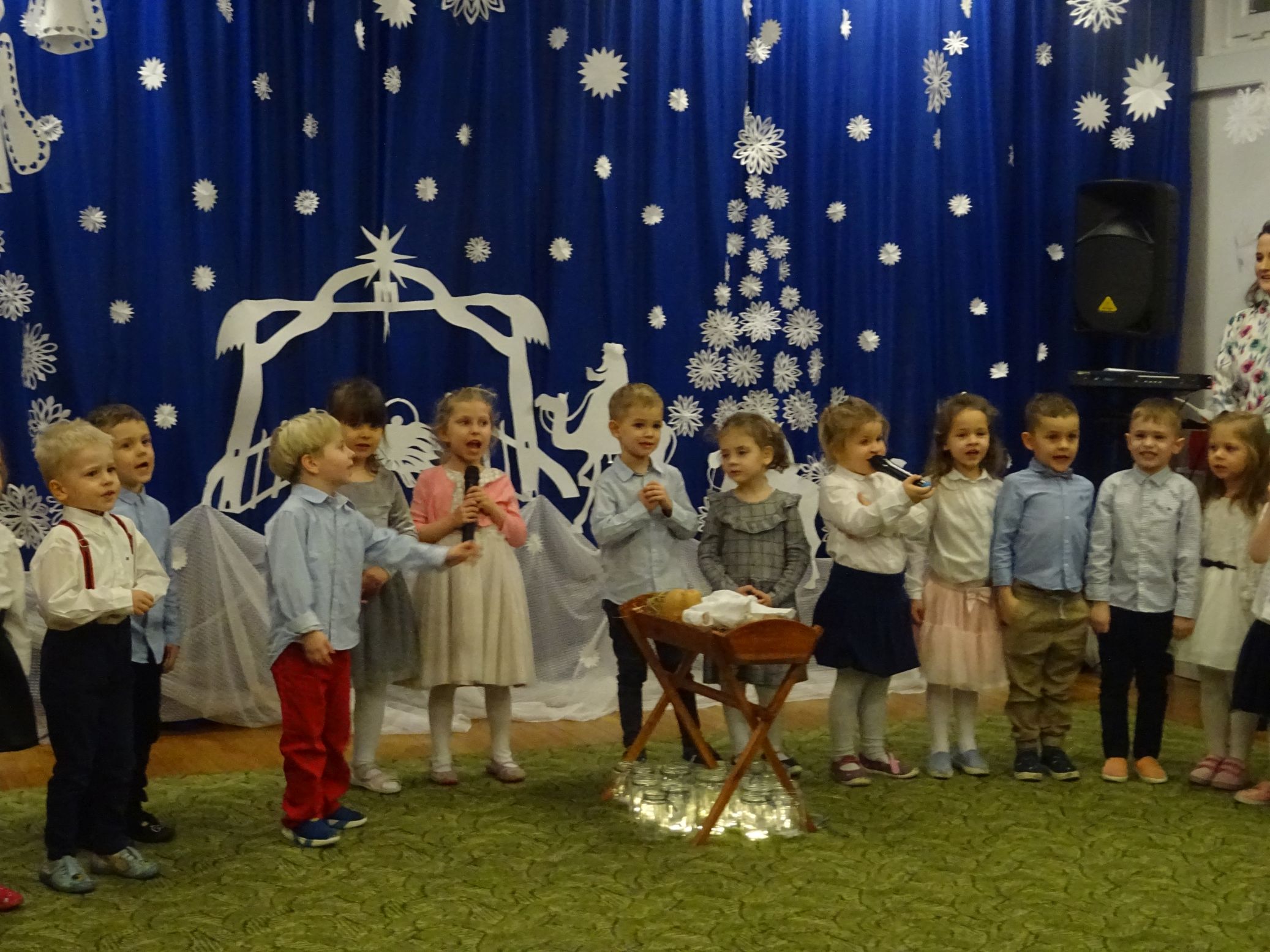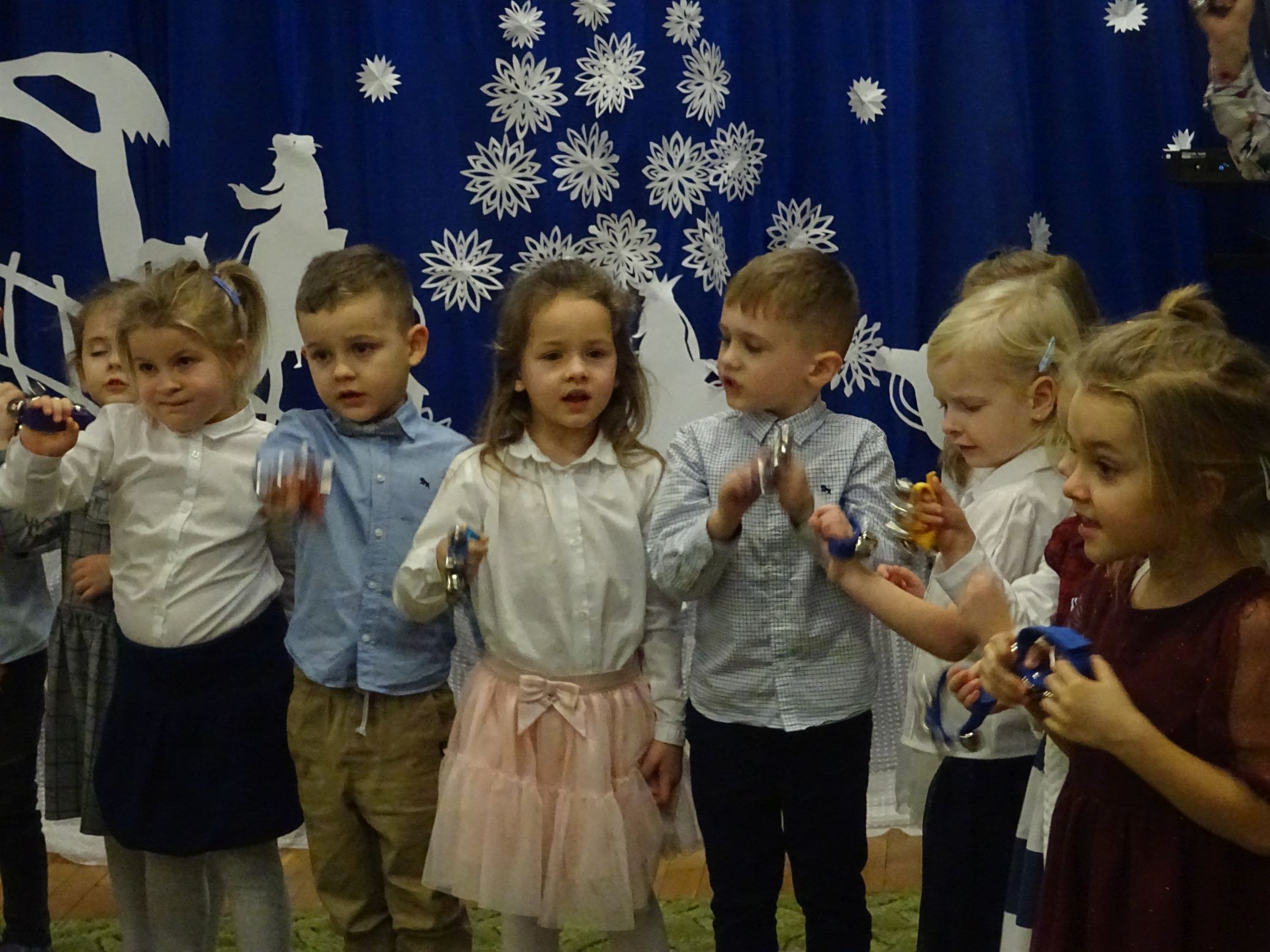 18.01.2022 r. odbyło się spotkanie świąteczne, na które przedszkolaki z grupy „Misie“ zaprosiły swoich rodziców. Przedszkolaki zaprezentowały swoje umiejętności, przedstawiły inscenizację o tradycjach i obrzędach świątecznych. Ukazały najważniejsze zwyczaje takie jak: przygotowania potraw wigilijnych, ubierania choinki, łamanie się opłatkiem, składanie sobie życzeń, pozostawienie wolnego miejsca przy stole dla gościa niespodziewanego oraz śpiewanie kolęd. „Misie“ zaśpiewały też piosenki, zatańczyły taniec z lampionami i zagrały na instrumentach. Dziękujemy wszystkim rodzicom za pomoc w przygotowaniu dzieci do występu i za obecność.