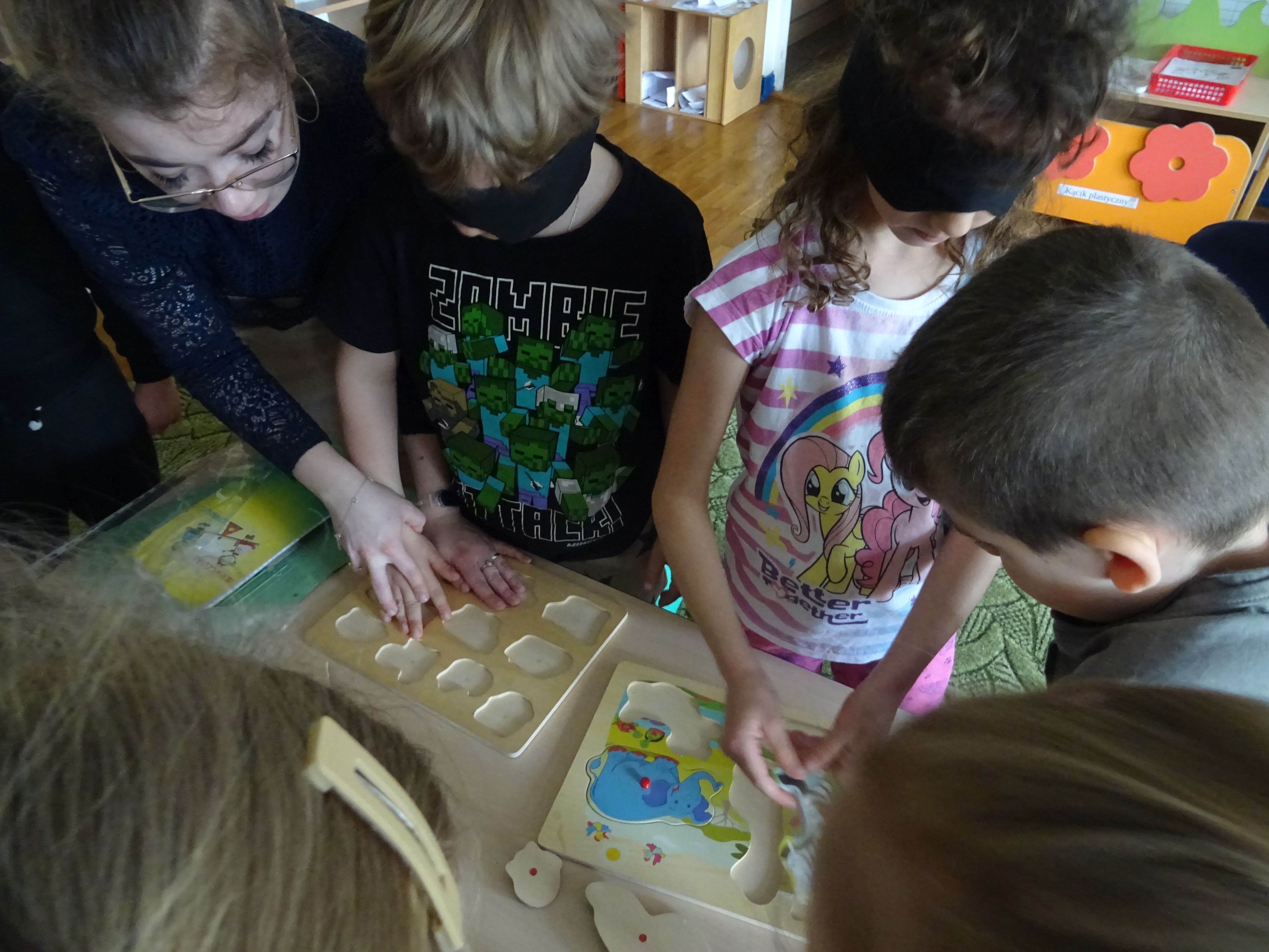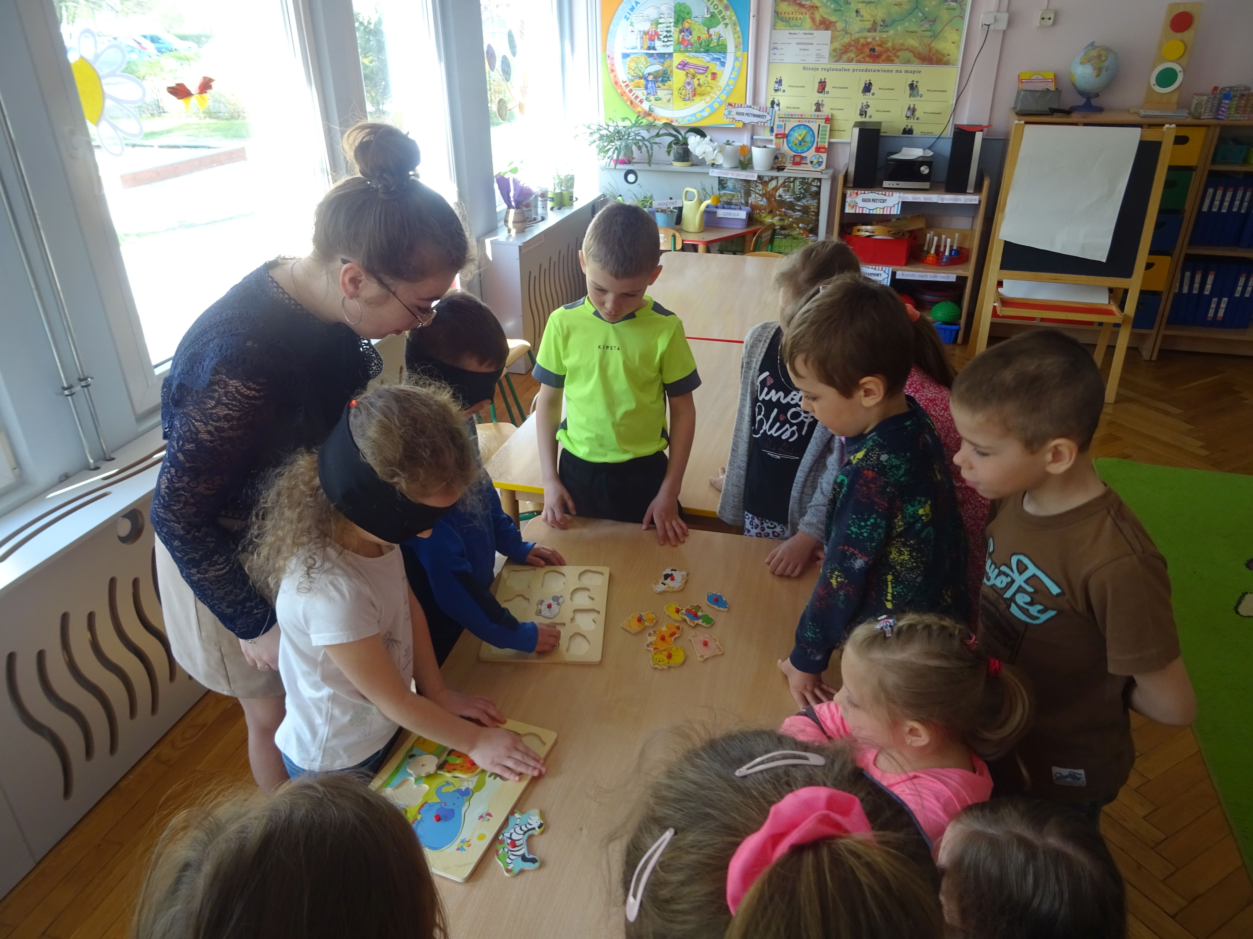 W dniu 28.04.2022 r. dzieci z grup „Motylki” i „Zajączki“ wzięły udział w zajęciach terapeutycznych, prowadzonych przez Panią z Poradni Psychologiczno-Pedagogicznej w Stalowej Woli. Temat zajęć to „Niepełnosprawni są wśród nas”. Celem zajęć było kształtowanie postawy empatii, tolerancji i zrozumienia dla osób niepełnosprawnych, poszerzanie świadomości na temat specyfiki funkcjonowania osób z różną niepełnosprawnością.