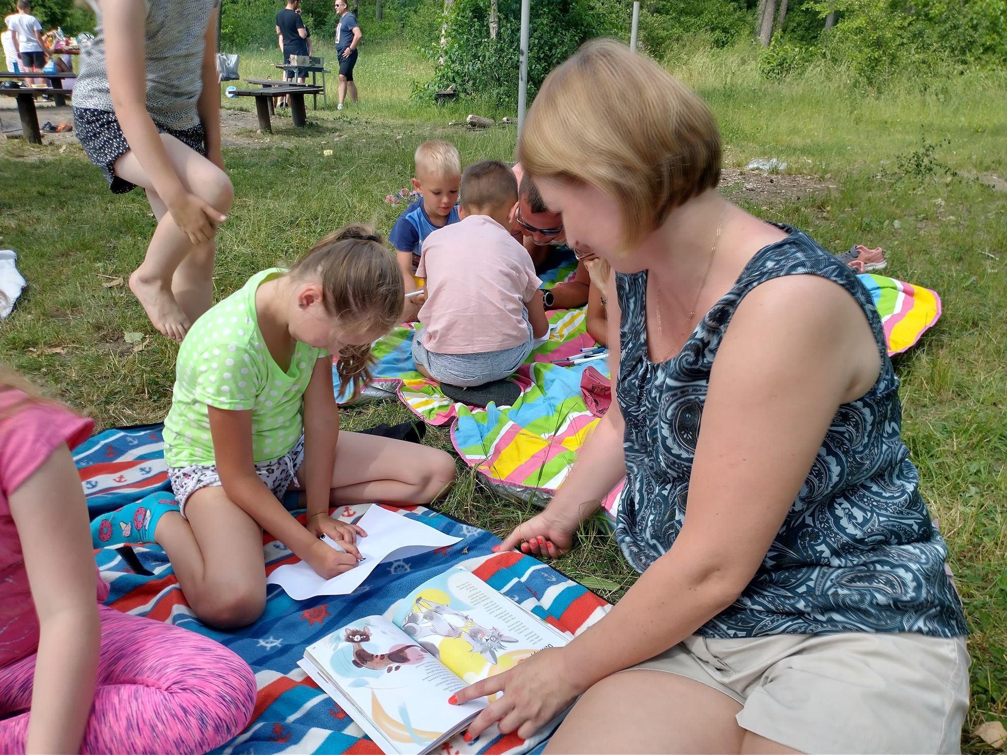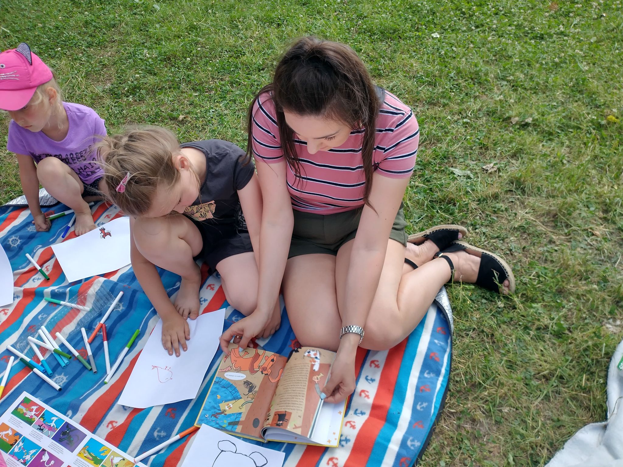 Na wesołe dni, na zły humor, na smuteczki i do poduszeczki – książka jest dobra na wszystko. A książka czytana dzieciom przez rodziców to dodatkowo świetny sposób na wspólne spędzanie czasu. W sobotę 18.06.2022 r. starsze dzieci z grupy „Zajączki“ wzięły udział w plenerowych warsztatach literacko – plastycznych dla dzieci i rodziców pt.: „Piękne, nowe, kolorowe – książeczki grupowe” w ramach Narodowego Programu Rozwoju Czytelnictwa. W trakcie warsztatów odbyło się wspólne czytanie przez dzieci i rodziców wybranych fragmentów książek. Stwarzano okazje do dyskusji o dziecięcej literaturze i doborze książek odpowiednich do wieku. W drugiej części spotkania odbyły się warsztaty plastyczne, których celem było wykonanie ilustracji do czytanego fragmentu książki. Powstałe prace zostały zaprezentowane na wystawie przedszkolnej i cieszyły się wielkim zainteresowaniem.
