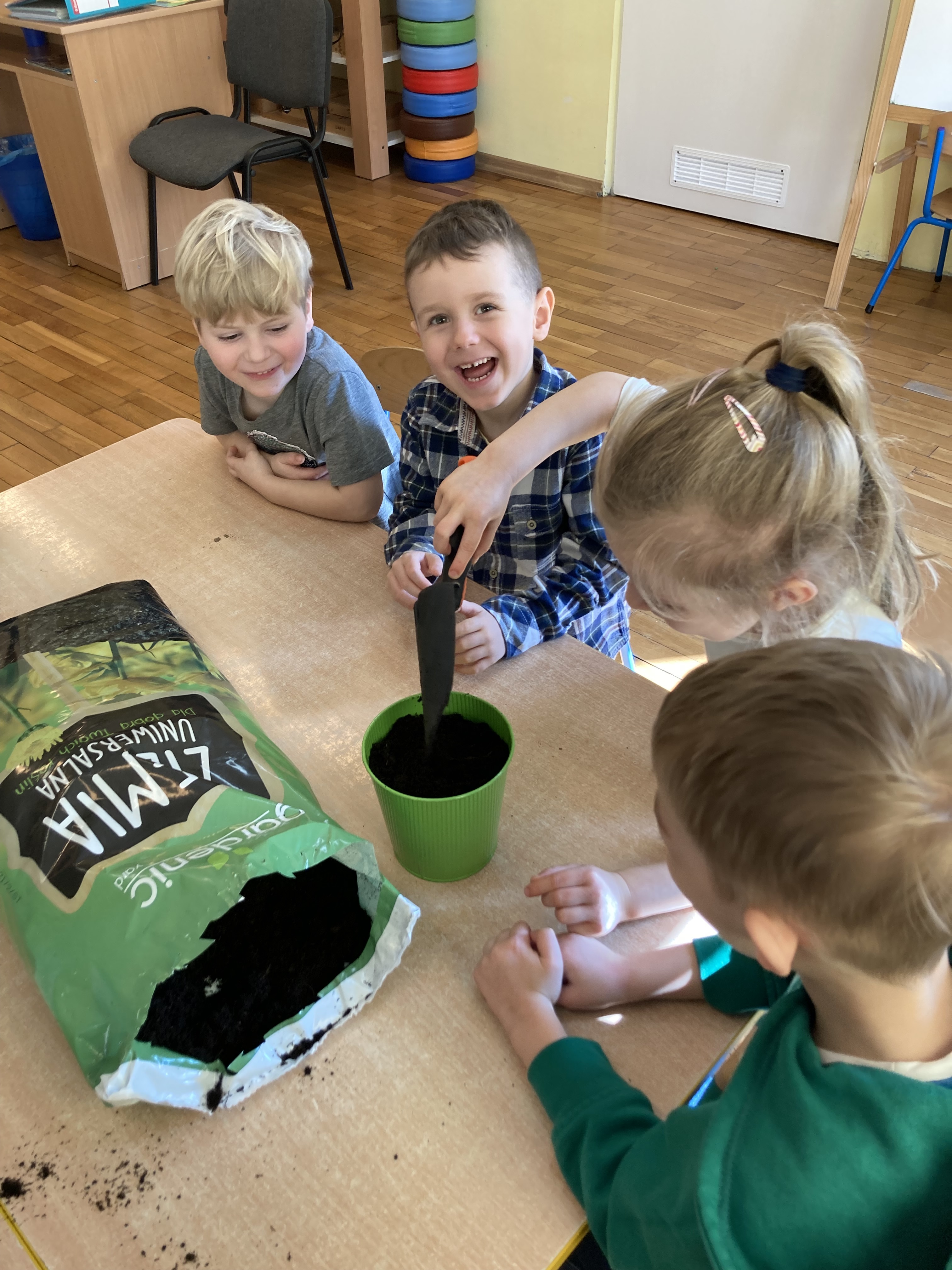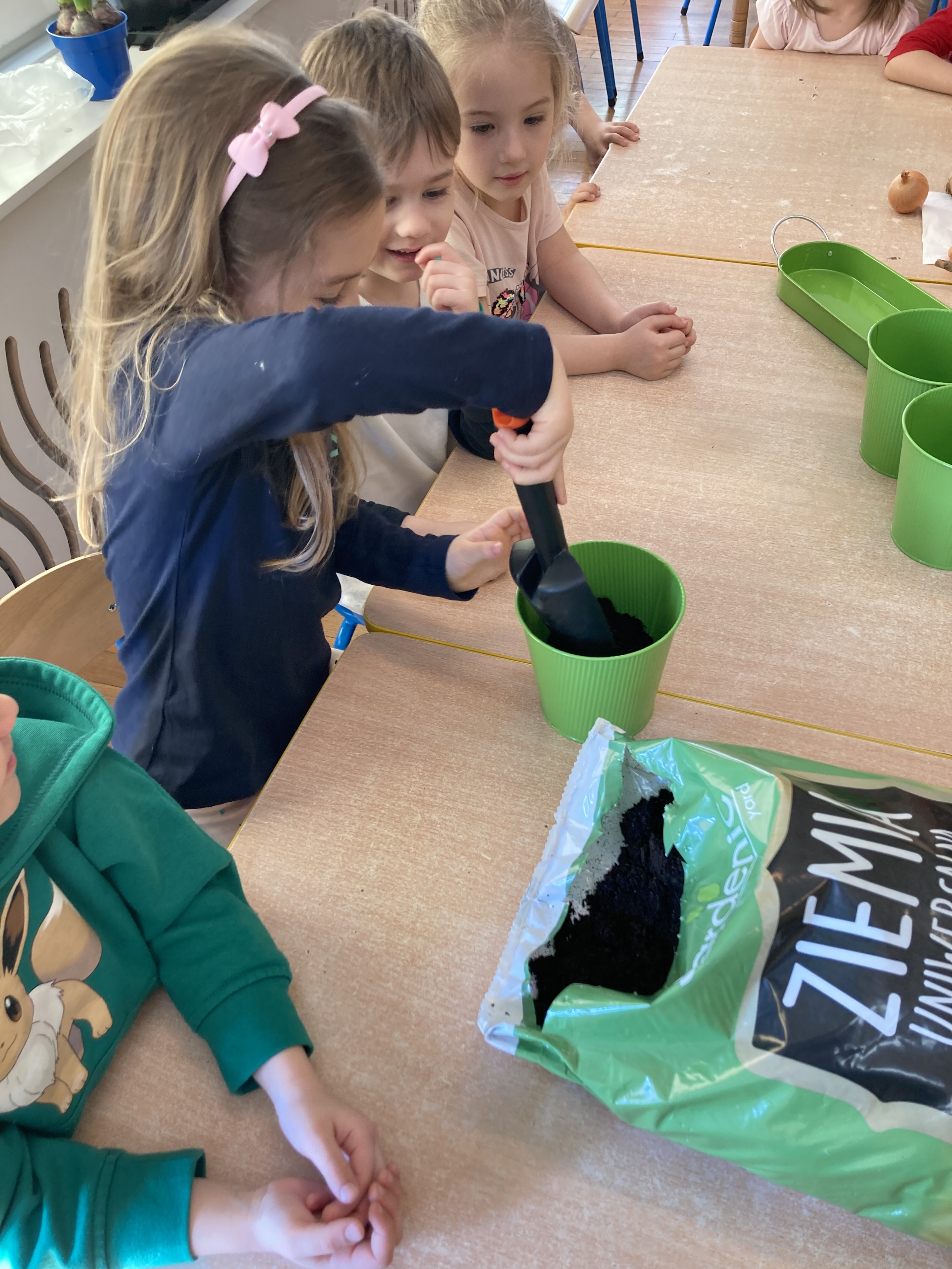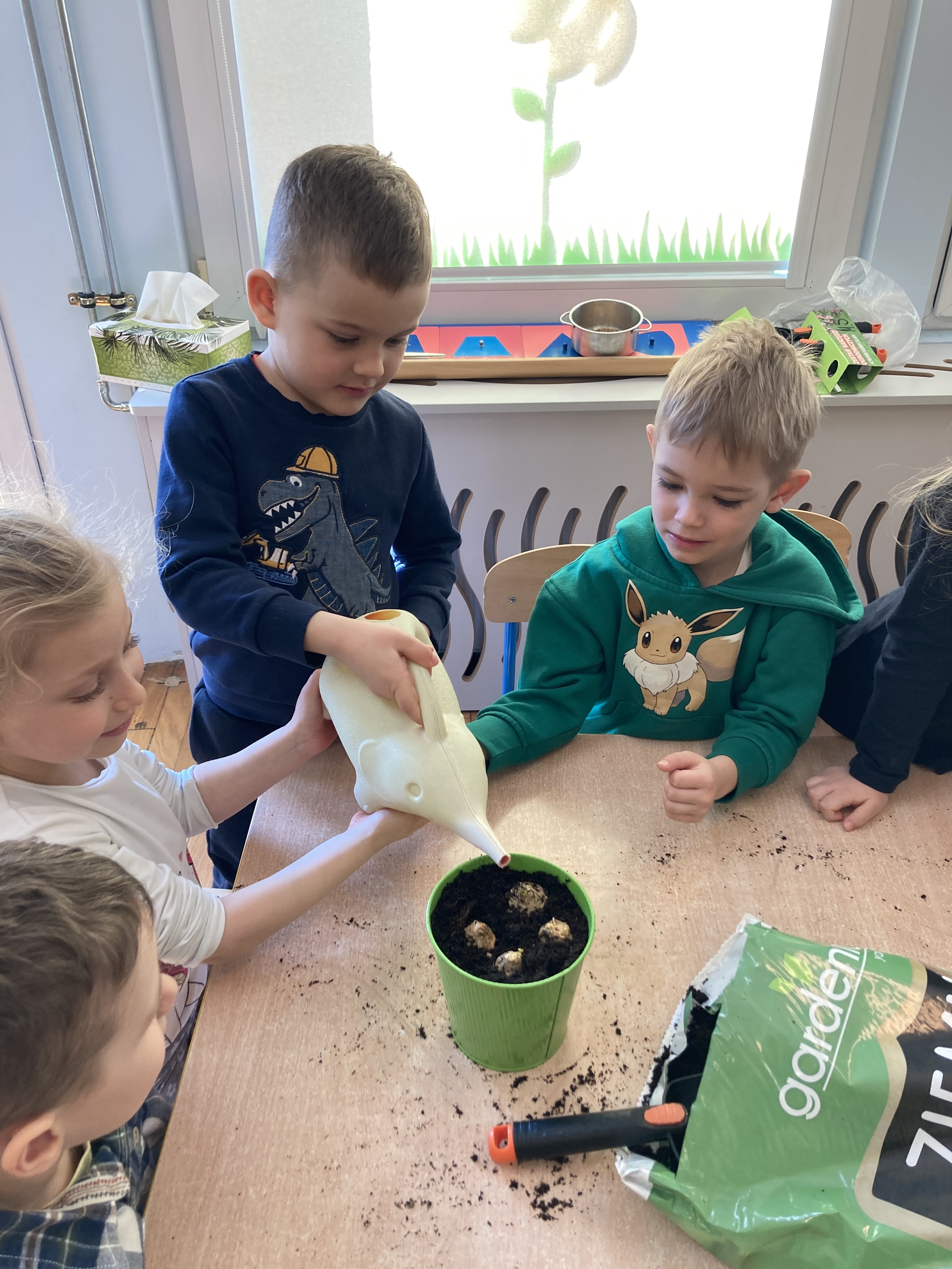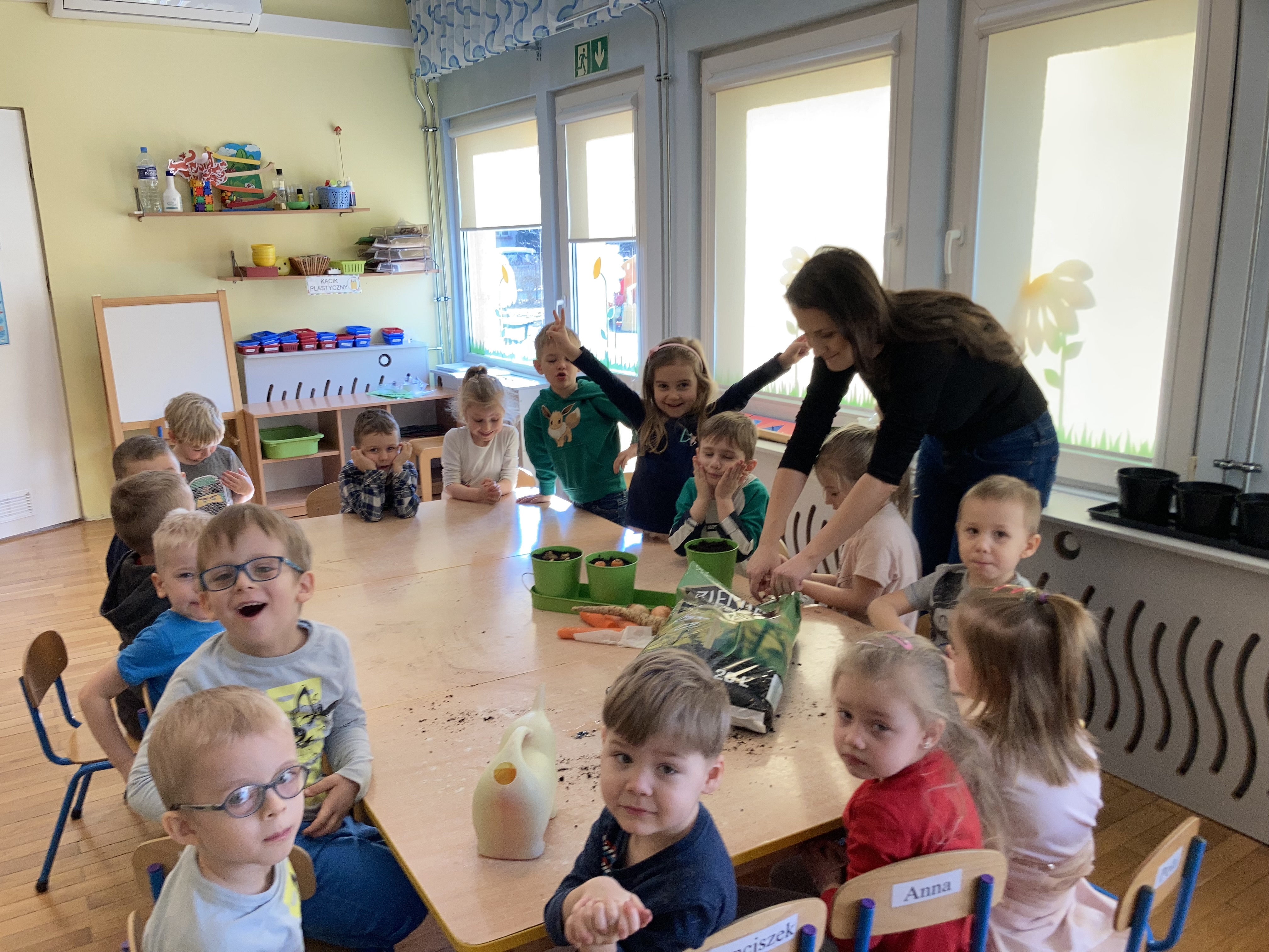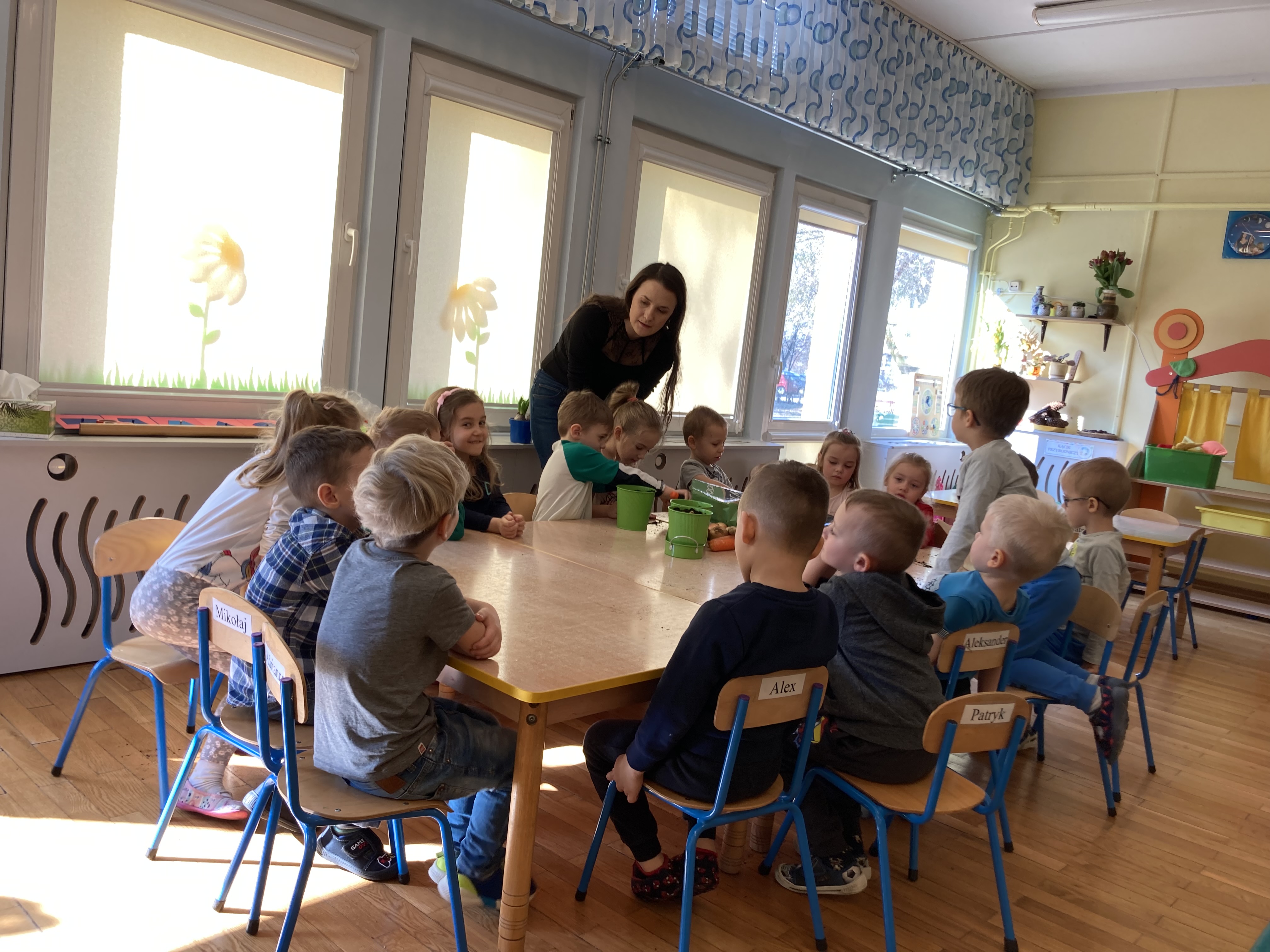Chcąc przyśpieszyć nadejście wiosny przedszkolaki z grupy „Misie“ postanowiły założyć w swojej sali zielony ogródek. Zgromadziły potrzebne rzeczy: doniczki, słoiki, konewkę, ziemię, nasionka. Przed przystąpieniem do pracy poznały warunki potrzebne roślinom do wzrostu. Następnie wysiewały do doniczek nasiona, marchewki i pietruszki, sadziły cebulki. Założone hodowle wzbogaciły kącik przyrody, który stał się miejscem do obserwacji kolejnych etapów wzrostu roślin. Kiedy wyrosną będą źródłem witamin na kanapkach. Celem tego działania było zapoznanie dzieci z potrzebami i wymaganiami roślin, kształtowanie nawyków dbania o rośliny oraz ukazanie dzieciom prostych prac gospodarczych. Przedszkolaki uporządkowały także swoją salę oczekując na przyjście wiosny.