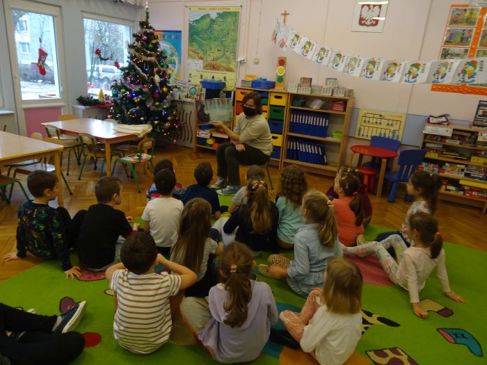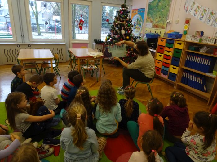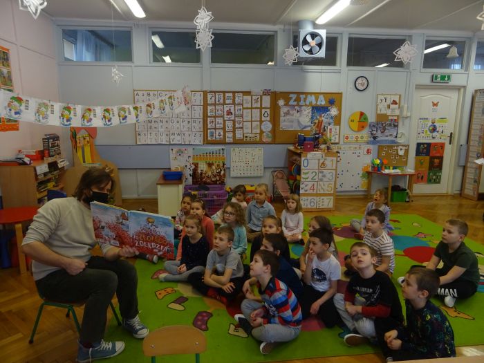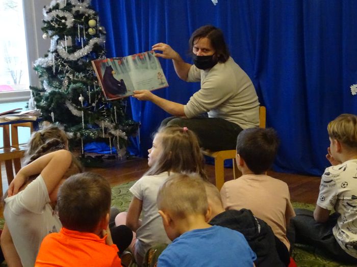 26.02.2022 r. przedszkolaki z grupy „Motylki“ oraz „Zajączki“ po raz kolejny gościły Pana bibliotekarza z Miejskiej Biblioteki Publicznej w Stalowej Woli. Podczas spotkania dzieci z zaciekawieniem słuchały bajek na temat rodziny, przyjaźni i odwagi, między innymi „Pewnego dnia, niedźwiadku“ oraz „Wyścig po Złotego Żołędzia“. Pod koniec spotkania dzieci słuchały również zagadek, z którymi świetnie sobie poradziły.
