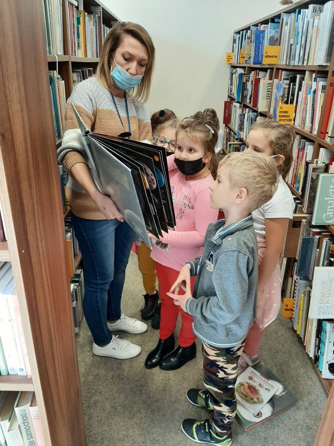 Wiek przedszkolny jest doskonałym czasem na rozbudzanie zainteresowań czytelniczych. W październiku, dzieci z grupy „Motylki“ wybrały się do Miejskiej Biblioteki Publicznej w Stalowej Woli. Przedszkolaki zwiedziły placówkę, dowiedziały się, jak wygląda praca bibliotekarza, co należy robić, aby stać się czytelnikiem. Przedszkolaki z wielkim zainteresowaniem przeglądały się książkom znajdującym się na półkach, a szczególnie książeczkom dla dzieci. Pani bibliotekarka pokazała dzieciom, gdzie znajduje się specjalnie przeznaczony kącik z książeczkami dla nich – dzieci ochoczo oglądały kolorowe i bogato ilustrowane książeczki. Dzieci dowiedziały się także, jak należy dbać o książki, by służyły nam jak najdłużej. Dzieci pełne wrażeń, z uśmiechem na twarzy, wróciły do przedszkola. Przedszkolaki zapewniały swoje panie, że odwiedzą to miejsce jeszcze raz, z rodzicami.