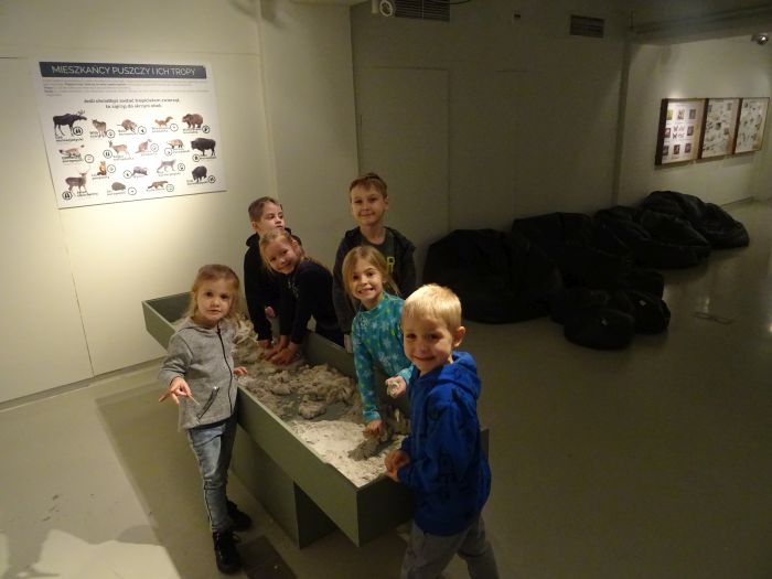Dzieci z grupy „Zajączki“ pojechały na wycieczkę autokarową do Muzeum Regionalnego w Stalowej Woli na wystawę pt.: „Pierwotna Puszcza Sandomierska”. Dzieci oglądały unikatową faunę w scenerii pierwotnej puszczy tętniącej życiem. Przedszkolaki brały udział w zabawie w tropiciela zwierząt, obserwatora przyrody pod mikroskopem, oglądały intersujące projekcje filmowe. Wszystkie dzieci wzięły udział w warsztatach plastycznych; samodzielnie wykonały bajkowe maski zwierząt. Na koniec wszystkie dzieci otrzymały wartościowe upominki od Muzeum Regionalnego.