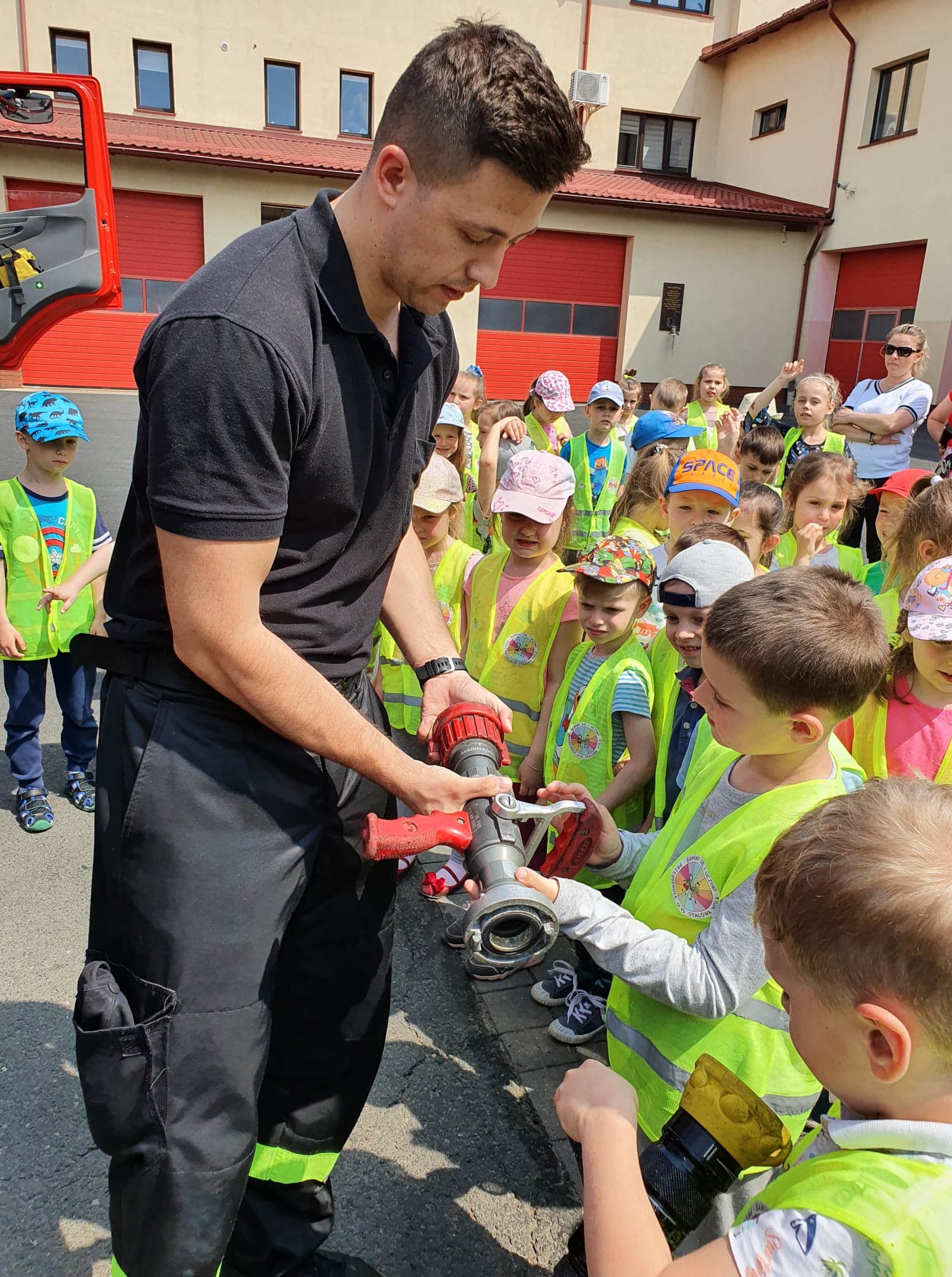 Dnia 11.05.2022r. dzieci z grup: „Biedronki“ i „Motylki“ odwiedziły PSP w Stalowej Woli. Podczas wizyty poznały główne cele działalności strażaków, miały okazję poznać sprzęt i wyposażenie potrzebne do ratowania mienia i życia ludzkiego podczas pożaru, niesienia pomocy w wypadkach samochodowych. Dzieci zrozumiały ważną rolę działalności PSP oraz wyrobiły w sobie uczucie szacunku dla ludzi wykonujących ten trudny zawód.