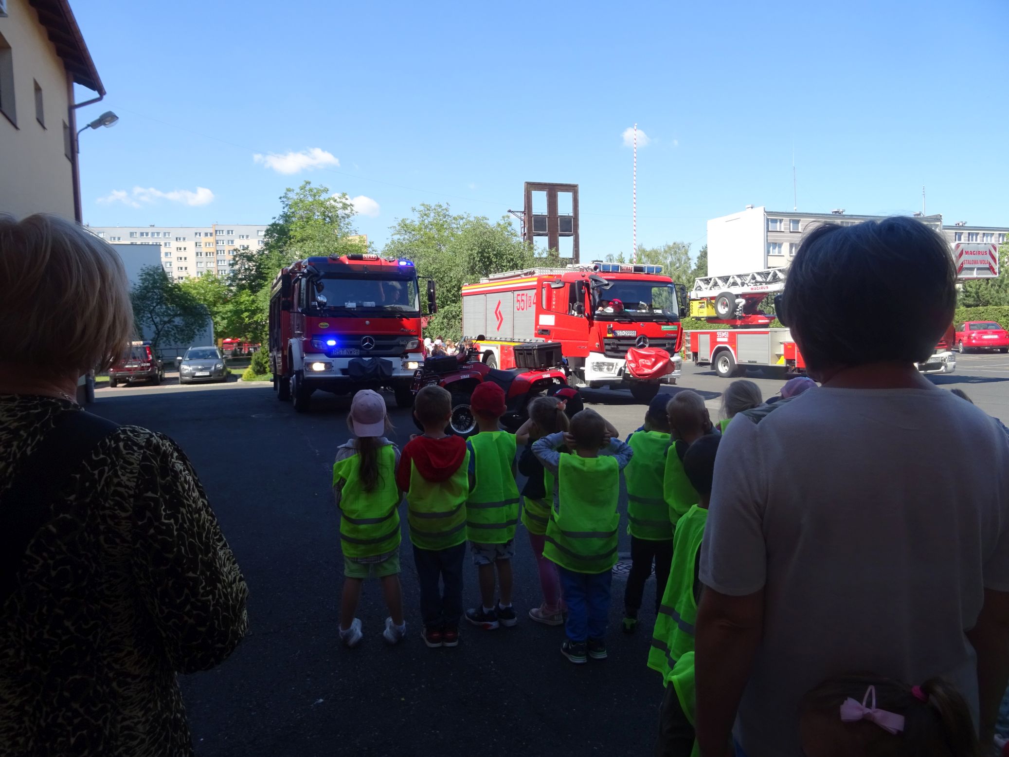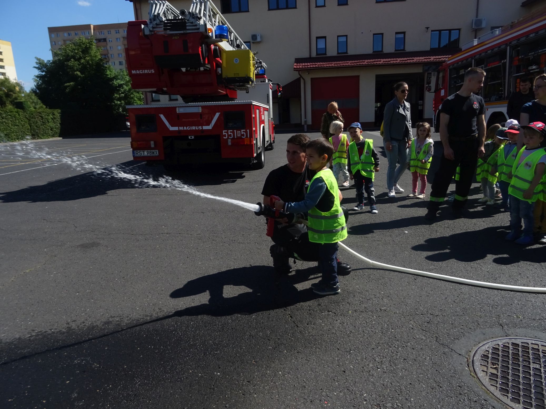3.06.2022 r. przedszkolaki z grup „Krasnale“ i „Misie“ odbyły wycieczkę do Państwowej Straży Pożarnej w Stalowej Woli. Z zaciekawieniem słuchały panów strażaków, którzy opowiedzieli o swojej pracy. Dzieci mogły też obejrzeć sprzęt ratowniczy, zajrzeć do środka pojazdów strażackich, czy też do szatni strażaków. Niewątpliwą atrakcją była możliwość lania wody z węża strażackiego. Wycieczka była okazją do poznania działań strażaków, jak i kształtowania postawy szacunku do wykonywanych przez nich ciężkiej pracy, a także przypomnienia zasad bezpiecznego obchodzenia się z ogniem.