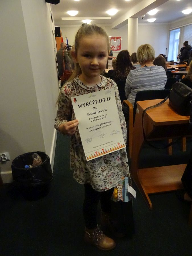 Z radością informujemy, że Emilka Sz. z grupy „Zajączki” otrzymała wyróżnienie w konkursie plastycznym pt.: "Pomaganie jest cool!", w kategorii dzieci 5 i 6 letnie z przedszkoli w Stalowej Woli. W konkursie wzięło udział jeszcze pięć dziewczynek z grupy „Zajączki”: Paulinka, Amelka, Iza, Laura i Hania. Wszystkie prace były wykonane z niezwykłą starannością i kreatywnością, dlatego każda z dziewczynek otrzymała pamiątkową książkę. Organizatorem konkursu było Stowarzyszenie Centrum Aktywności Społecznej SPECTRUM w Stalowej Woli w partnerstwie z Miejskim Ośrodkiem Pomocy Społecznej w Stalowej Woli oraz Gminą Stalowa Wola. Celem konkursu było przybliżenie dzieciom idei wolontariatu, kształtowanie wrażliwości na potrzeby innych, a także ukazanie, że każdy z nas ma wiele do zaoferowania swojemu otoczeniu. Rozstrzygnięcie konkursu nastąpiło podczas Gali Wolontariatu 2021 w dniu 7 grudnia 2021 r. w Urzędzie Miasta w Stalowej Woli. A to link do strony z relacją z Gali Wolontariatu 2021: https://www.mops-stalwol.pl/index.php/kw-aktualnosci/997-gala-wolontariatu-2021-w-stalowej-woli