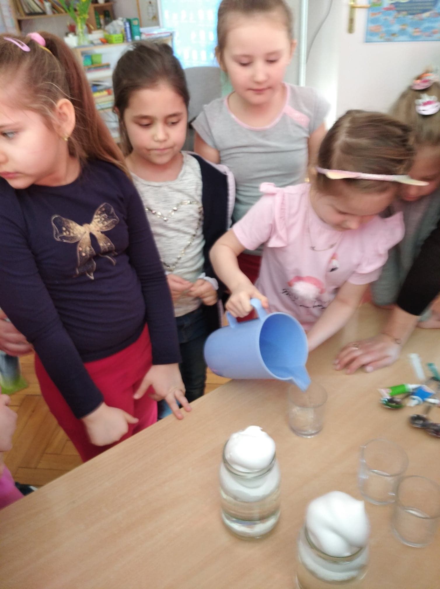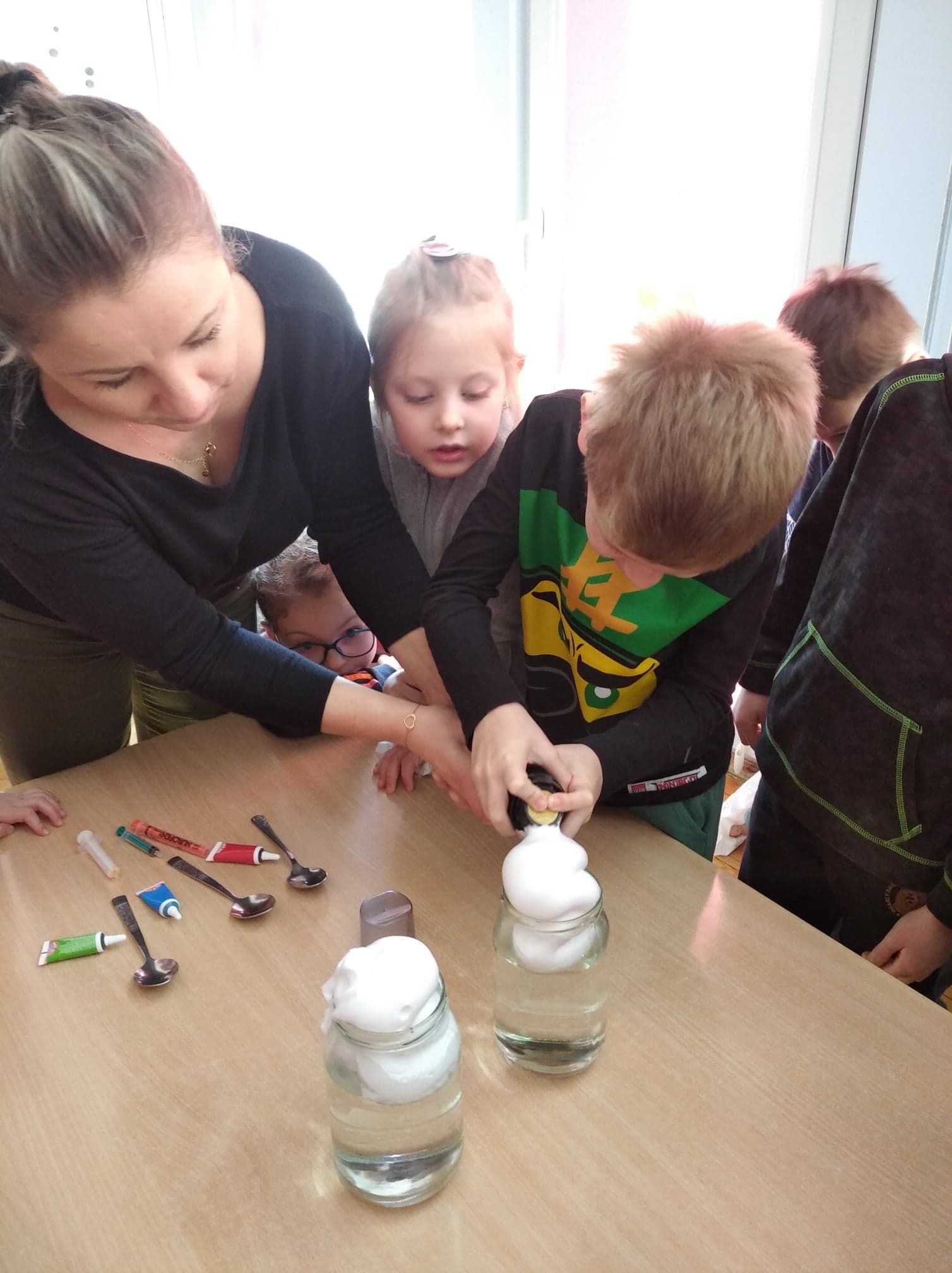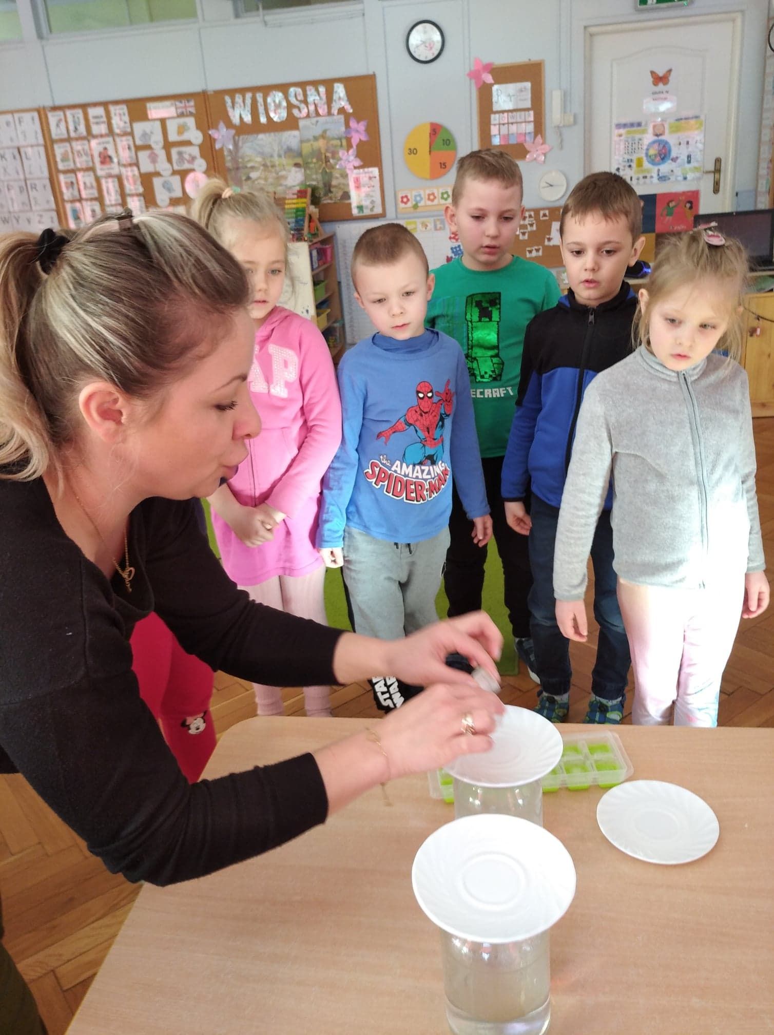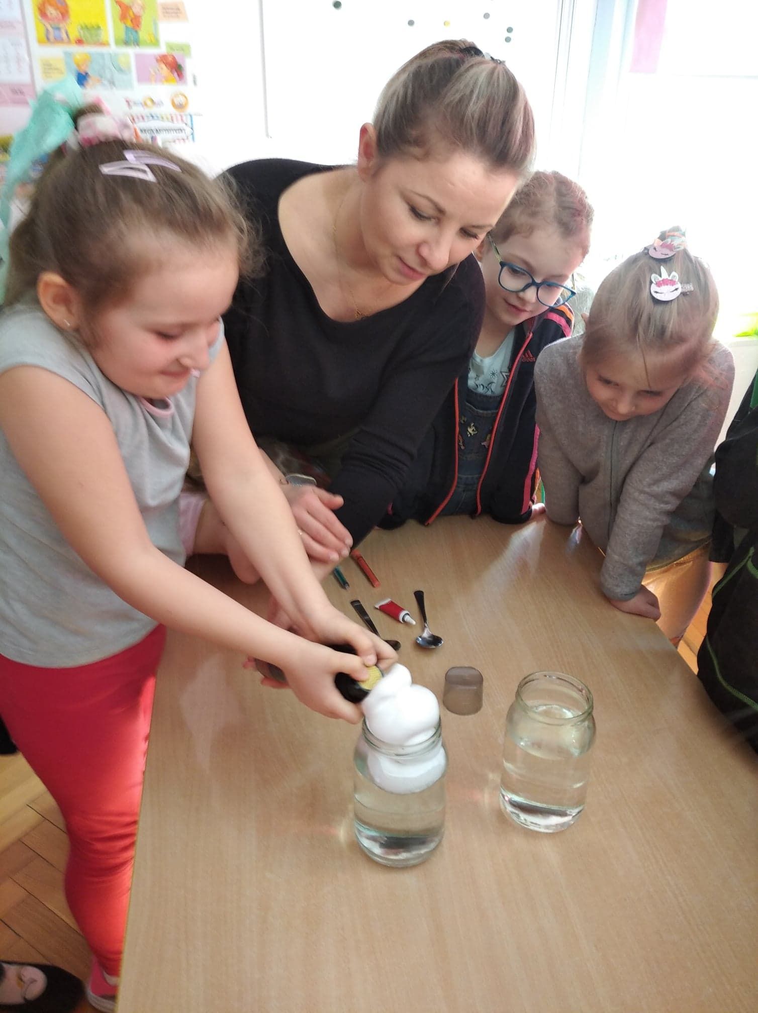 Dzieci kochają zabawy na śniegu i wszelkie zimowe aktywności na powietrzu. Pani Zima postanowiła nas odwiedzić i sprawiła nam wielką radość. Wykorzystując okazję z pojawienia się śniegu 10.03. 2022 r. dzieci z grupy ,,Motylki” dbając o zdrowie i hartując organizm wybrały się na przedszkolny plac zabaw. Wreszcie mogliśmy urządzić zabawy na śniegu. Dzieci oddały się zimowej zabawie wykazując się pomysłowością w szaleństwach na śniegu. Śnieg nikomu nie przeszkadzał, dzieci miały dużo frajdy, a do przedszkola wróciliśmy z szerokimi uśmiechami. 11.03.2022 r. ,,Motylki” robiły zabawy badawcze z wodą, wykonywały doświadczenia związane z parowaniem i skraplaniem. Odkrywanie, eksperymentowanie, doświadczanie to świetna zabawa. Dzieci rozwiązywały zagadki słowne, stworzyły mapę pojęciową ,,Do czego potrzebna jest woda? Omówiły proces krążenia wody w przyrodzie na podstawie plakatu i filmu edukacyjnego. Zabawy badawcze dostarczyły dzieciom duże ilości nowych przeżyć i wrażeń , doskonaląc koncentrację uwagi oraz cierpliwość w czekaniu na swoją kolej. Największą fascynację wywołał „Kolorowy deszcz” z pianką do golenia. Przedszkolaki spróbowały również zrobić ,,Deszcz w słoiku” wykorzystując wrzątek i kostki lodu . Obserwowały i wyciągały wnioski z prowadzonych doświadczeń. Wszystkim zajęcia bardzo się podobały, dlatego mamy nadzieję, że już niedługo uda nam się podobne powtórzyć.
