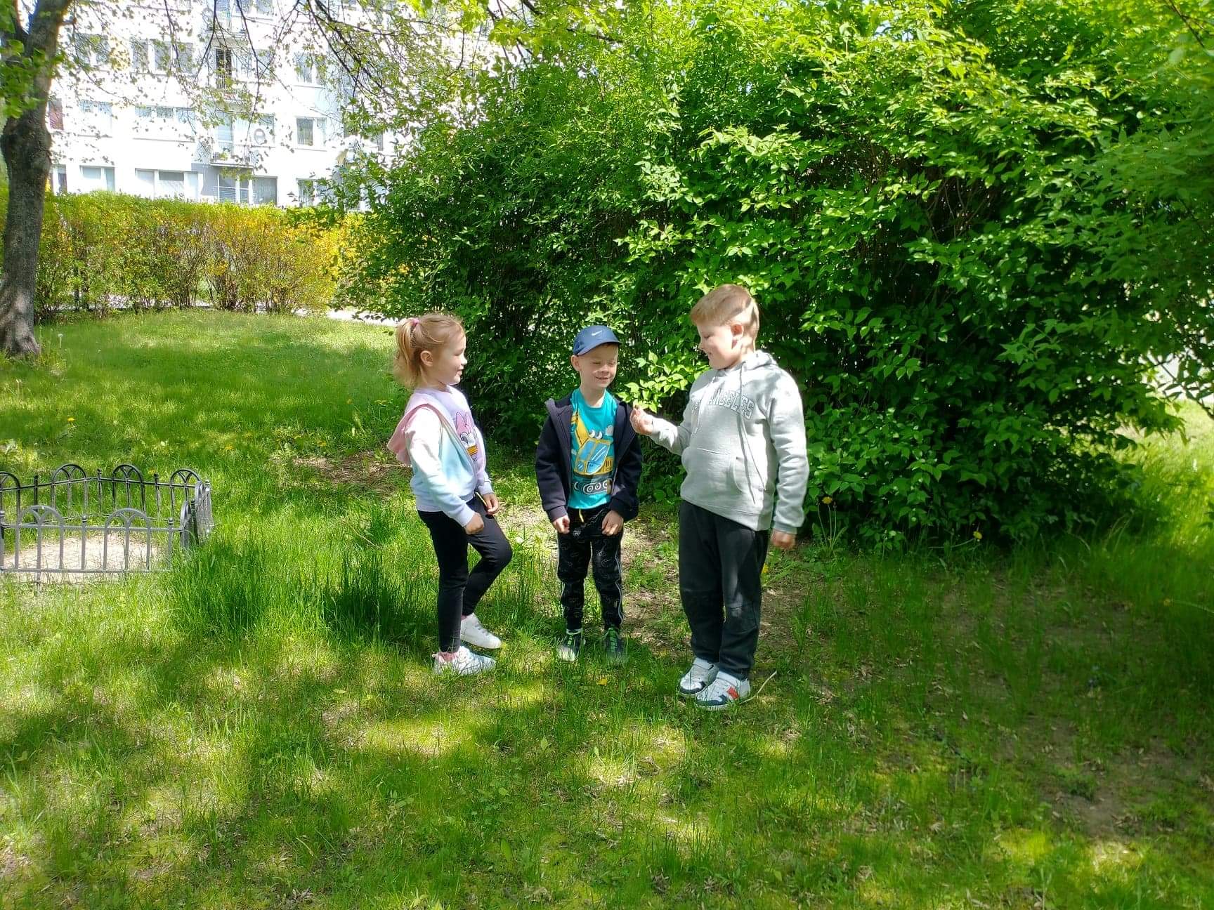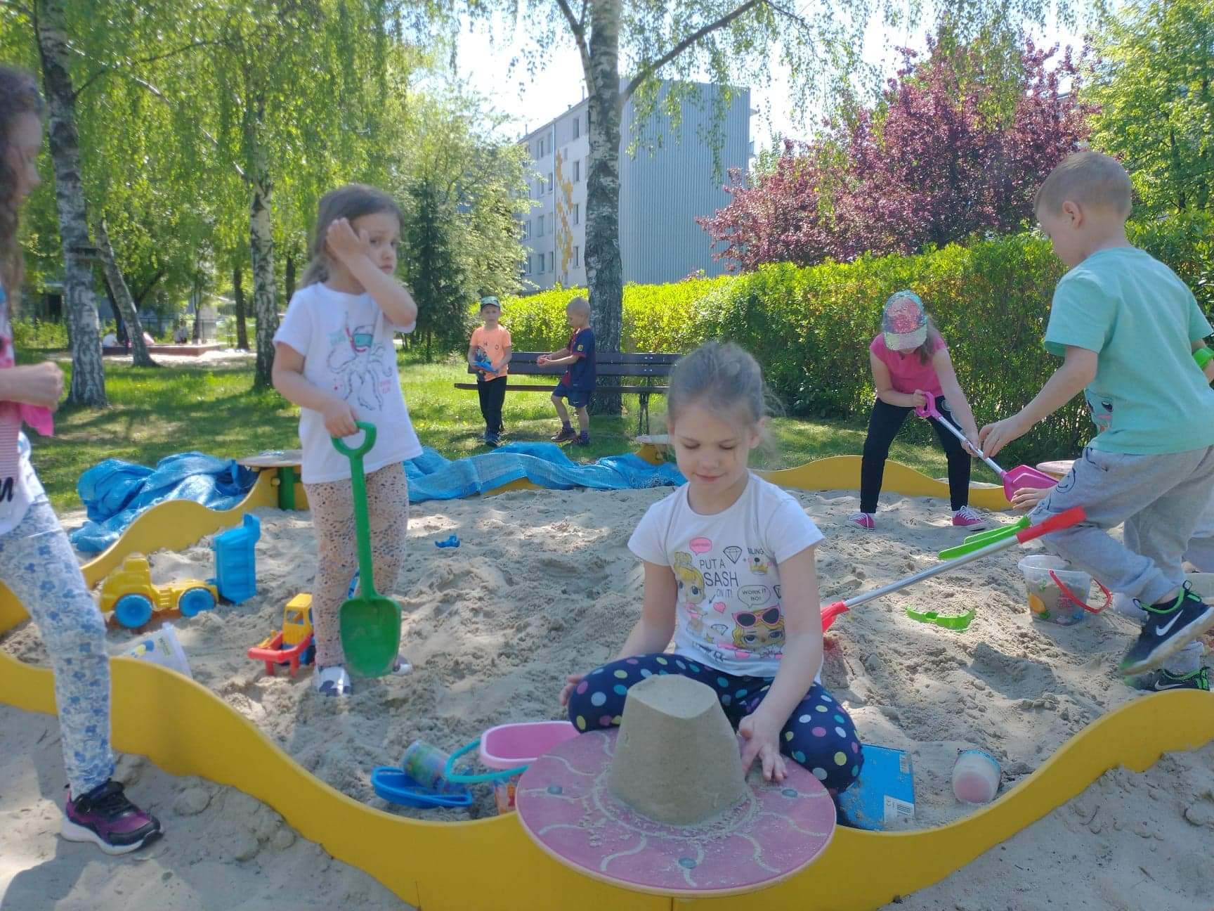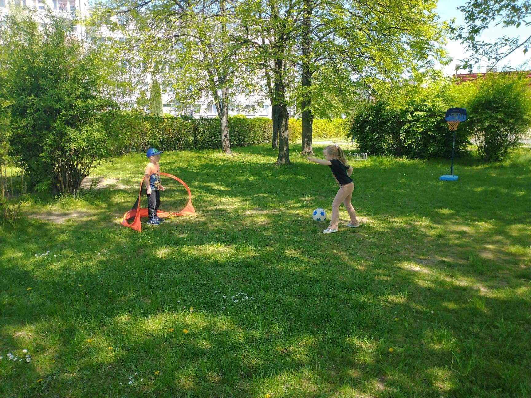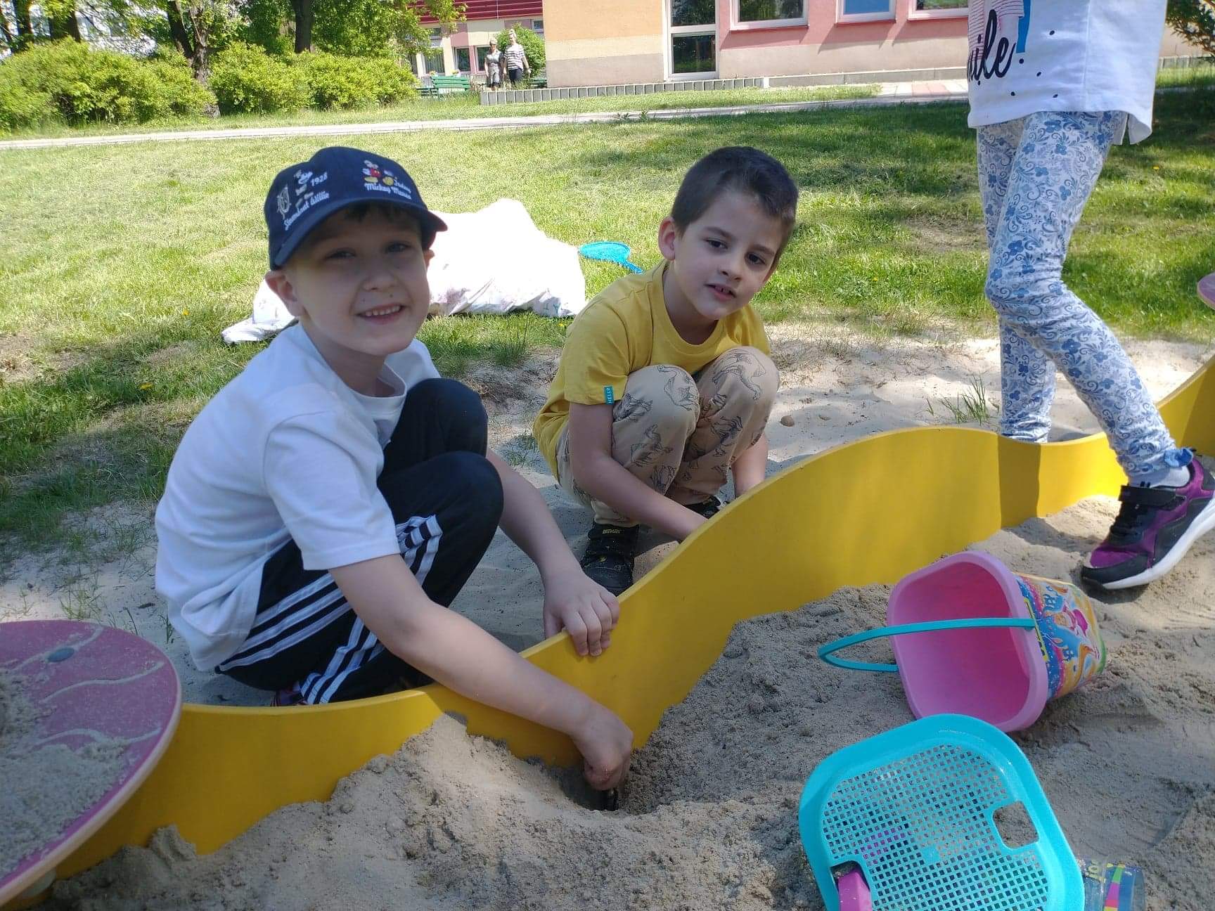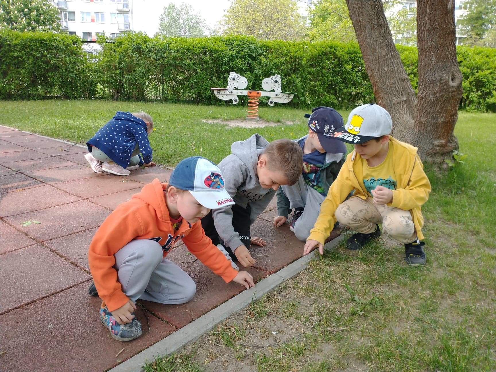 Dzieci z grupy Zajączki uwielbiają zabawę na przedszkolnym placu zabaw. Korzystają z pięknej pogody, ale ogromną atrakcją był dla nich spacer w deszczu. Dzieci lubią budować domki dla owadów i zwierząt, rysować kredą, skakać na skakance, kozłować i uczyć się odbijania oraz odpoczywać na kocach z grami i książkami. Zabawy na świeżym powietrzu przy piaskownicy, huśtawkach, torze przeszkód, bramkach są nie tylko świetną zabawą, ale także prawdziwą nauką. Przedszkolaki dbają o porządek, zbierają śmieci, plewią trawniki. Plac zabaw jest dla dzieci miejscem codziennej zabawy podejmowanej indywidualnie lub wspólnie z rówieśnikami. Jest dla nich także źródłem radości, relaksu, odpoczynku, nabywania wielu sprawności ruchowych i pokonywania przeszkód.