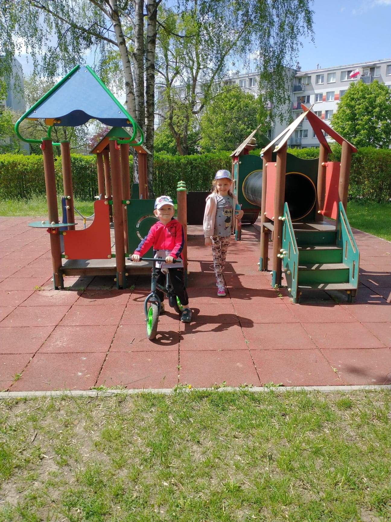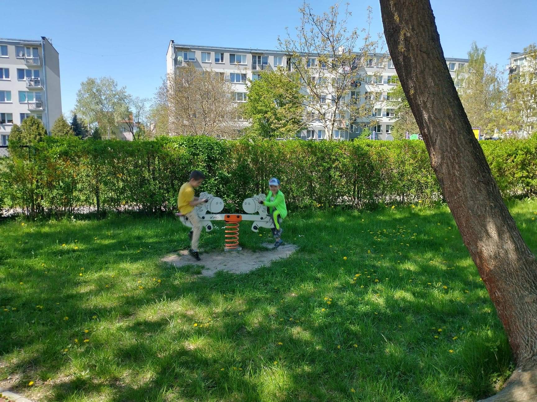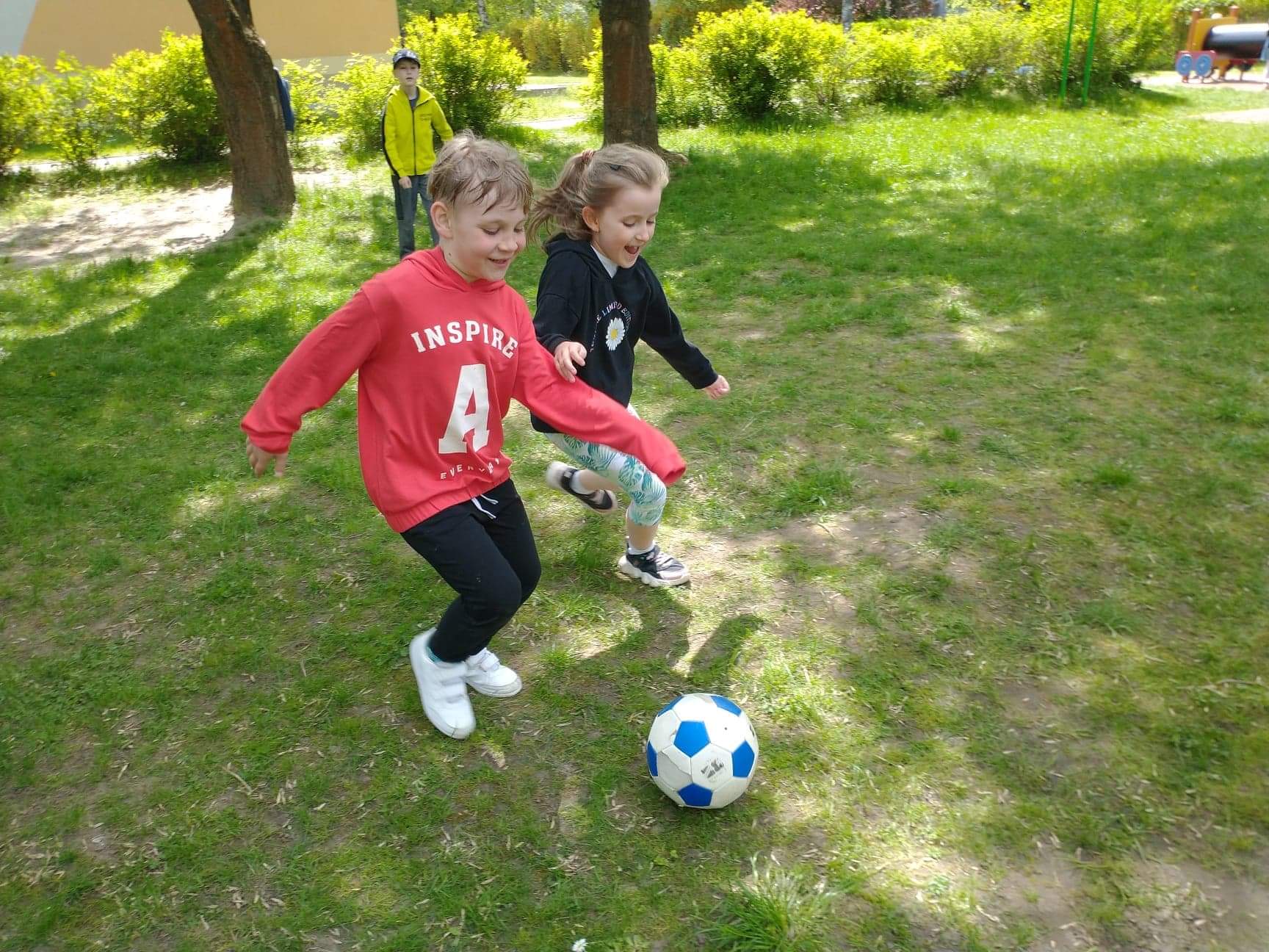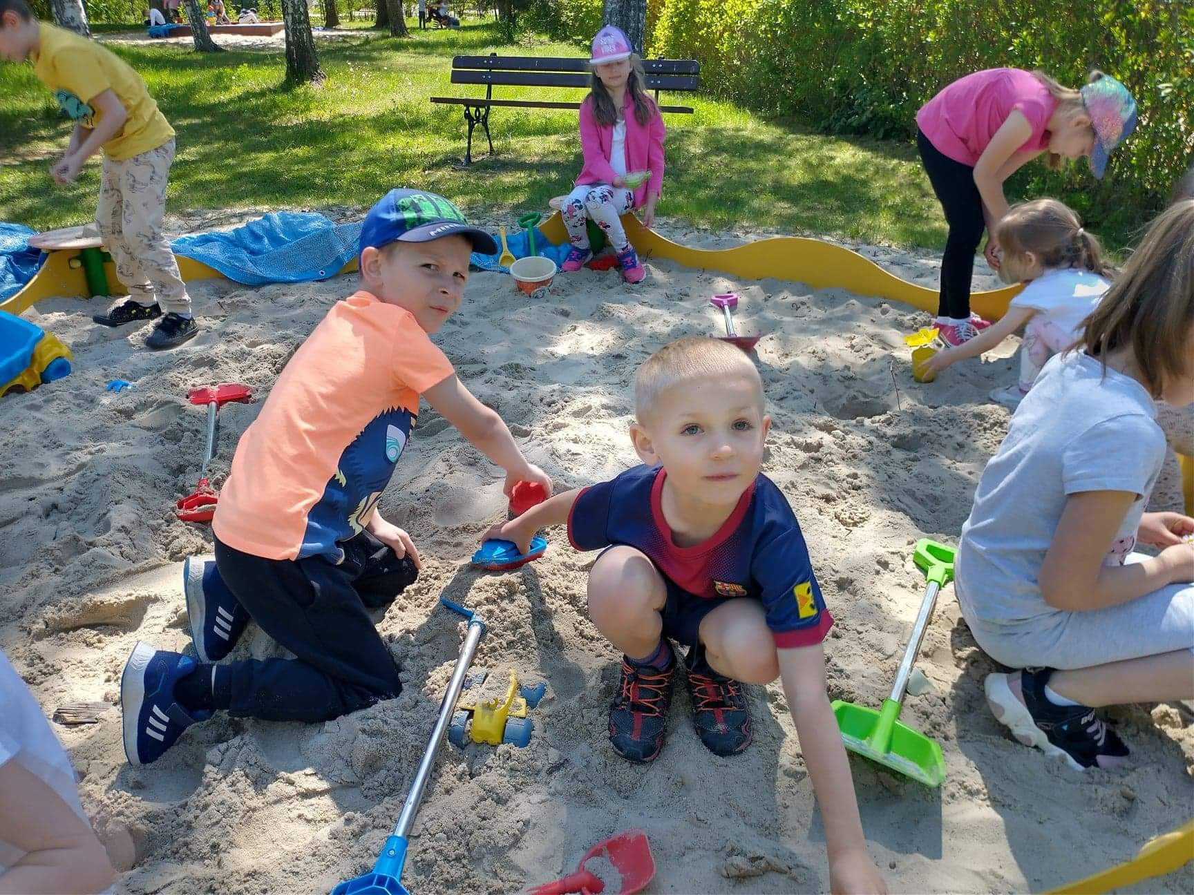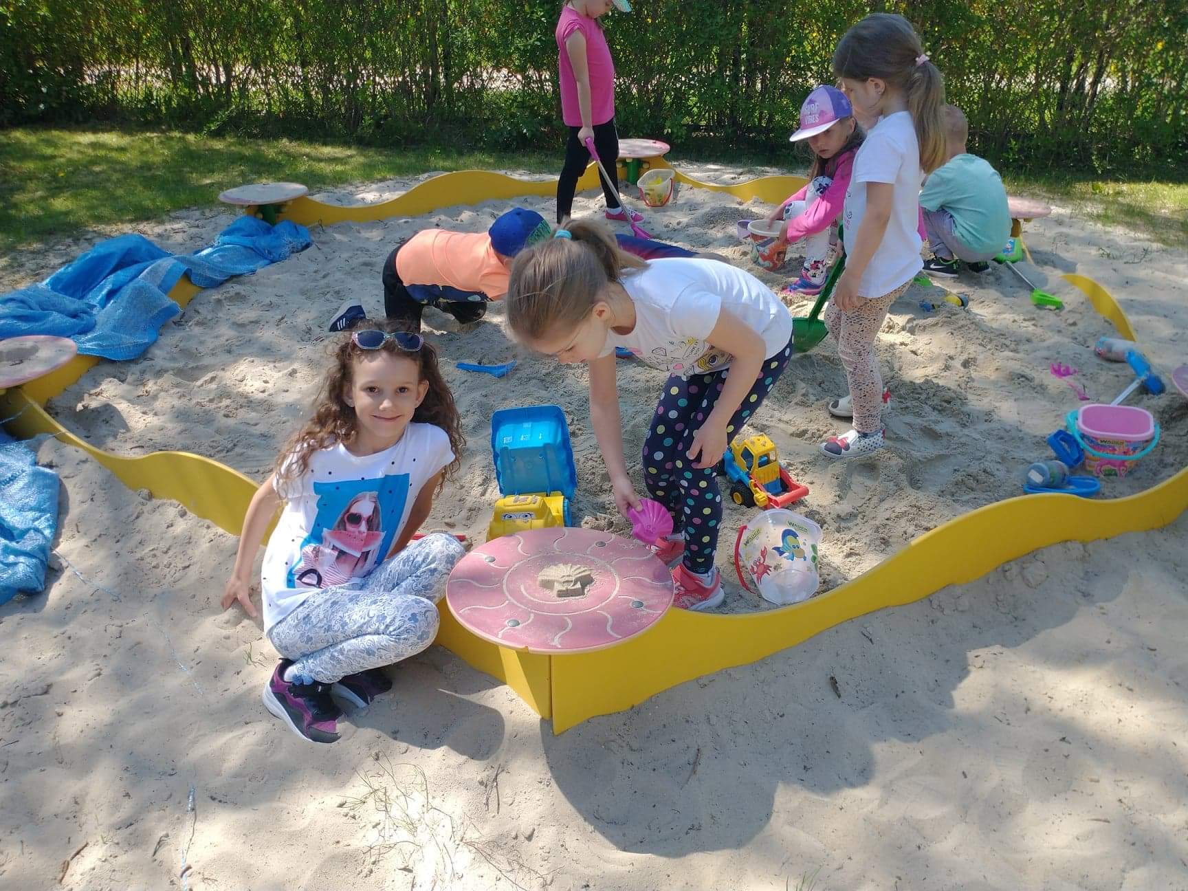 Dzieci z grupy Zajączki uwielbiają zabawę na przedszkolnym placu zabaw. Korzystają z pięknej pogody, ale ogromną atrakcją był dla nich spacer w deszczu. Dzieci lubią budować domki dla owadów i zwierząt, rysować kredą, skakać na skakance, kozłować i uczyć się odbijania oraz odpoczywać na kocach z grami i książkami. Zabawy na świeżym powietrzu przy piaskownicy, huśtawkach, torze przeszkód, bramkach są nie tylko świetną zabawą, ale także prawdziwą nauką. Przedszkolaki dbają o porządek, zbierają śmieci, plewią trawniki. Plac zabaw jest dla dzieci miejscem codziennej zabawy podejmowanej indywidualnie lub wspólnie z rówieśnikami. Jest dla nich także źródłem radości, relaksu, odpoczynku, nabywania wielu sprawności ruchowych i pokonywania przeszkód.