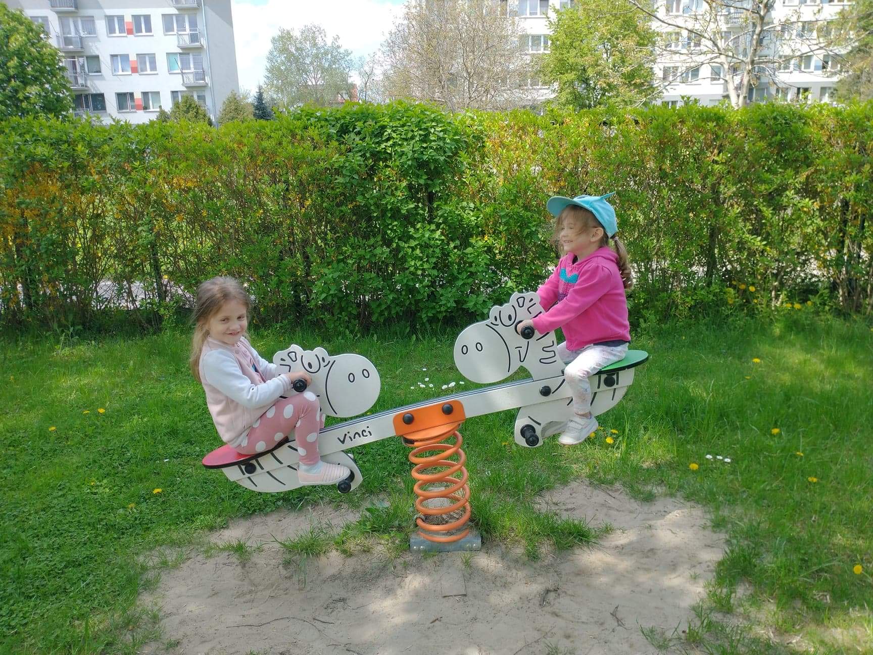 Wesołe "Zajączki" na przedszkolnym placu