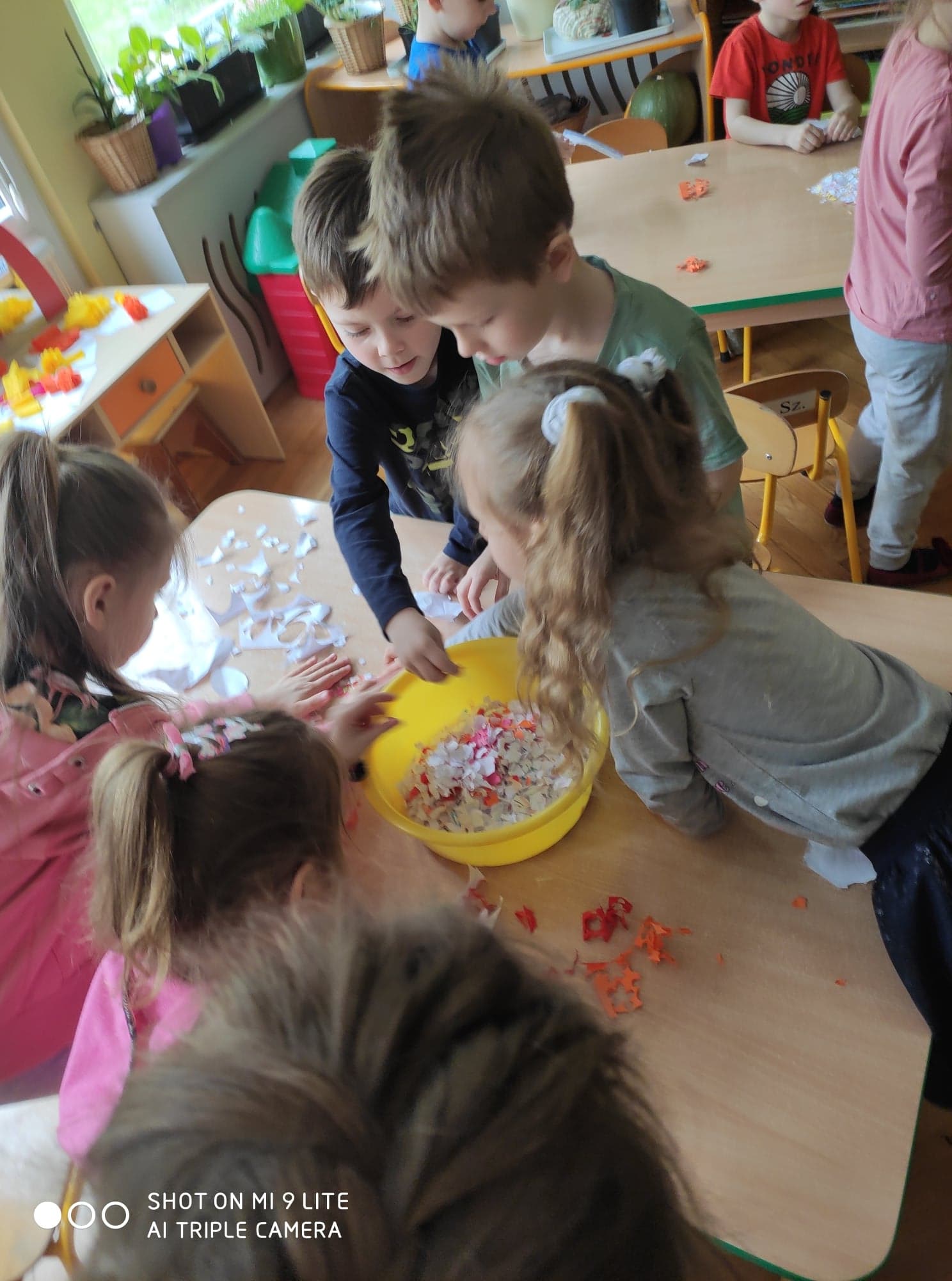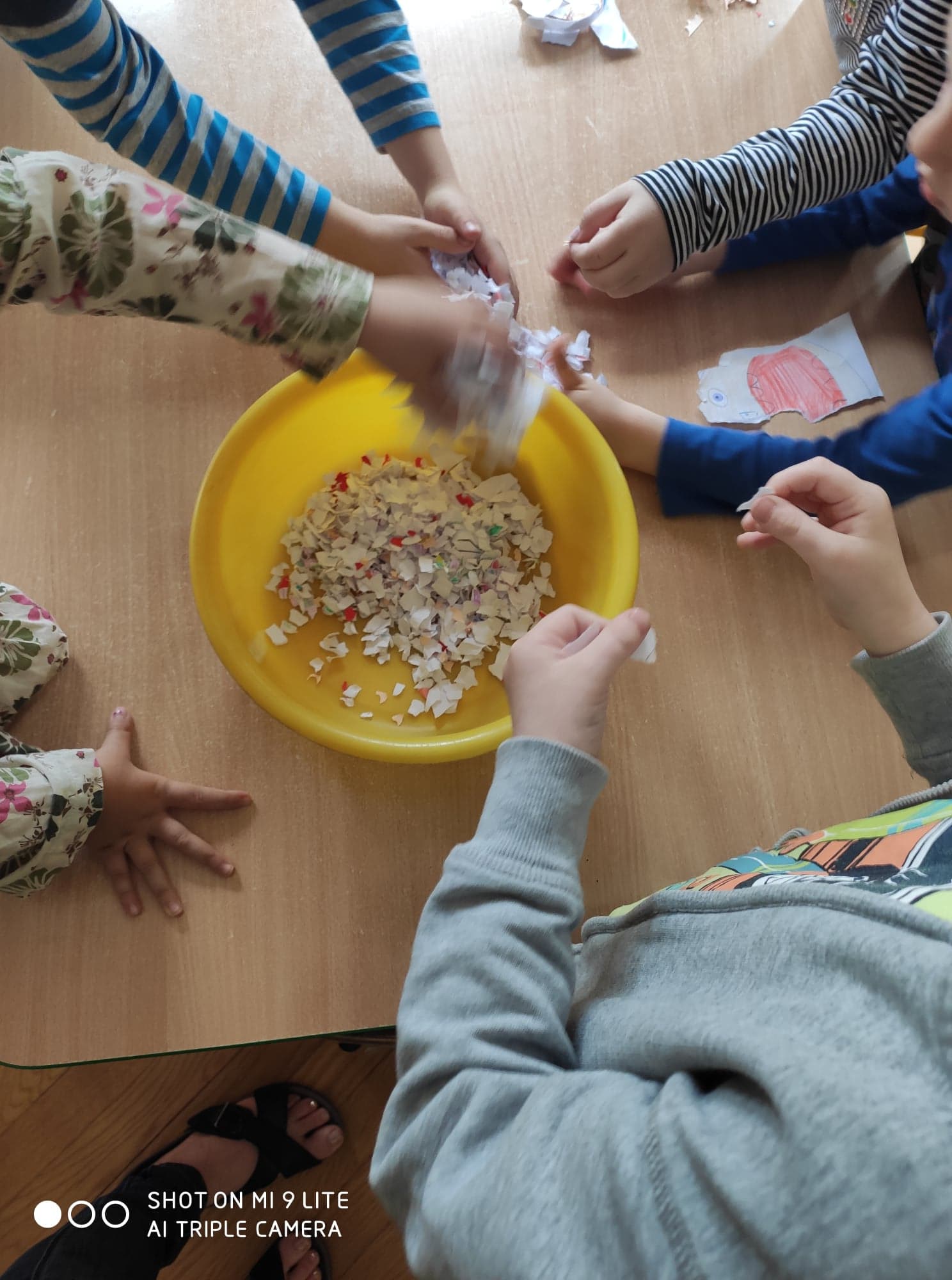 Przedszkolaki z grupy „Biedronki“ wzięły udział w warsztatach „Zaczytane przedszkolaki" we współpracy z Przedszkolem nr 9. "Biedronki" przygotowywały własnoręcznie papier czerpany, tworzyły pracę plastyczną do tekstu literackiego i nagrywały fragment utworu Juliana Tuwima na dyktafon.