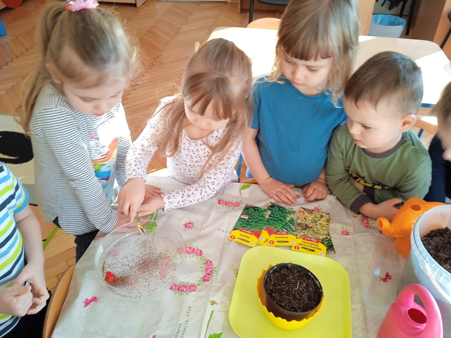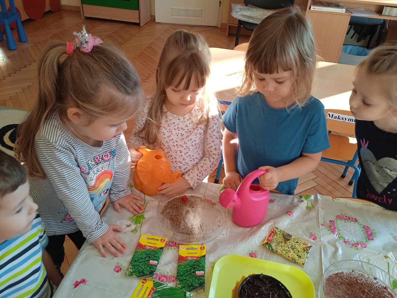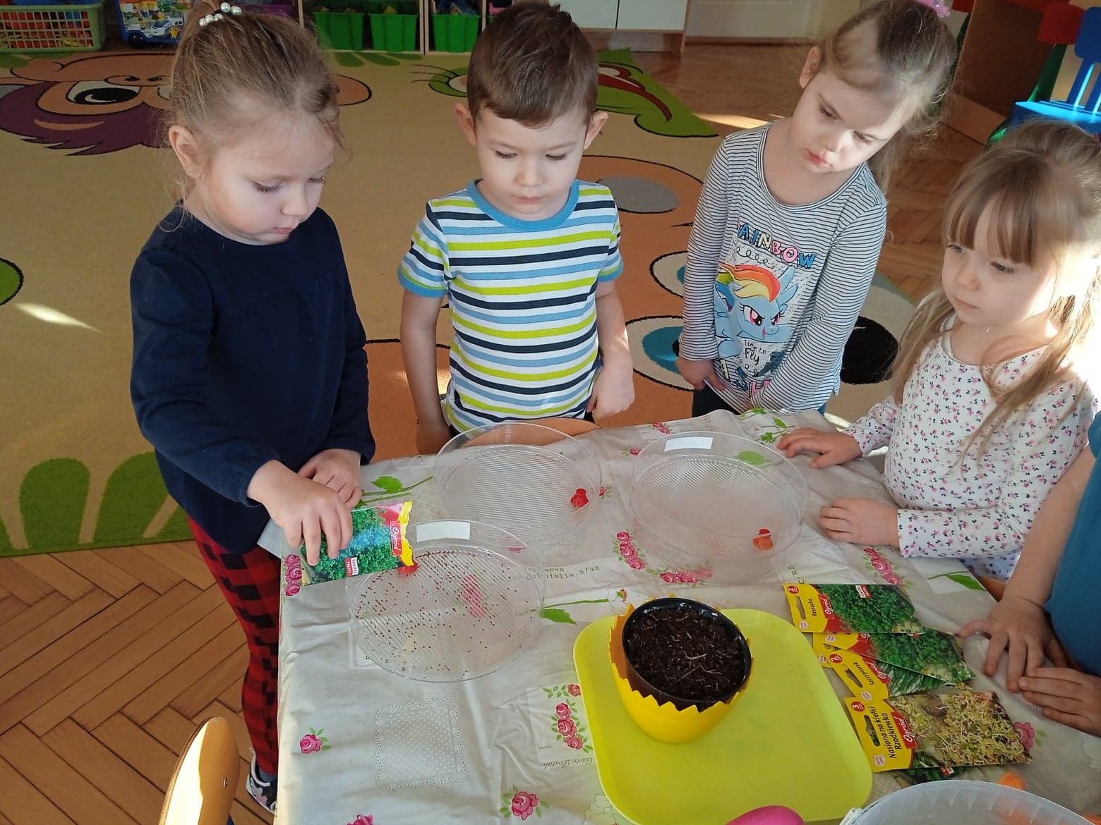 Przedszkolaki z grupy „Krasnale“ stworzyły w swojej sali zielony kącik. Posiały i posadziły do swojego ogródka różne rośliny. Dzięki temu mogą w praktyce poznawać cykl rozwojowy roślin: „Od nasiona do rośliny”. Celem zajęć było: poszerzanie wiadomości dzieci na temat niezbędnych warunków do rozwoju roślin, rozwijanie zainteresowań przyrodniczych, wzbogacenie wiadomości dotyczących sposobu hodowania wybranych roślin: rzeżuchy, pietruszki, cebuli, owsa.