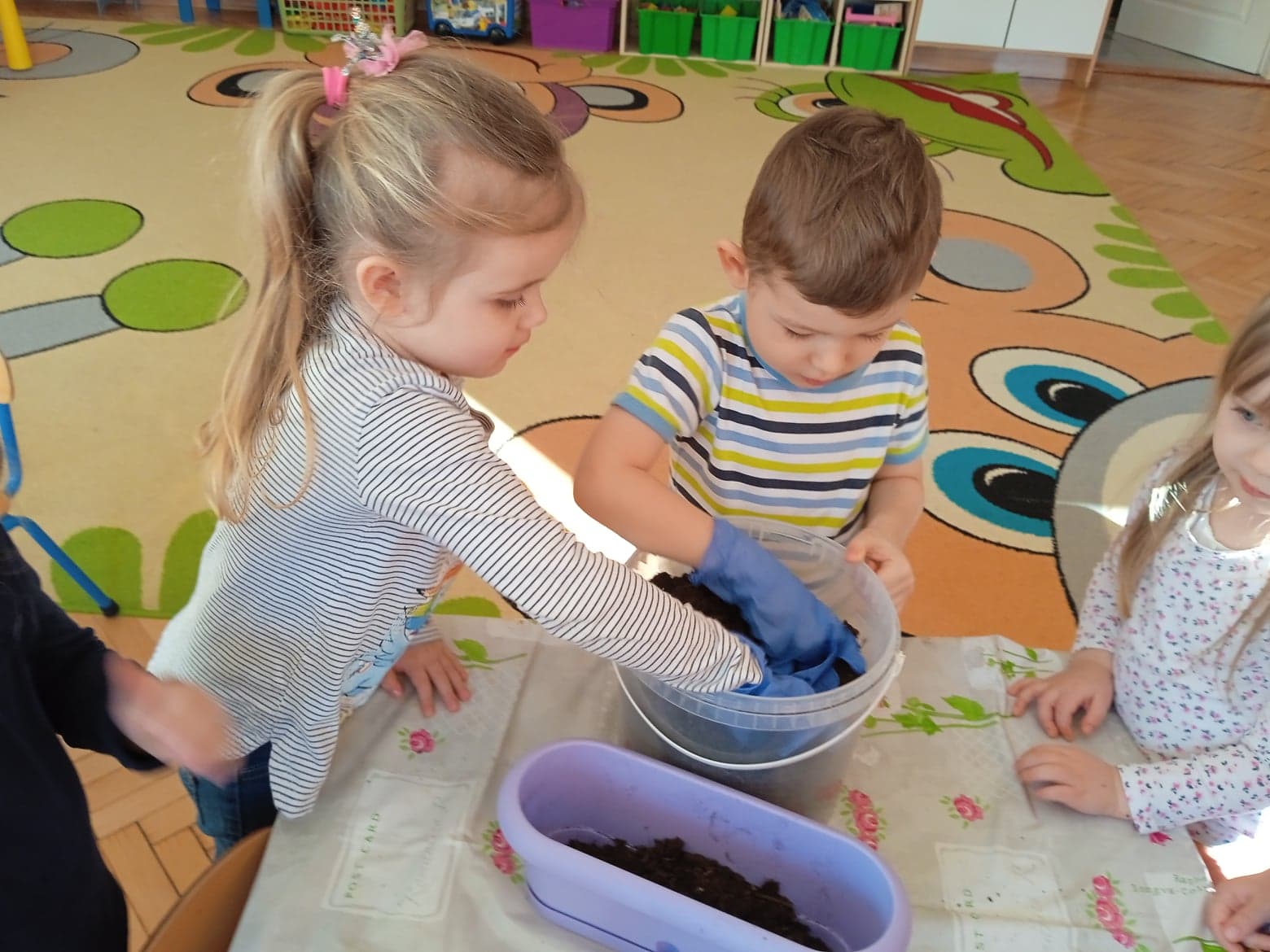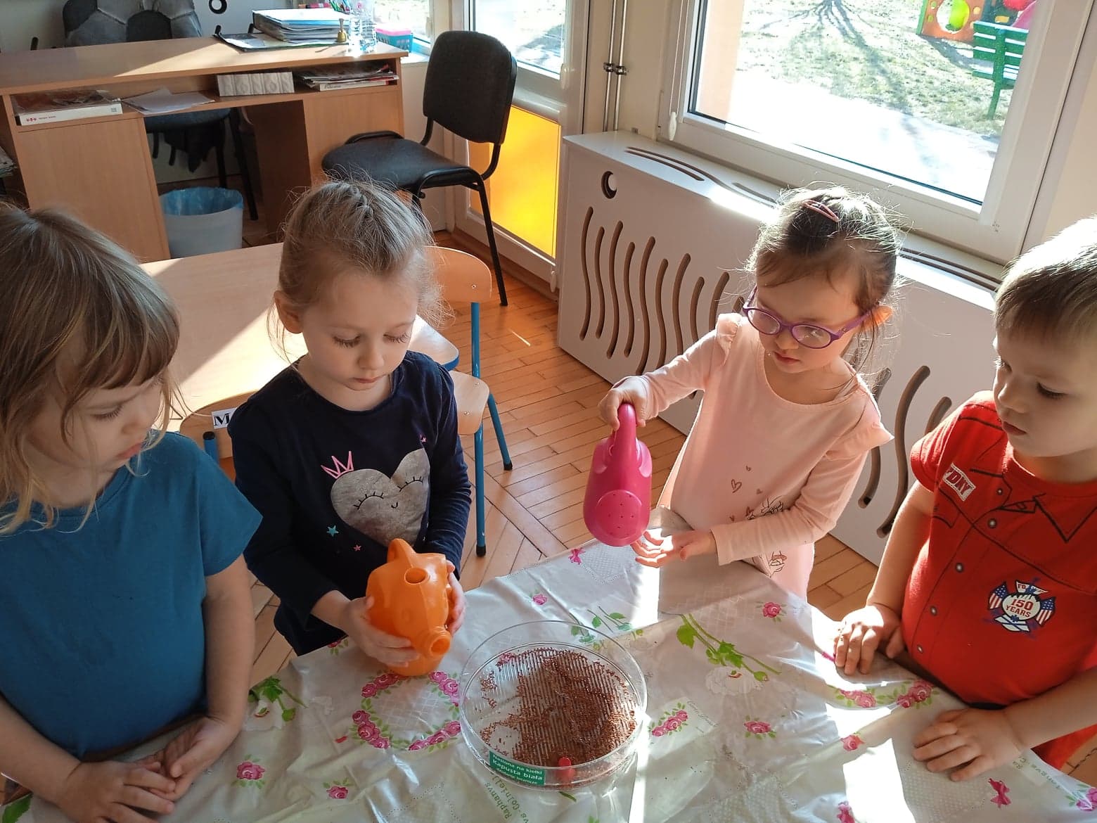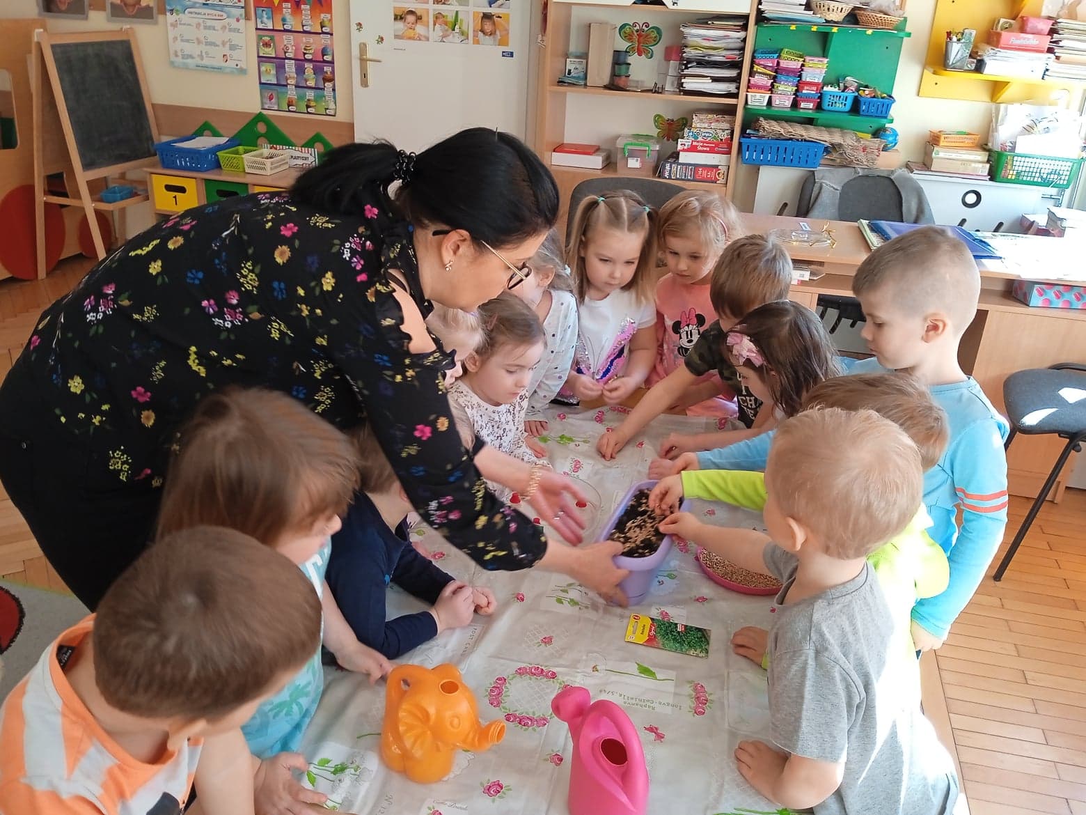 Przedszkolaki z grupy „Krasnale“ stworzyły w swojej sali zielony kącik. Posiały i posadziły do swojego ogródka różne rośliny. Dzięki temu mogą w praktyce poznawać cykl rozwojowy roślin: „Od nasiona do rośliny”. Celem zajęć było: poszerzanie wiadomości dzieci na temat niezbędnych warunków do rozwoju roślin, rozwijanie zainteresowań przyrodniczych, wzbogacenie wiadomości dotyczących sposobu hodowania wybranych roślin: rzeżuchy, pietruszki, cebuli, owsa.