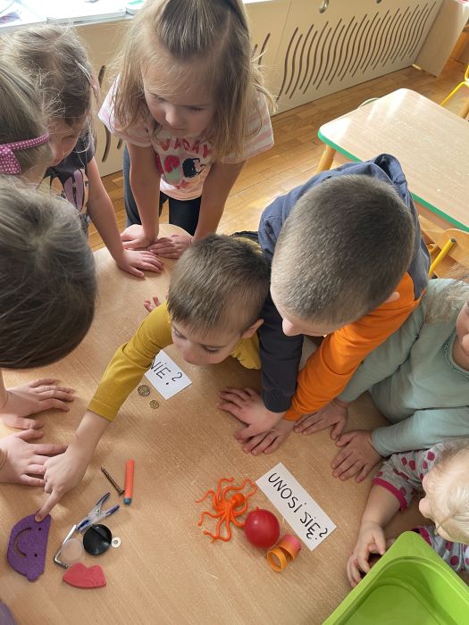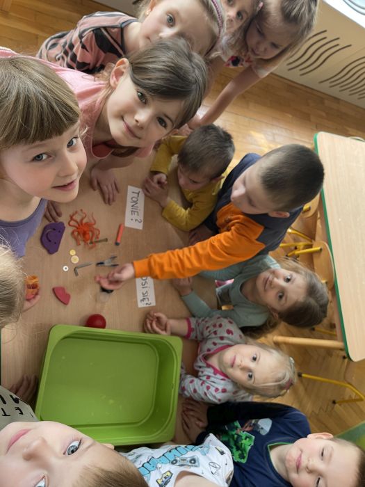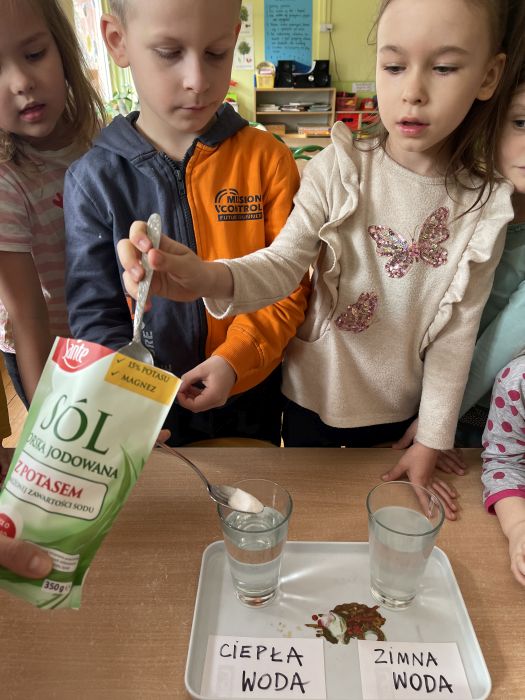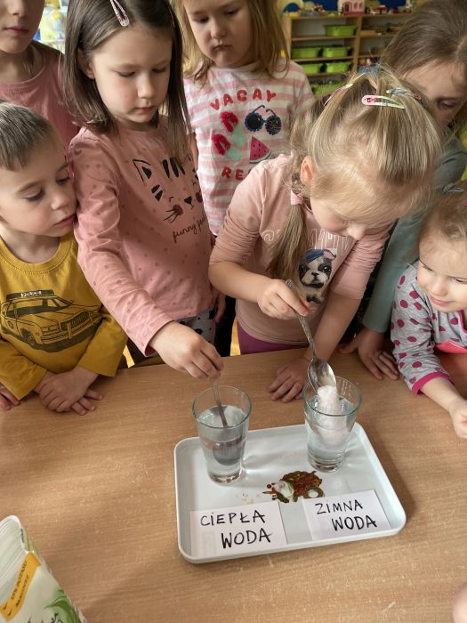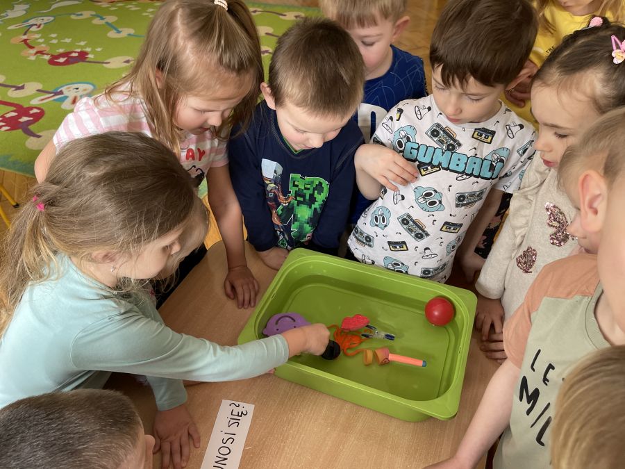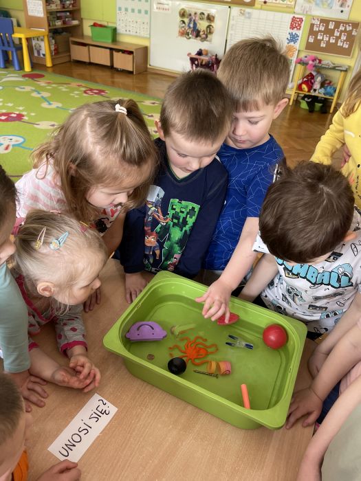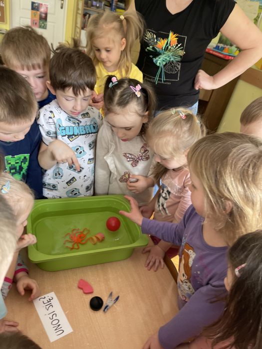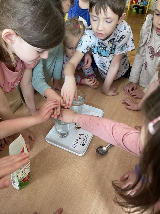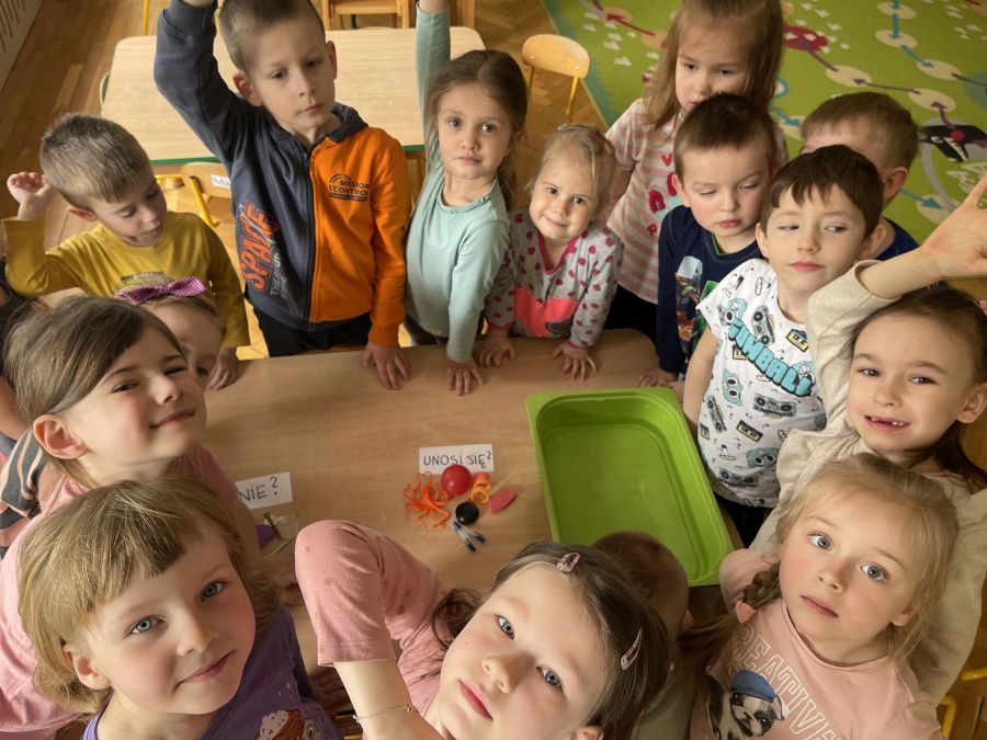Dzieci z grupy Biedronki poprzez serię eksperymentów, poznawały właściwości wody. Z zapałem badały sposoby na wyrównywanie temperatury wody, próbowały dowiedzieć się od czego zależy rozpuszczalność soli oraz przewidzieć, który przedmiot będzie się unosił na wodzie, a który utonie. Kwiecień upłynął nie tylko na doświadczeniach, doskonaleniu sprawności rąk i głów, rozwijaniu słuchu muzycznego i ale przede wszystkim na zabawie i zacieśnianiu więzi z koleżankami i kolegami w grupie.