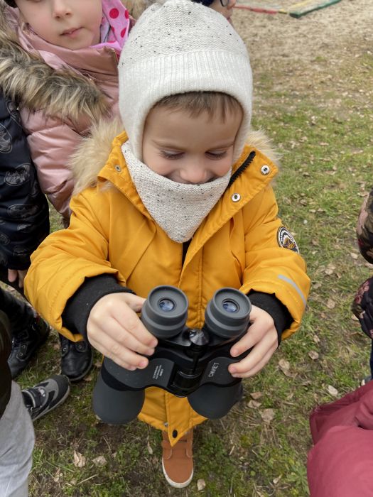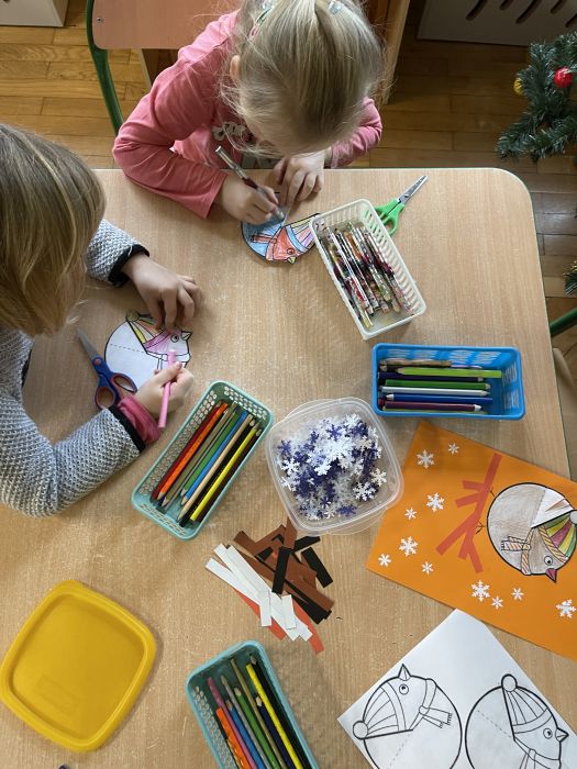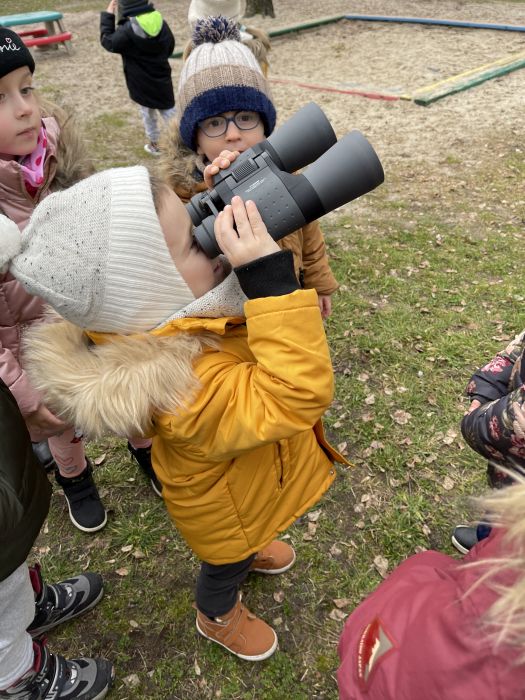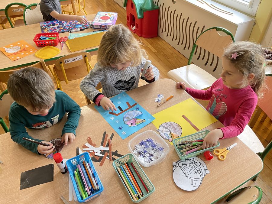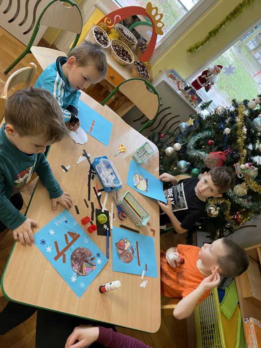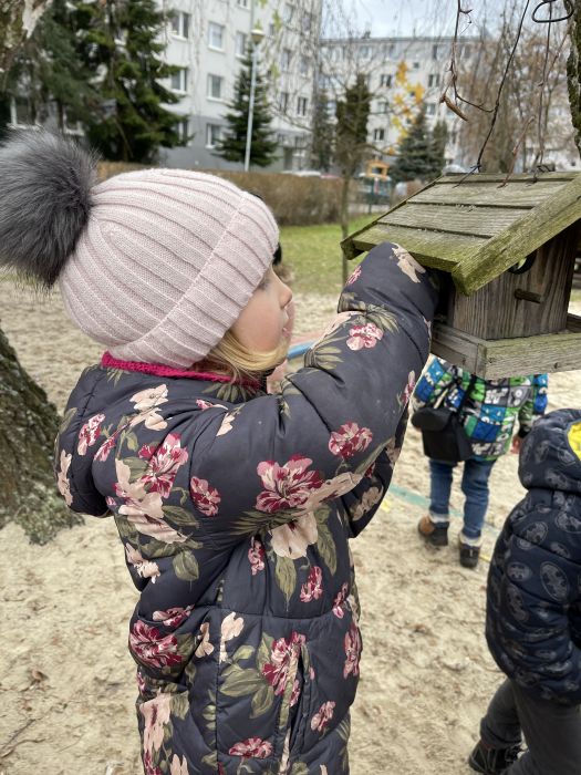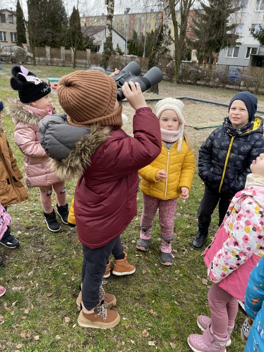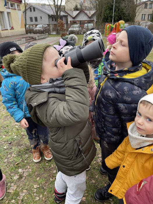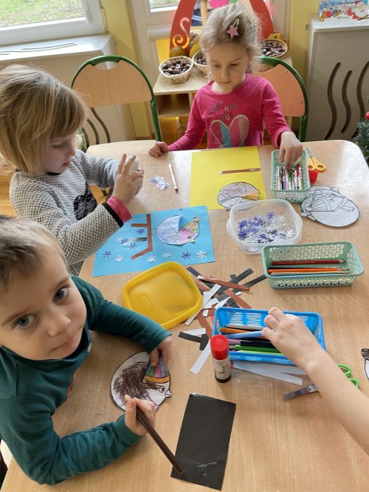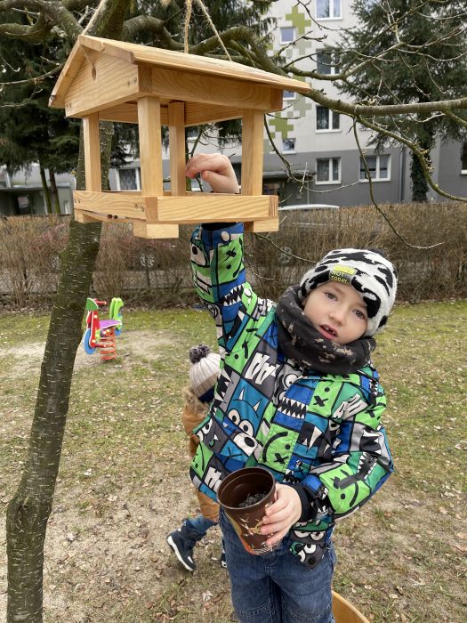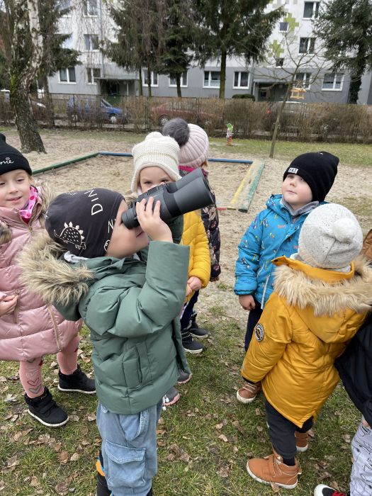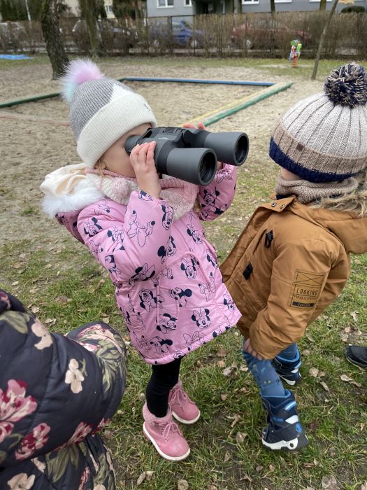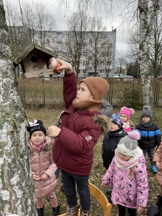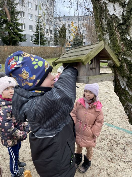 Dzieci z grupy Biedronki włączyły się w akcję dokarmiania ptaków. Korzystając ze sprzyjającej pogody odwiedziliśmy przedszkolne karmniki, obserwowaliśmy przelatujące ptaki i te, które siadały na gałęziach drzew - dużą atrakcją była lornetka. W sali czytaliśmy i oglądaliśmy książki i albumy o ptakach. Biedronki chętnie poznawały nazwy ptaków zimujący i tych, które opuszczają nasz kraj na czas zimy, uczyły się czym powinno się dokarmiać ptaki i jak różne karmniki i domki można dla ptaków zbudować dbając o nie podczas zimnych dni. Na koniec dnia Biedroneczki wykonały pracę plastyczną przedstawiającą ptaszka na gałęzi. Teraz czekamy na śnieg, by wypatrywać śladów ptasich łapek na białym puchu.