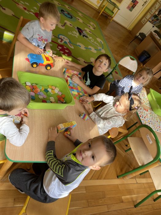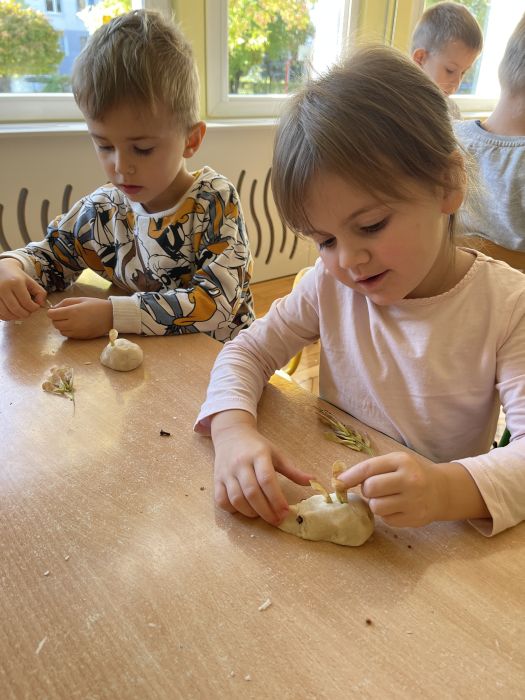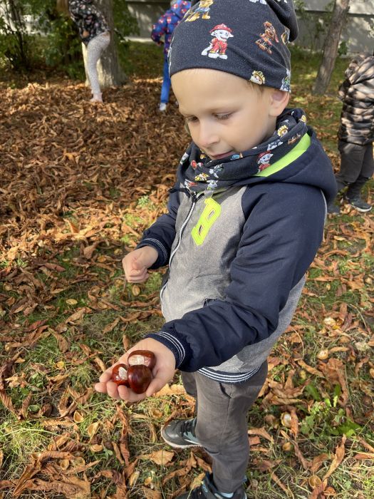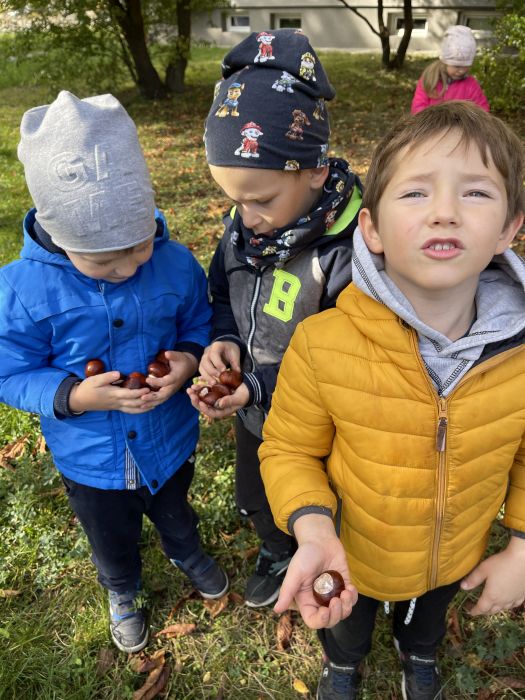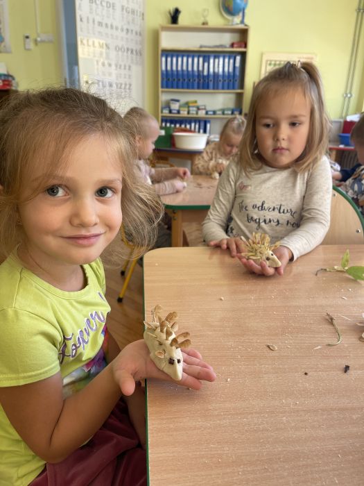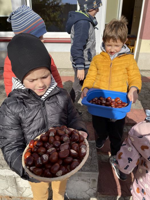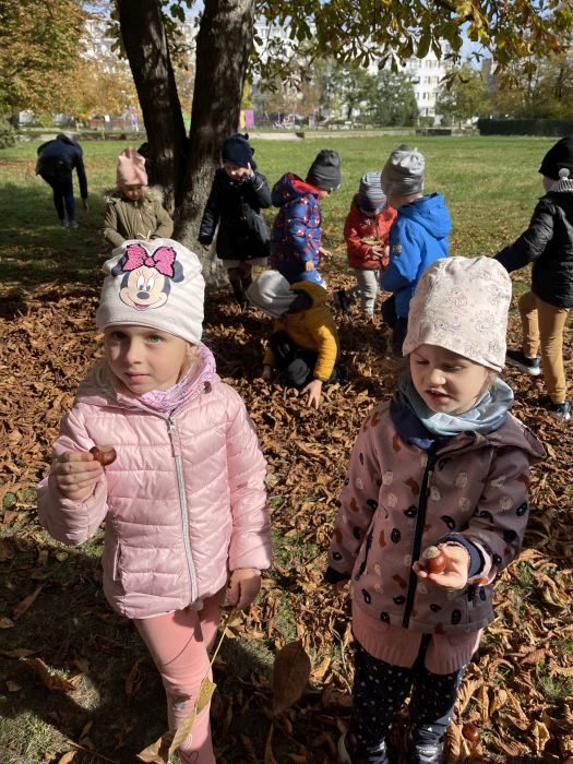 Dzieci z grupy Biedronki aktywnie wykorzystały październikowe dni nie tylko podczas zabaw w ogrodzie, ale także zbierając dary jesieni do kącika przyrody. Zebrane klonowe noski posłużyły do wykonania jeżyków z masy solnej. Kasztany przydały się do zajęć matematycznych z przeliczania i sortowania. Piękne jesienne liście ozdobiły salę. W październiku Biedroneczki poznawały samogłoski oraz uczyły się opisywać ilustracje i układać historyjki obrazkowe.