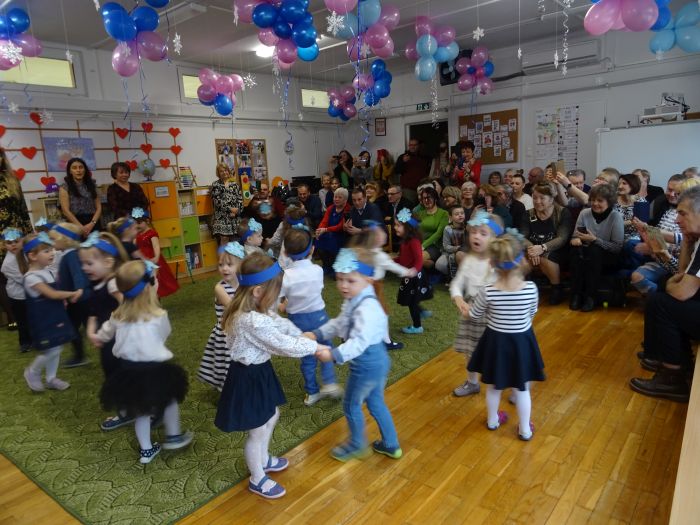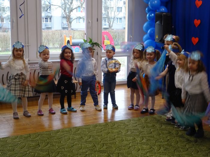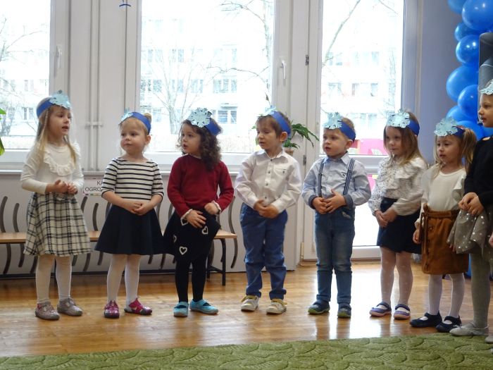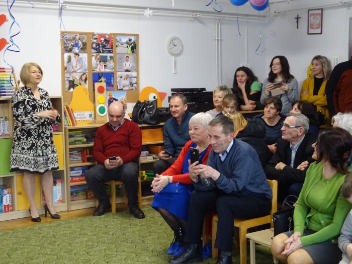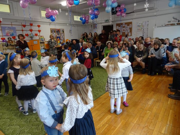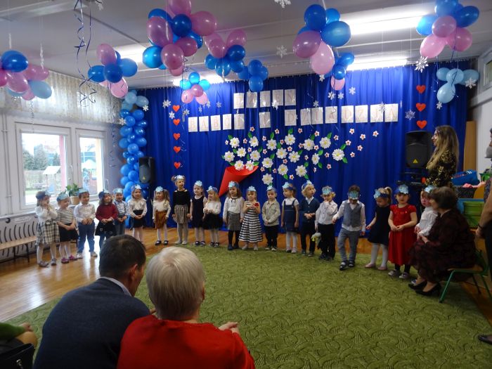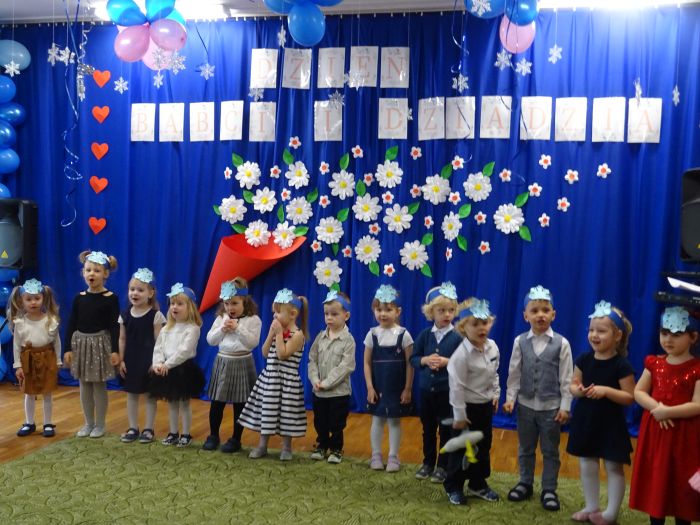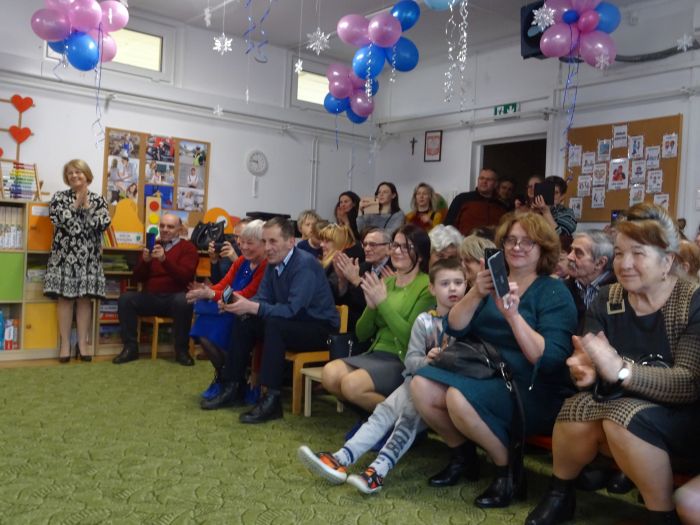 Dnia 14 lutego dzieci z najmłodszej grupy wiekowej wzięły udział w uroczystości na cześć swoich ukochanych babć i dziadziów. Podczas wzruszającej uroczystości przedszkolaki zaprezentowały program artystyczny, na który składały się wiersze, piosenki, instrumentacja utworów oraz tańce w parach. Nie zabrakło też samodzielnego pląsu wraz z piosenką zaśpiewaną prosto z serca dla Babci i Dziadzia pt. „Pięknie dziękujemy“. W sali uniosło się również głośne „Sto lat“. Ten przygotowany przez przedszkolaków wyraz dziecięcej miłości był bardzo wzruszający. Zwieńczeniem uroczystości było wręczenie przez dzieci własnoręcznie wykonanych laurek, dużo przytulania i całusów dla Babć i Dziadziów. Dzieci sprawiły wiele radości tak wspaniałym i ważnym gościom jakimi są Dziadkowie. To był dzień pełen wzruszeń, wrażeń i oczywiście uśmiechów.