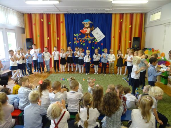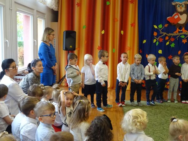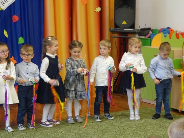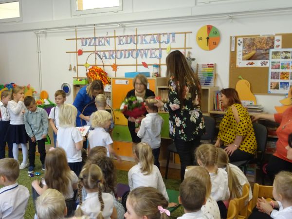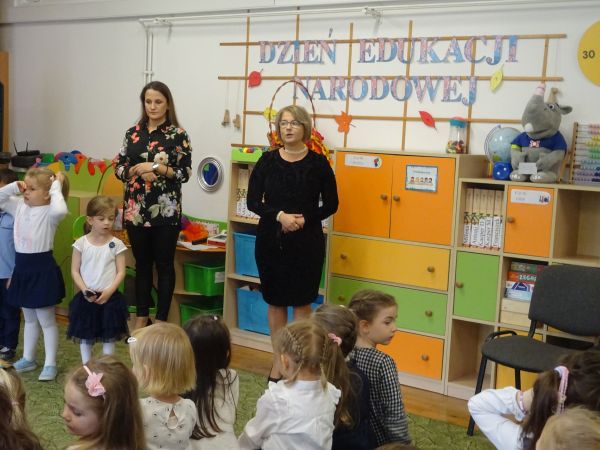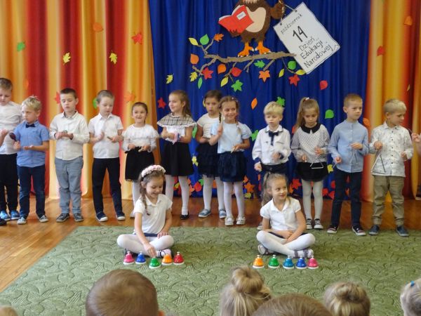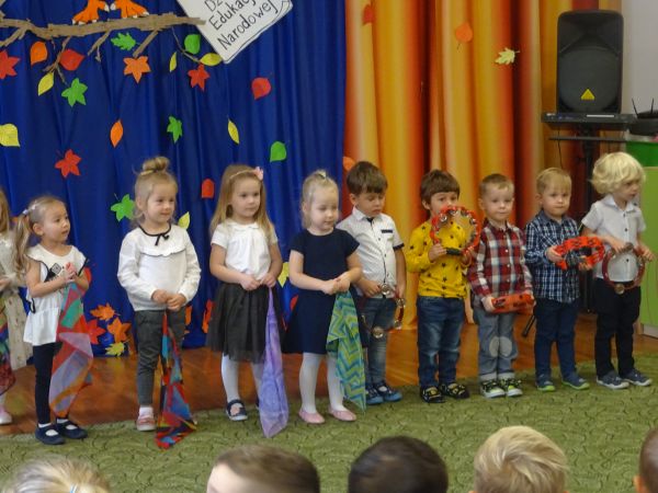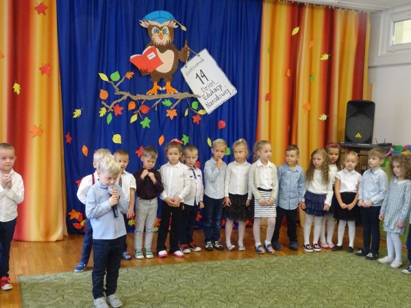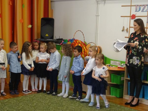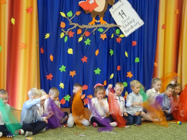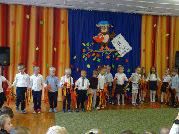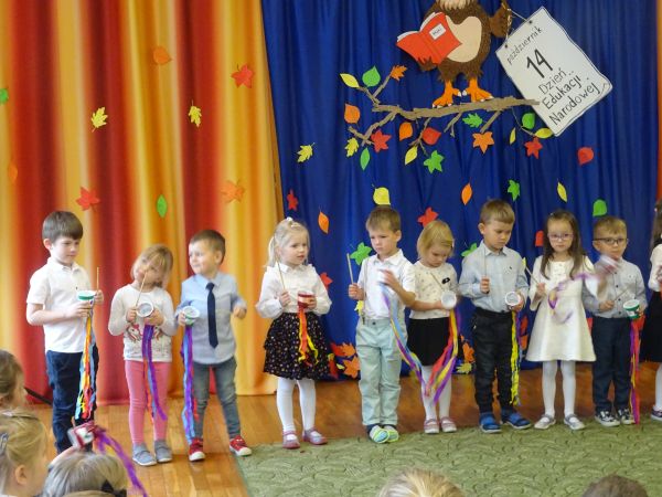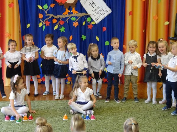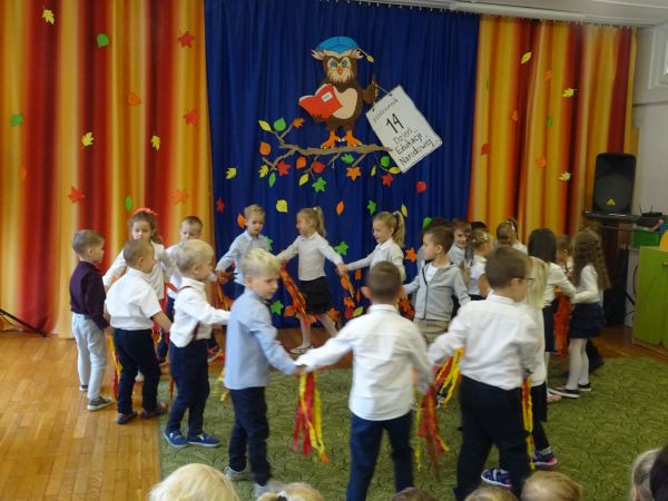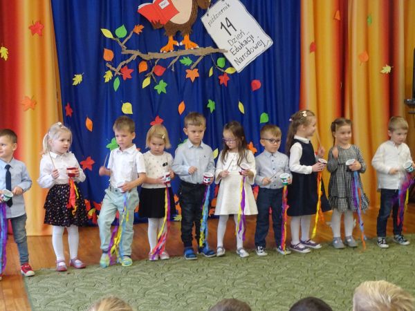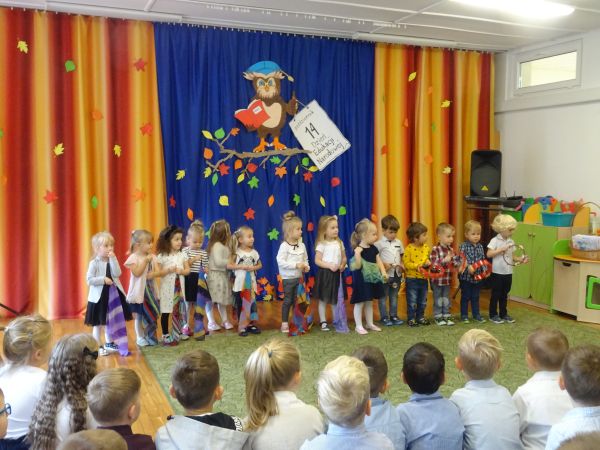 14.10. obchodzimy Dzień Edukacji Narodowej. Tego dnia dzieci z grupy „Motylki“ zaprezentowały program artystyczny, by podziękować wszystkim pracownikom przedszkola i zaprosiły do udziału swoje koleżanki i kolegów z pozostałych grup. Bo w przedszkolu 14 październik jest tylko potocznie nazywany Dniem Nauczyciela, to święto wszystkich tych, którzy oddają całe swoje serce, aby dzieciom w przedszkolu było naprawdę dobrze. Świętuje więc Pani intendentka, Panie kucharki, Panie woźne, Pan konserwator. Bez tych wszystkich osób nauczyciel w przedszkolu nie mógłby wykonywać swoich obowiązków na najwyższym poziomie. Były wiersze, tańce, piosenki, a także życzenia i laurki dla wszystkich pracowników przedszkola. Wyjątkowy, jesienny dzień! Życzenia złożone przez Panią Dyrektor wlały w serca pracowników przedszkola dużo radości i dodały sił do podejmowania wyzwań, jakie czekają każdego dnia. Dziękujemy za każde dobre słowo i życzenia składane nam tego dnia.
