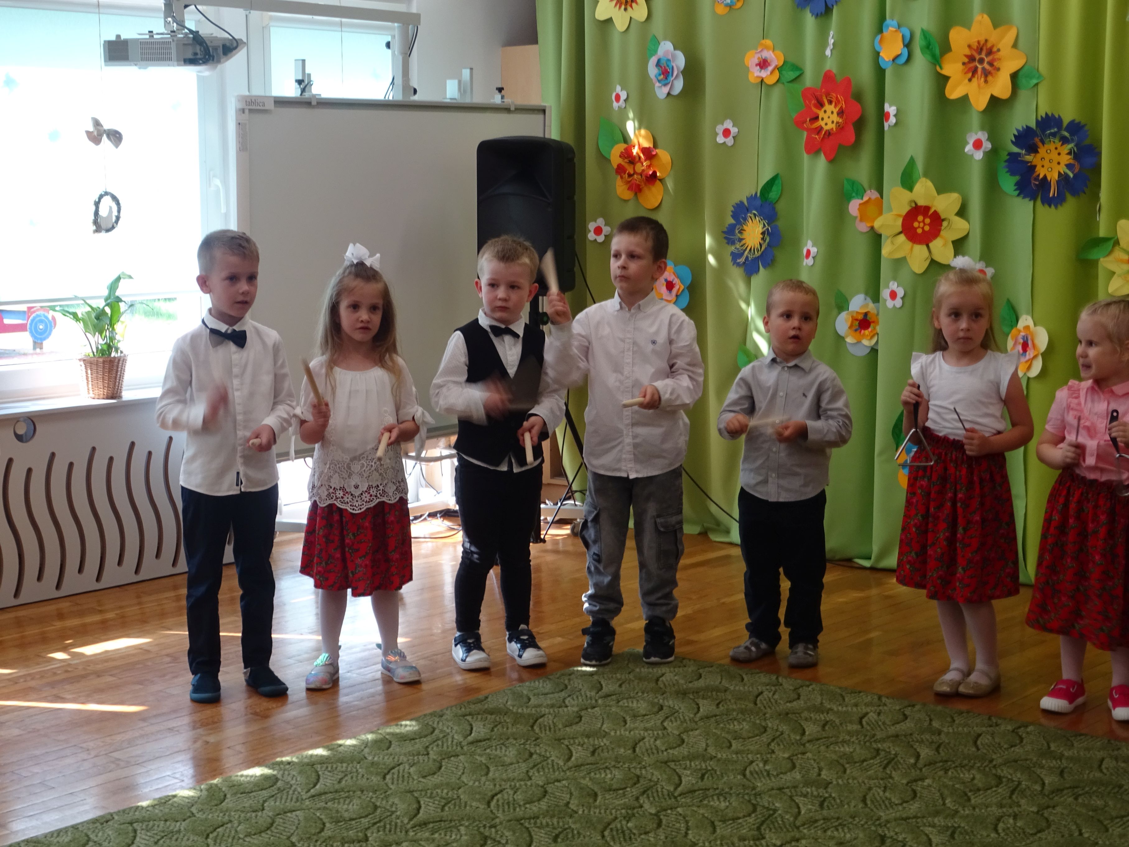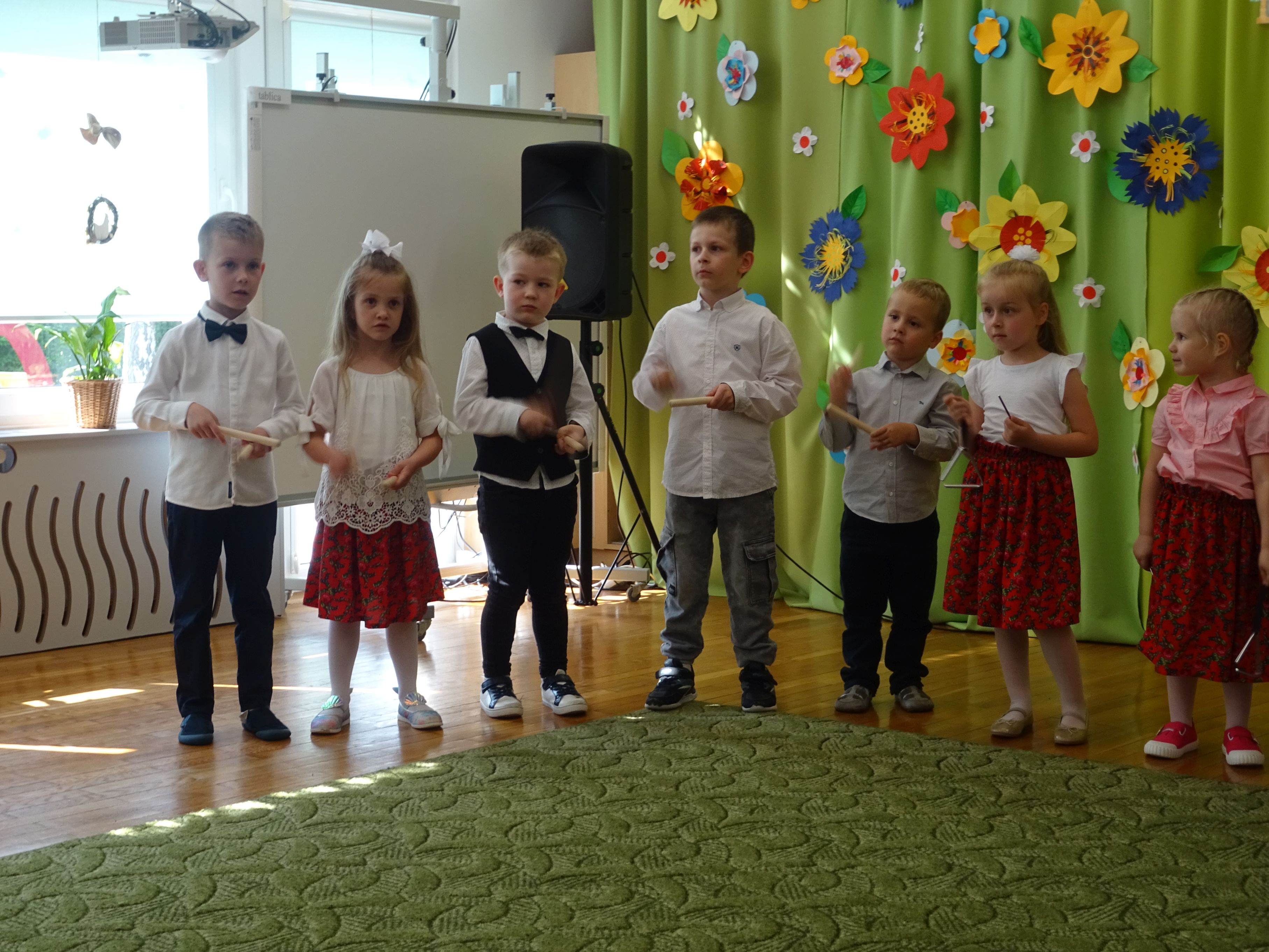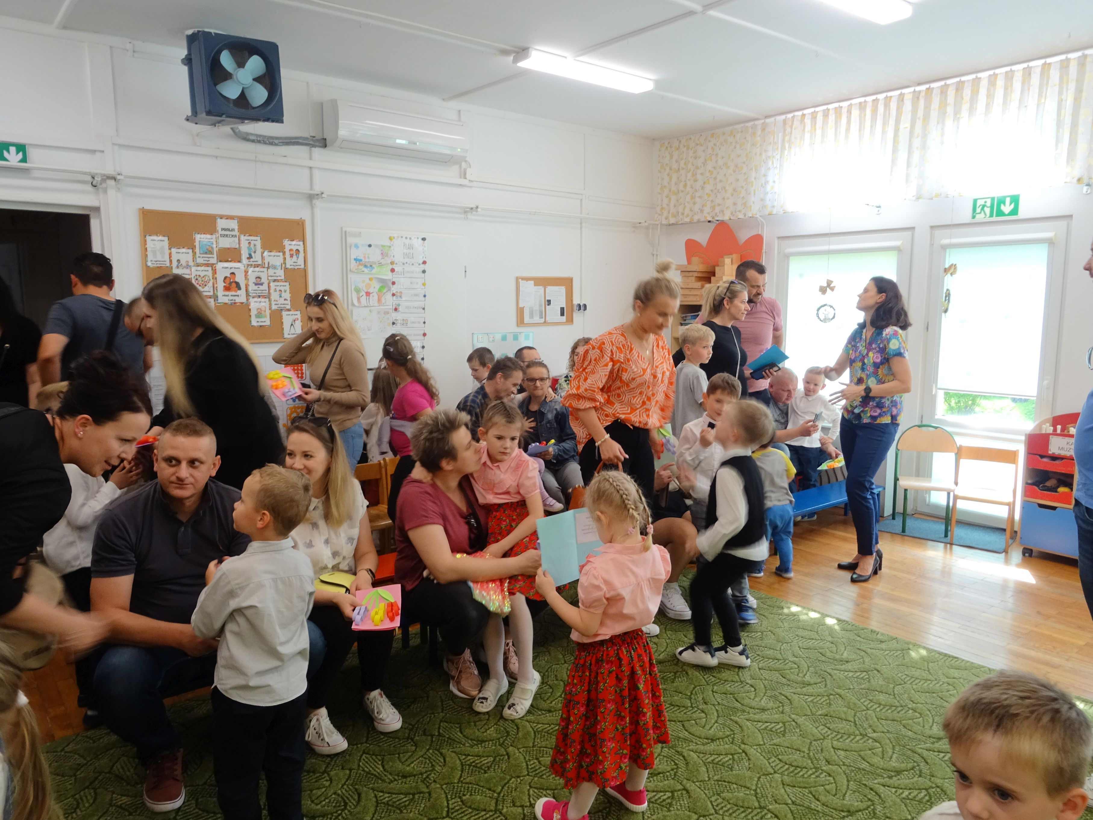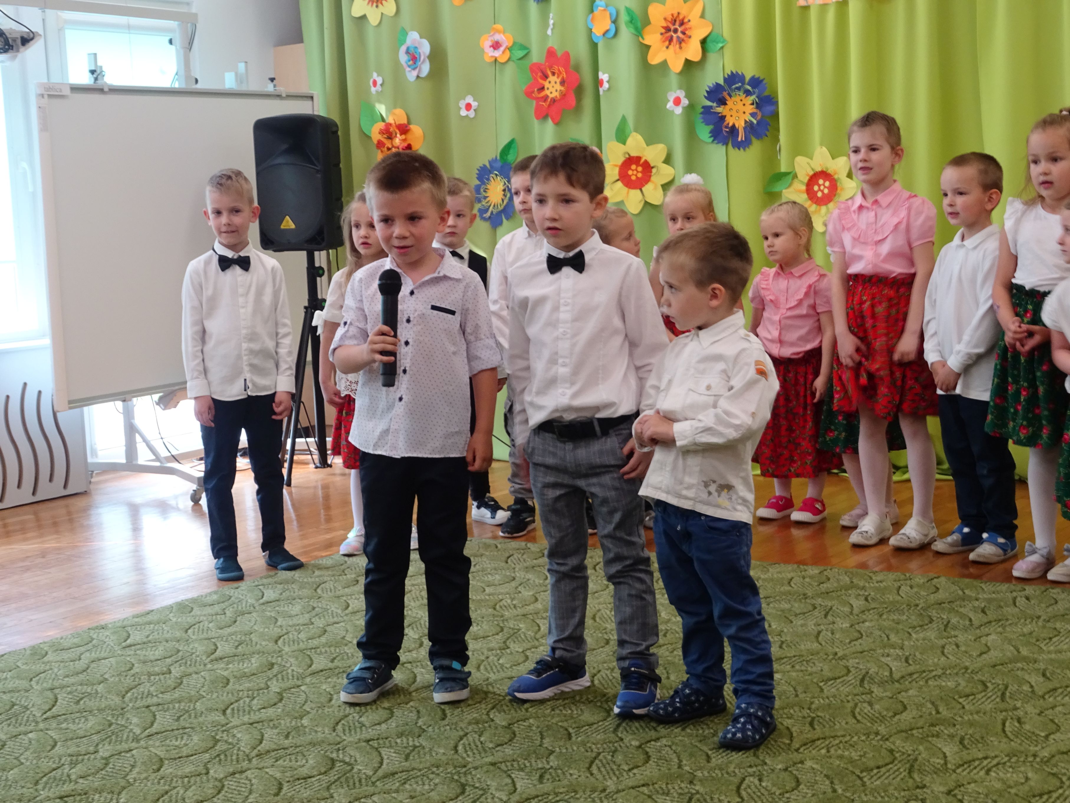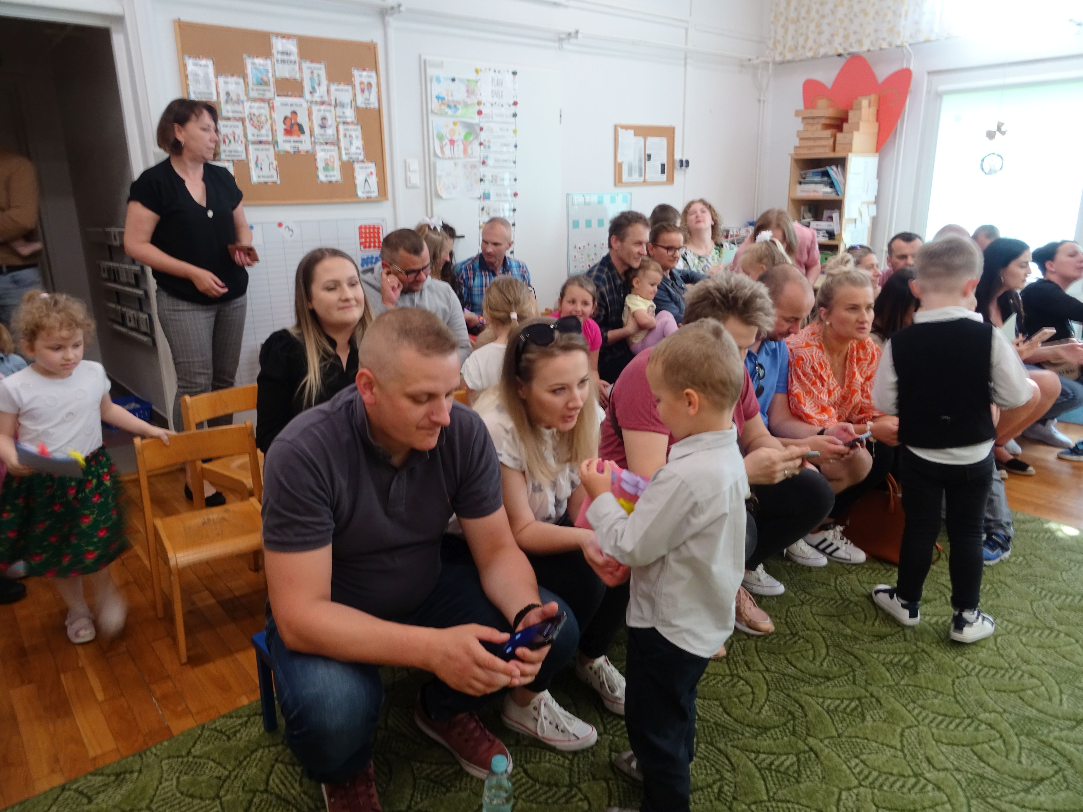 24.05.2023 r. dzieci z grupy „Biedronki” zaprezentowały swoim kochanym rodzicom program artystyczny z okazji Dnia Mamy i Taty. Z wielkim zaangażowaniem recytowały wiersze, śpiewały piosenki, zachwycały tańcem oraz grą na instrumentach muzycznych. Przedszkolaki pragnęły podziękować rodzicom za ich miłość, oddanie oraz trud włożony w ich wychowanie. Dzieci podarowały własnoręcznie wykonane laurki dla Mamy i Taty. Podczas ich wręczania całusom i uściskom nie było końca. Ten dzień na pewno długo pozostanie w naszej pamięci.