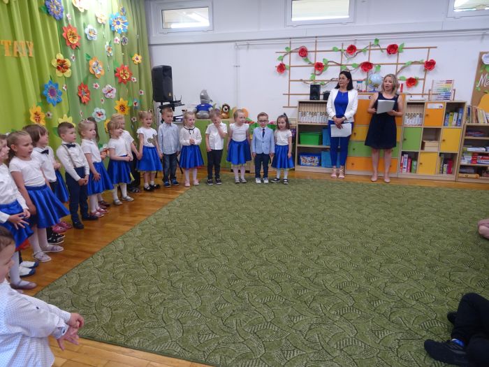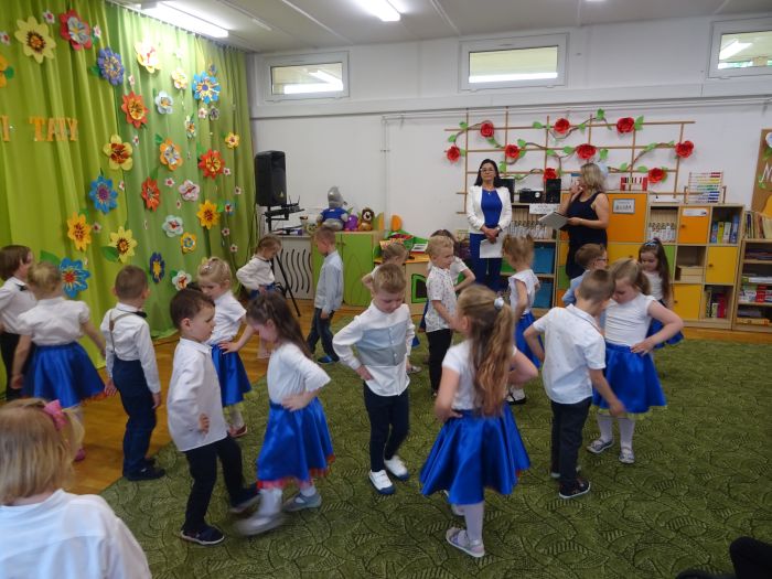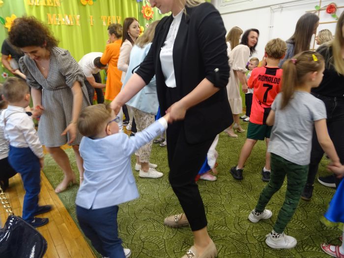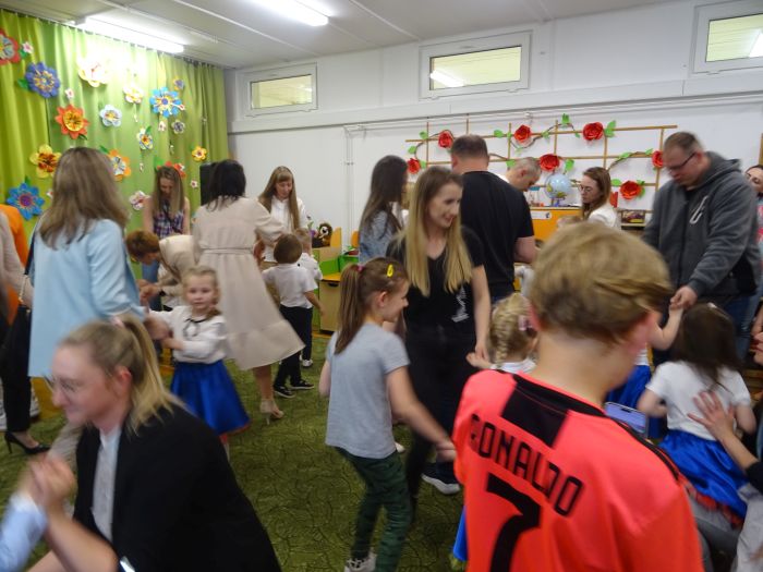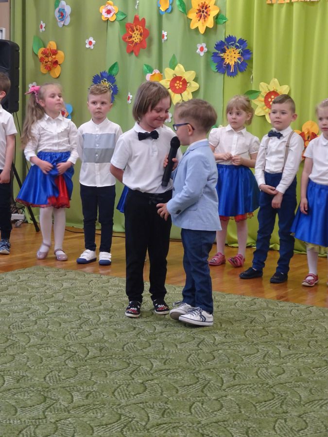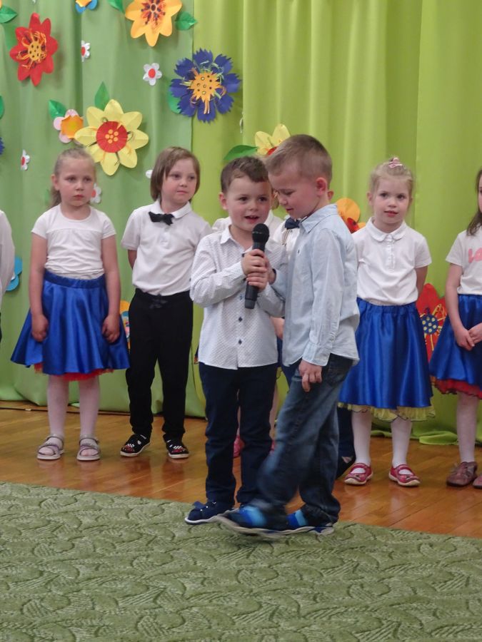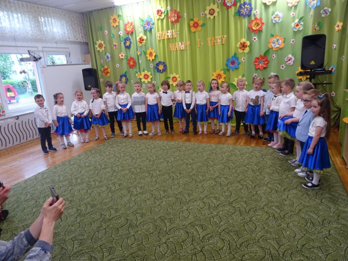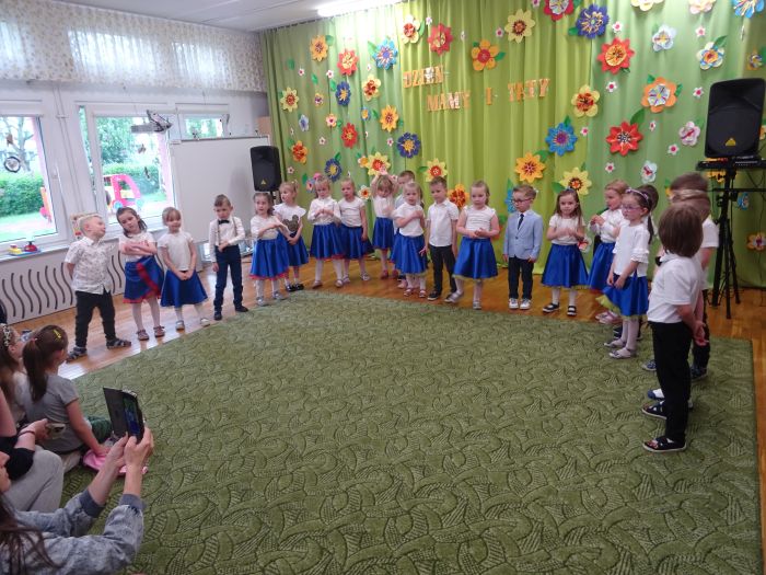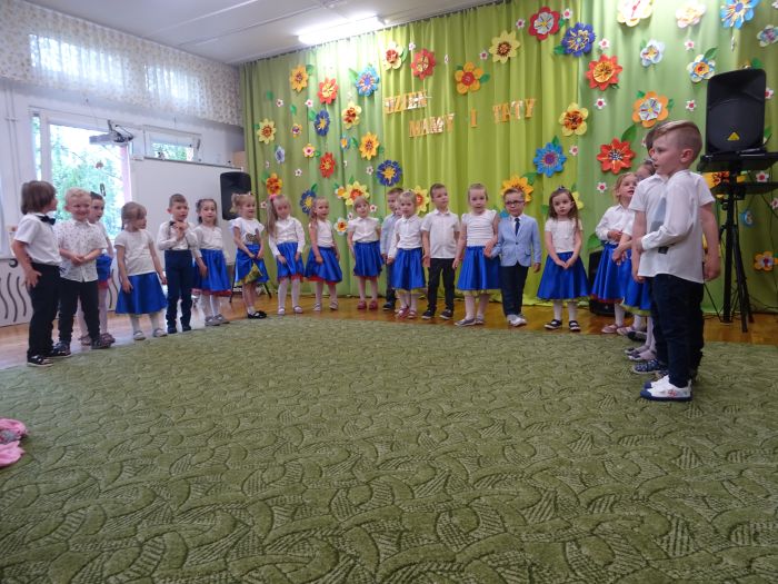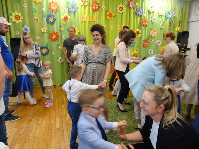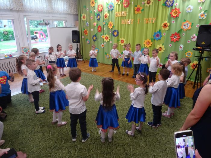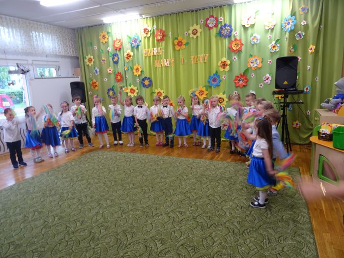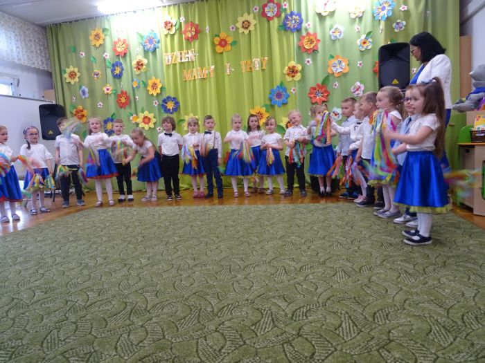 24.05.2023 r. odbyła się uroczystość z okazji ,,Dnia Mamy i Taty”, podczas której grupa ,,Misie” zaprezentowała program taneczno – wokalno - recytatorski. Dzieci przedstawiły program składający się z wierszy, piosenek, improwizacji ruchowej z wykorzystaniem kolorowych pomponów, gry na instrumentach muzycznych oraz aktywnego słuchania muzyki wg. B. Strauss. Po występie artystycznym przedszkolaki wręczyły swoim rodzicom wykonane własnoręcznie upominki. Nie zabrakło również wspólnej zabawy ruchowej z Rodzicami. Za swoje popisy ,,Misie” zostały nagrodzone gromkimi brawami. Takie uroczystości w gronie rodzinnym pozwalają umacniać rodzinne więzi, uczą miłości, szacunku, przywiązania, a dzieciom pozwalają zaprezentować zdobyte wcześniej umiejętności.