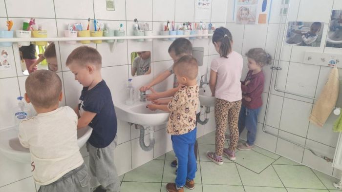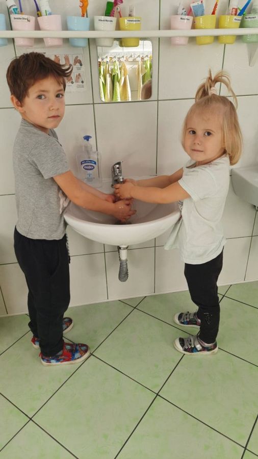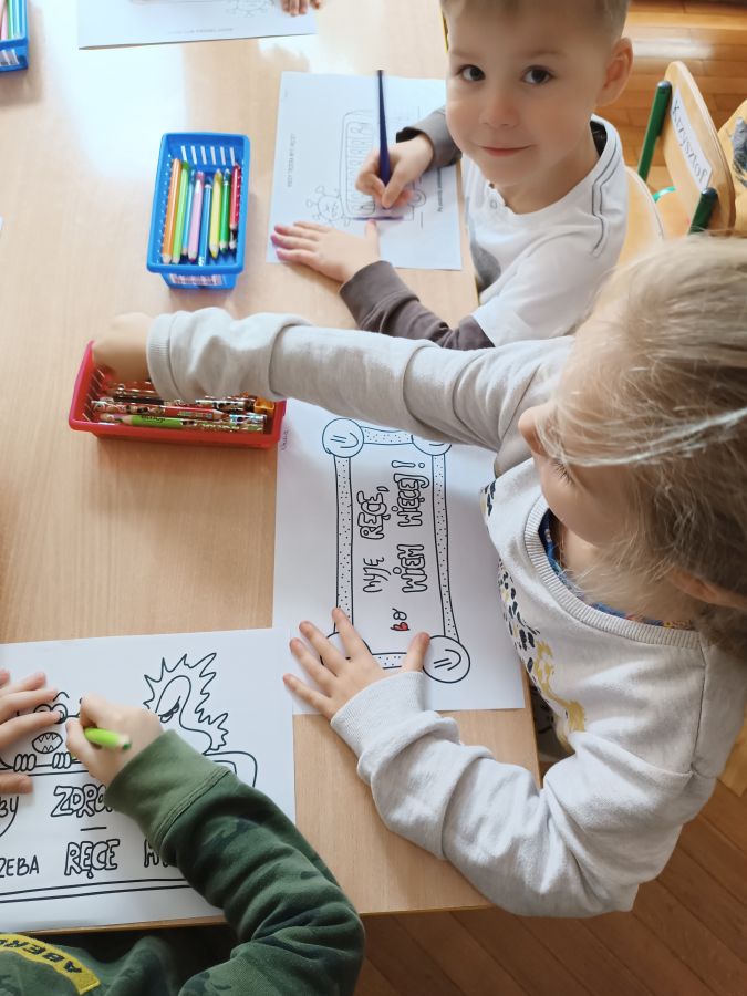 Podczas trwania kampanii nasi wychowankowie słuchali wierszy o higienie, został im zademonstrowany właściwy sposób mycia rąk do specjalnie przygotowanego wiersza na rzecz kampanii, aktywnie słuchali piosenek o higienie, wykonywali prace plastyczne, kolorowali obrazki przedstawiające sytuacje, po których należy umyć ręce oraz - korzystając z elementów kodowania – programowali „złe wirusy i bakterie”. Nasi przedszkolacy z pewnością wiedzą już, jak skutecznie zmywać z rąk zarazki i brud oraz wiedzą jak i dlaczego tak ważna jest higiena rąk, zwłaszcza w obecnym czasie.