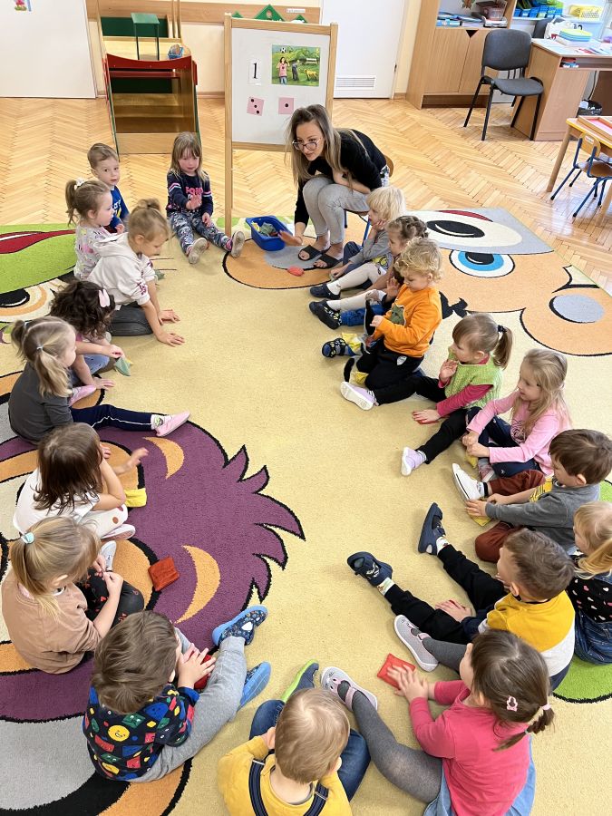 Dzieci z grupy "Krasnale" rozpoczęły cykl zajęć, podczas których w ciągu roku szkolnego będą poznawać cyfry Metodą Dobrego Startu. Celem metody oprócz zapoznania dzieci z daną cyfrą, jest rozwój czynności złożonych i koordynacji wzrokowo-słuchowo-ruchowej.