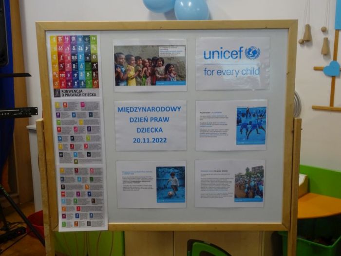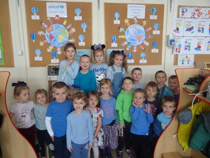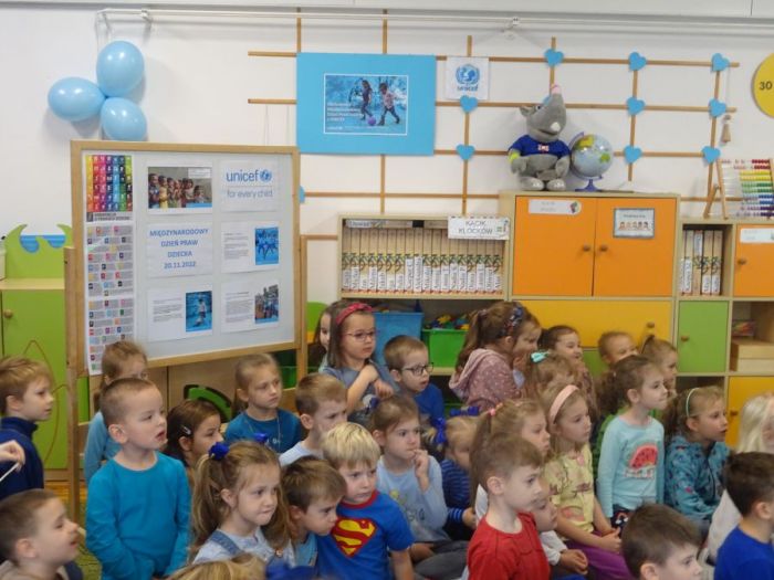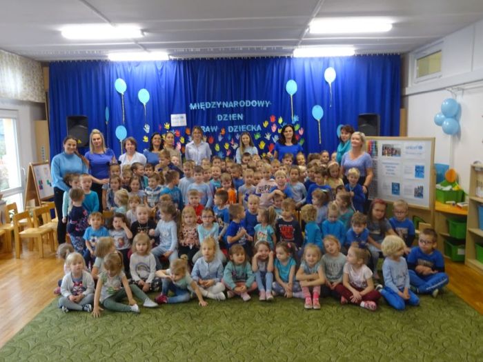 20 listopada to wyjątkowy dzień – rocznica uchwalenia Konwencji o prawach dziecka. Jest to moment, w którym uwaga wszystkich kierowana jest na dzieci i ich prawa. W poniedziałek 21 listopada w naszym przedszkolu obchodziliśmy Międzynarodowy Dzień Praw Dziecka pod patronatem UNICEF. Na początku uroczystej akademii przygotowanej przez grupę Biedronki, przedszkolaki wysłuchały wierszy i piosenek zapoznających dzieci z tym ważnym tematem. Następnie przedszkolaki oglądały prezentację multimedialną przygotowaną przez UNICEF pt. ,,Nasze prawa” i film pt. „Prawa i obowiązki”, oraz poznały „Konwencję o Prawach Dziecka”. We wszystkich grupach wiekowych zostały podjęte różnorodne działania mające na celu kształtowanie u dzieci świadomości własnych praw, uczenie praw innych ludzi oraz rozwijające umiejętność radzenia sobie w trudnych sytuacjach. Przedszkolaki tańczyły z niebieskimi balonami przy piosence ,,Wszystkie dzieci nasze są”, wykonywały zadania logiczne rozwijające ich wiedzę dotyczącą tego szczególnego święta, kolorowały obrazki przedstawiające dzieci różnych narodowości, uczestniczyły w zabawie ,,Wszyscy jesteśmy ważni pomimo różnic”, malowały niebieskie balony UNICEF, wykonywały plakaty na temat ,,Praw dziecka”. Uroczysty dzień zakończył wspólny Niebieski Pochód wszystkich przedszkolaków, które machając niebieskimi balonami dumnie przemaszerowały ulicami osiedla. Poprzez wyżej wspomniane działania przedszkolaki poznały przysługujące im prawa, a także obowiązki dorosłych wobec nich.