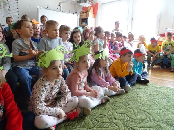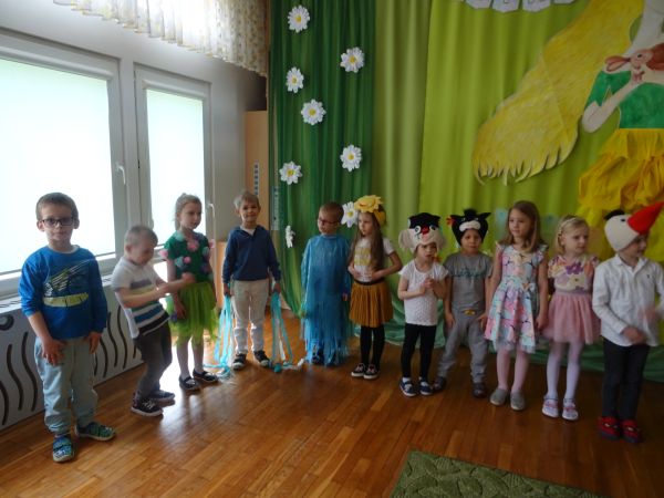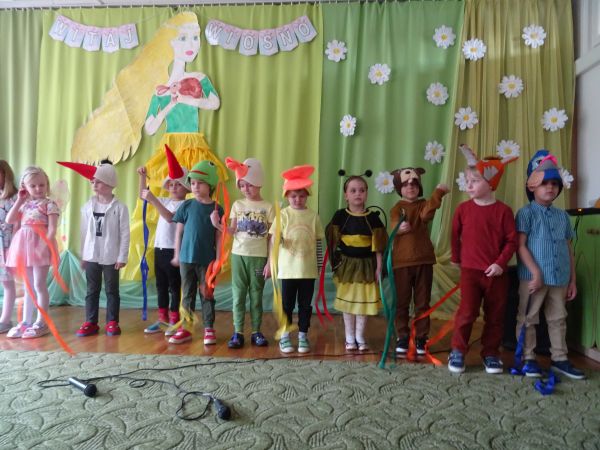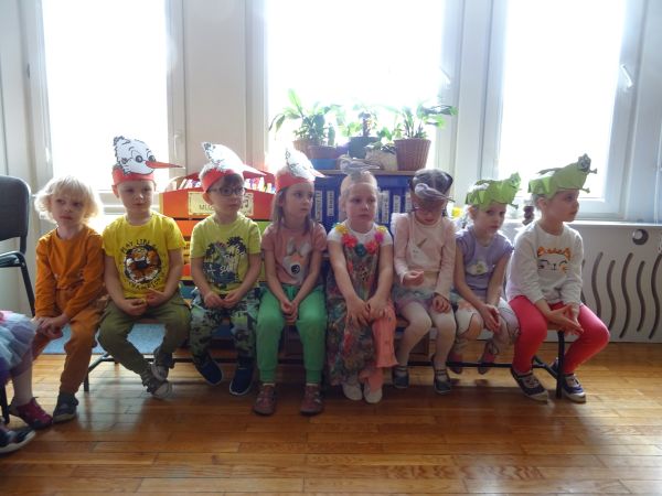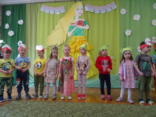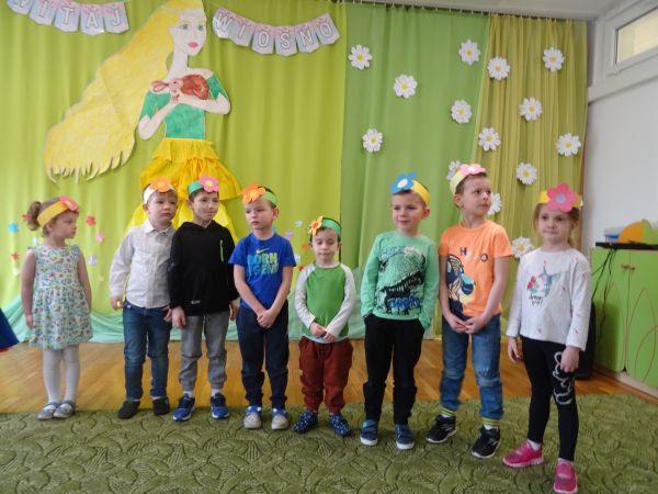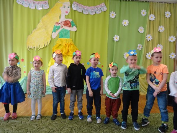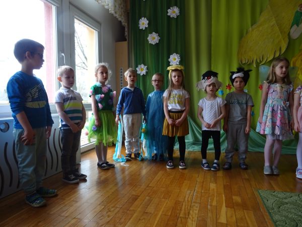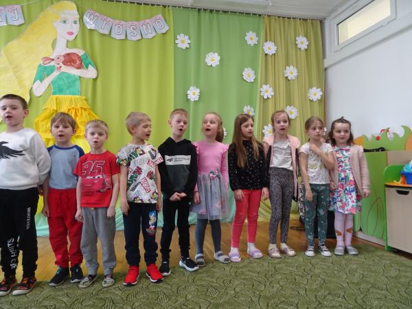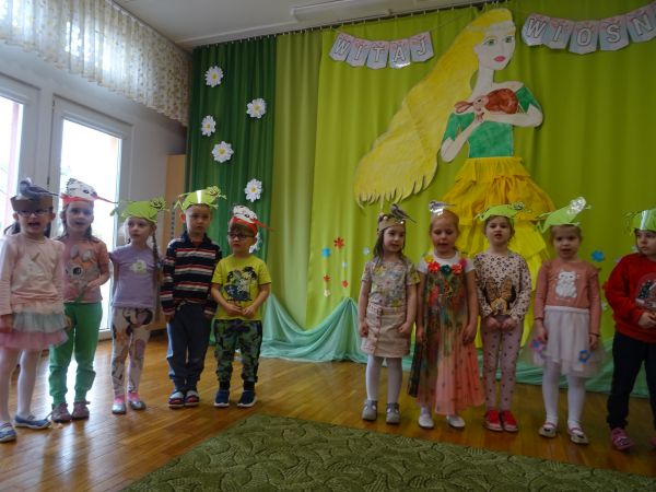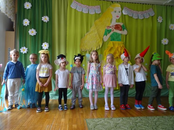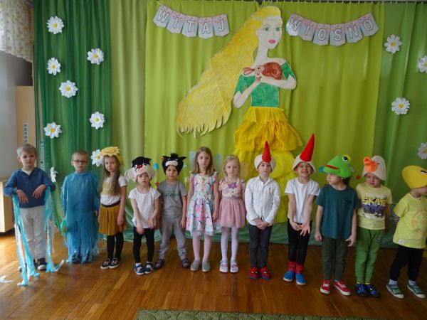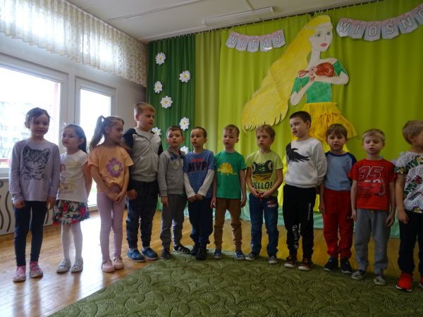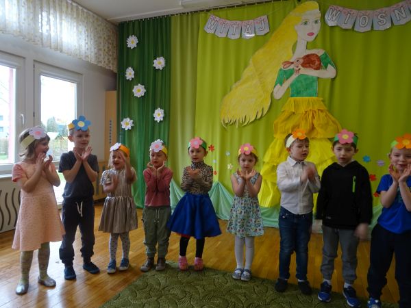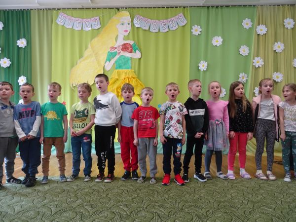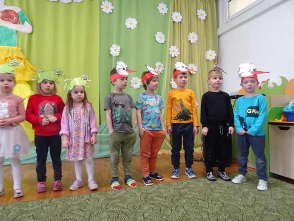 Co prawda z niewielkim opóźnieniem, ale jednak 28.03.2023 r. przedszkolaki z naszego przedszkola powitały Wiosnę. Najpierw dzieci z grupy „Motylki“ zaprezentowały krótki spektakl pt.: „Zwierzęta szukają wiosny“. Dzieci wcieliły się w role kotów, motyli, pszczoły, lisa, kaczuszek, niedźwiedzia, ptaków, bocianów i żaby, do których dołączyły słońce, wiatr i deszcz. Obecni byli również narratorzy. Wszyscy zajęci byli szukaniem Pani Wiosny, która przyszła ukwiecona, radosna. Na jej powitanie „Motylki“ wraz z koleżankami i kolegami z pozostałych grup odśpiewały radosną piosenkę. Po obejrzeniu występu „Motylków“ piosenki na powitanie Pani Wiosny zaśpiewały przedszkolaki z pozostałych grup. Z pewnością był to bardzo radosny dzień.