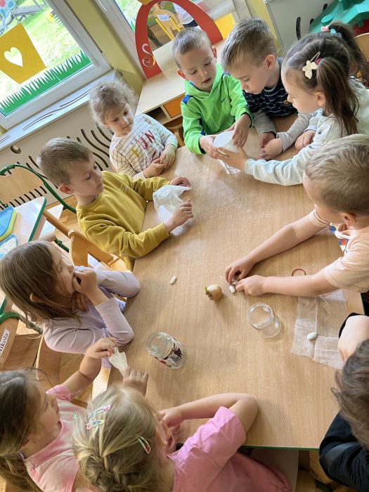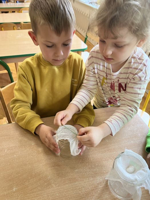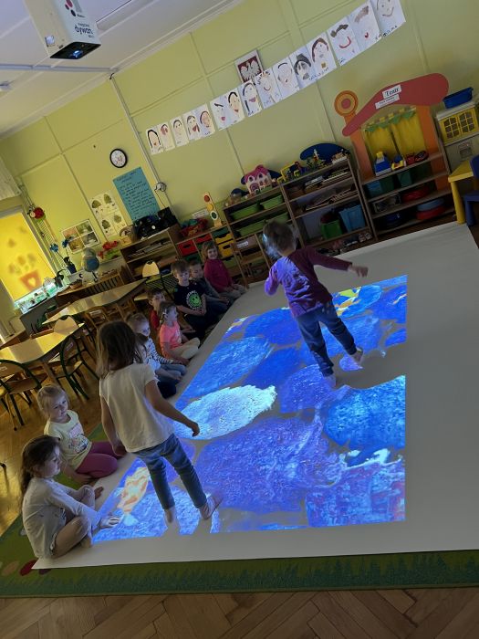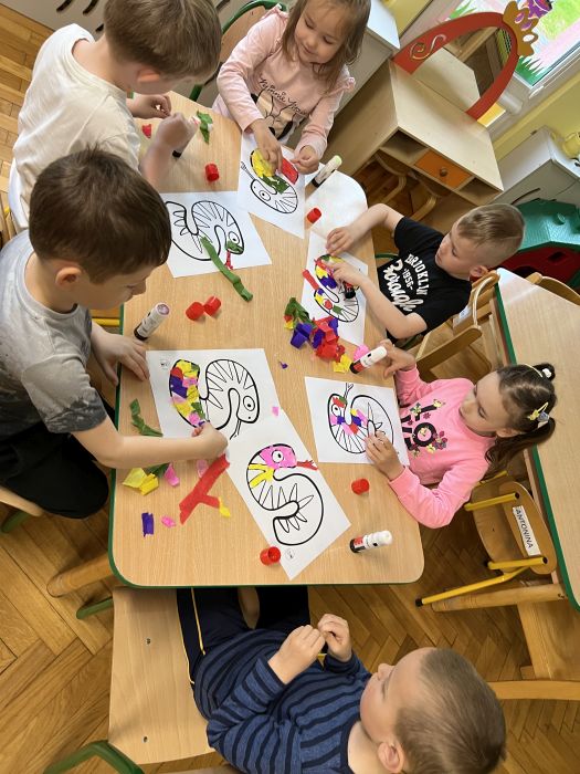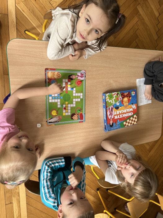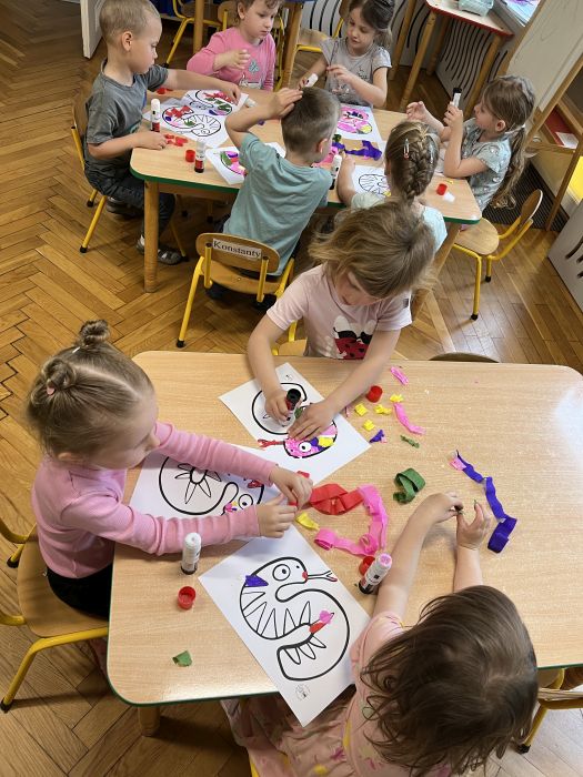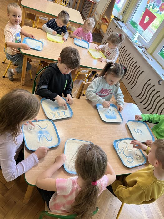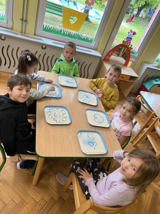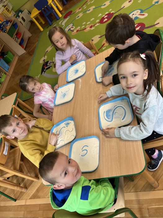 W maju Biedroneczki poznawały kolejne literki i cyferki. Poszukiwanie literki „S” okazało się sporym wyzwaniem, ale dzieci dzielnie się spisały i w gąszczu słów i wyrazów znalazły potrzebne elementy. Chętnie poznawały kształt litery pisząc ją na miseczce z kaszą, wyklejały dużego węża, ćwicząc swoje rączki – okazało się, że wąż po angielsku zaczyna się na „S”. W maju nie tylko uczyliśmy się literek, ale także poznawaliśmy tajniki przyrody. Zakładanie hodowli fasoli bardzo spodobało się dzieciom. Teraz czekamy, która fasolka pierwsza się ‘obudzi’. W czasie swobodnej zabawy wygrywają gry planszowe, rysowanie i… najnowsza atrakcja : Magiczny Dywan – interaktywne gry ruchowe i edukacyjne, od których trudno się oderwać.