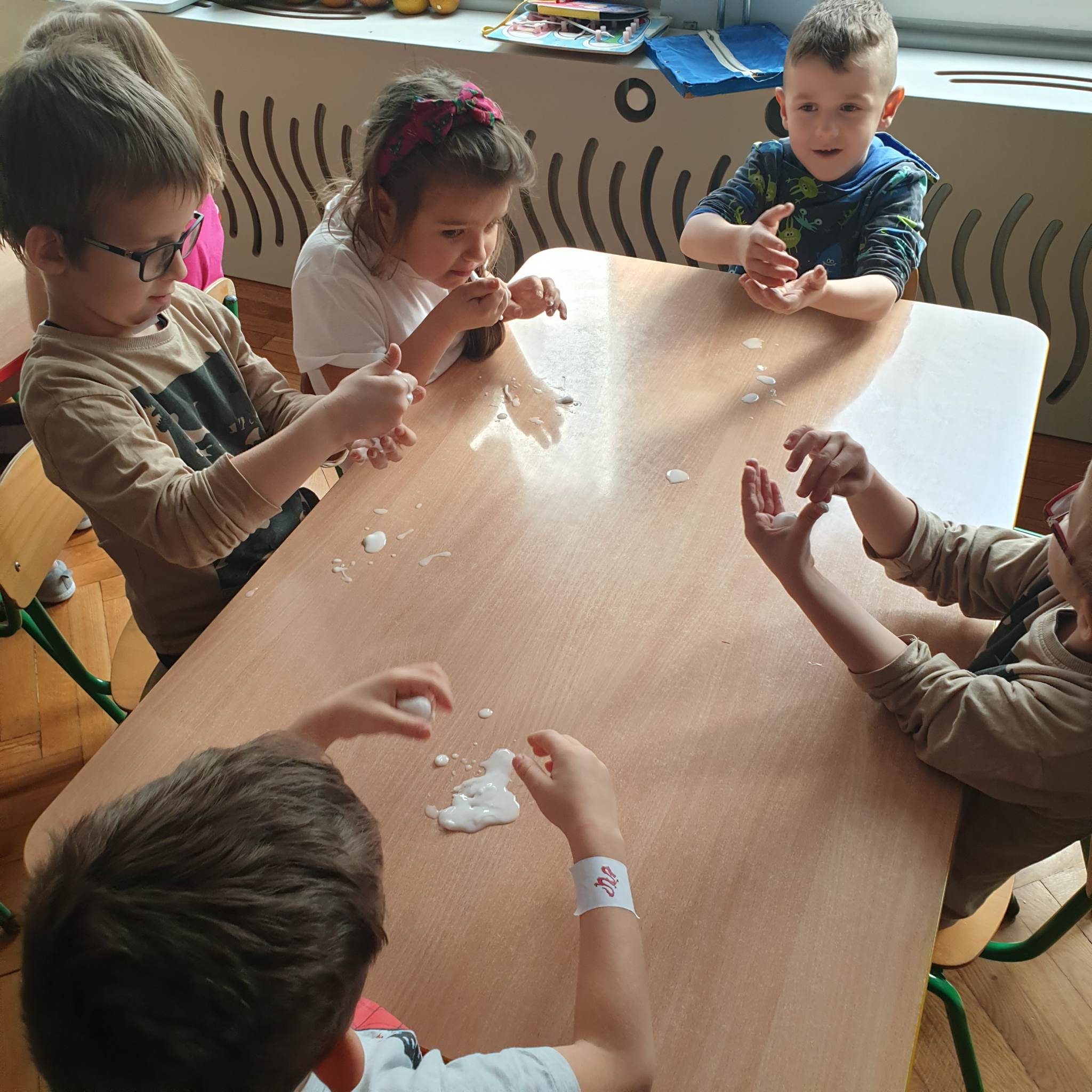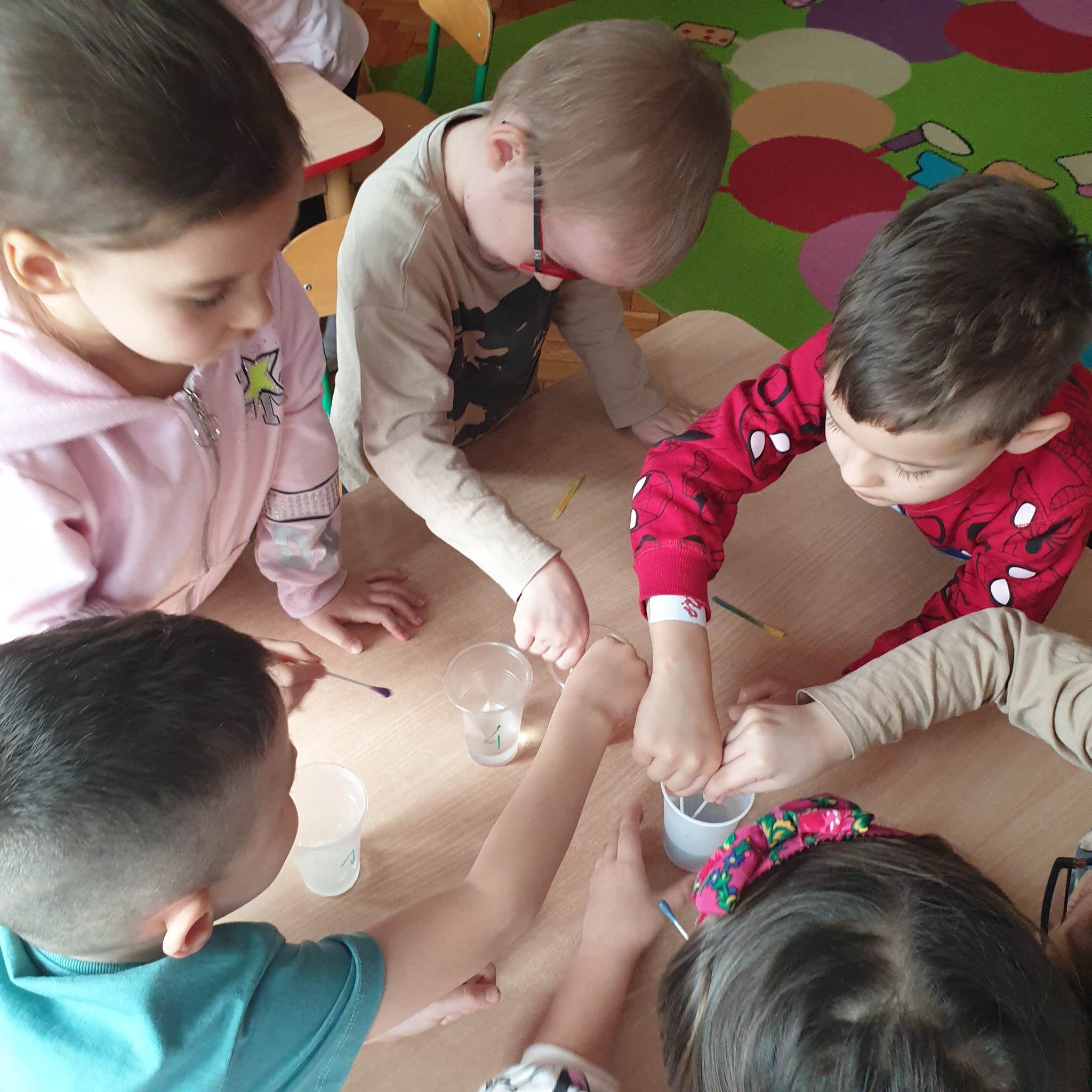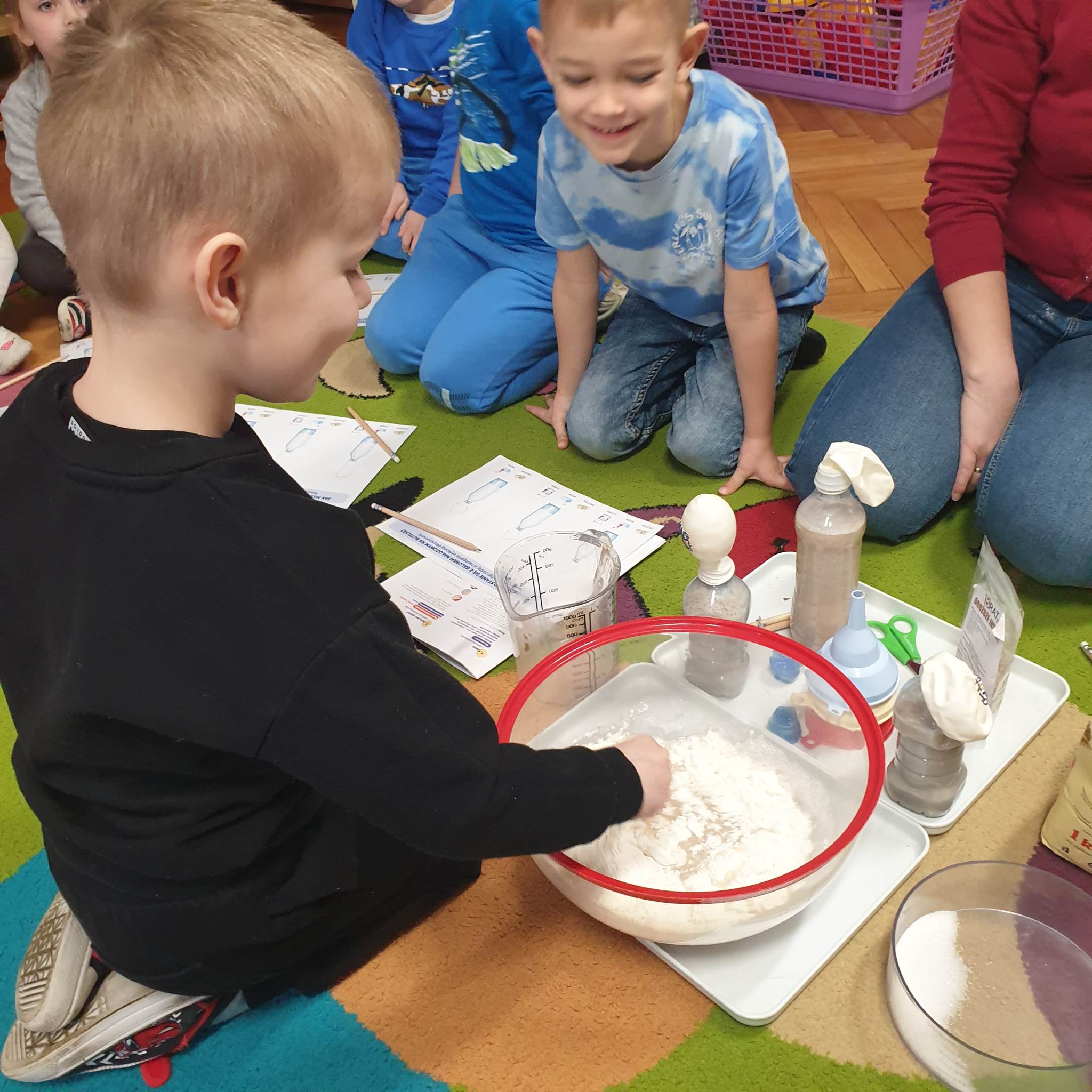 Przedszkolaki z grupy „Motylki“ biorą udział w programie „Mali Wielcy Odkrywcy“. W styczniu zajęły się eksperymentami kuchennymi, Dzieci dowiedziały się między innymi, jak powstaje ciasto, sprawdzały właściwości ciasta, drożdży, sprawdzały odczyn produktów, wykonały ciecz nienewtonowską. W eksperymentach wykorzystywały też barwniki spożywcze, czy owoce i warzywa. Zajęcia były pełne eksperymentów, doświadczeń i praktycznych obserwacji. Celem programu jest przede wszystkim propagowanie edukacji przez zachęcanie dzieci do przeprowadzania doświadczeń i obserwując nasze „Motylki“ podczas działania możemy stwierdzić, że cel zajęć został osiągnięty.
