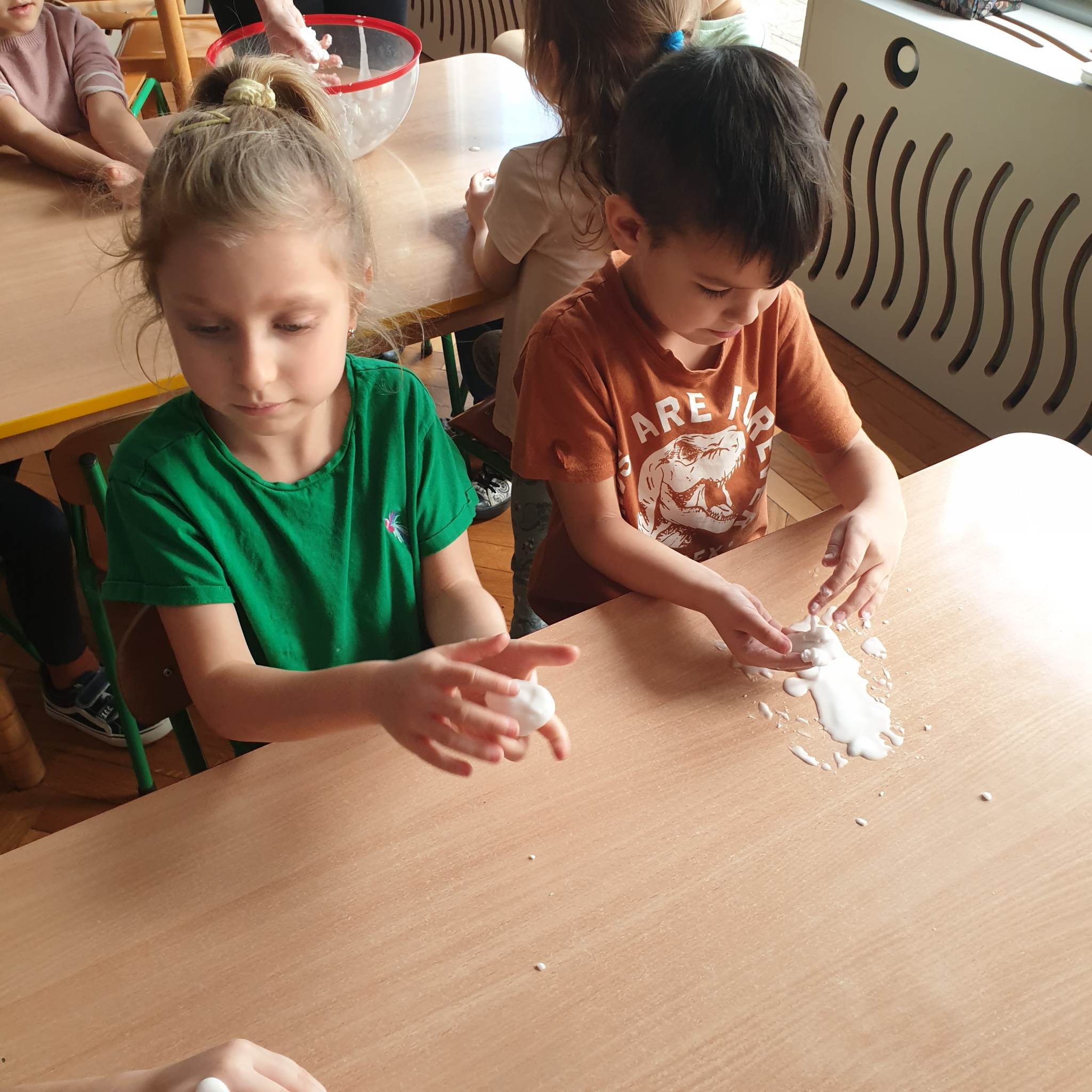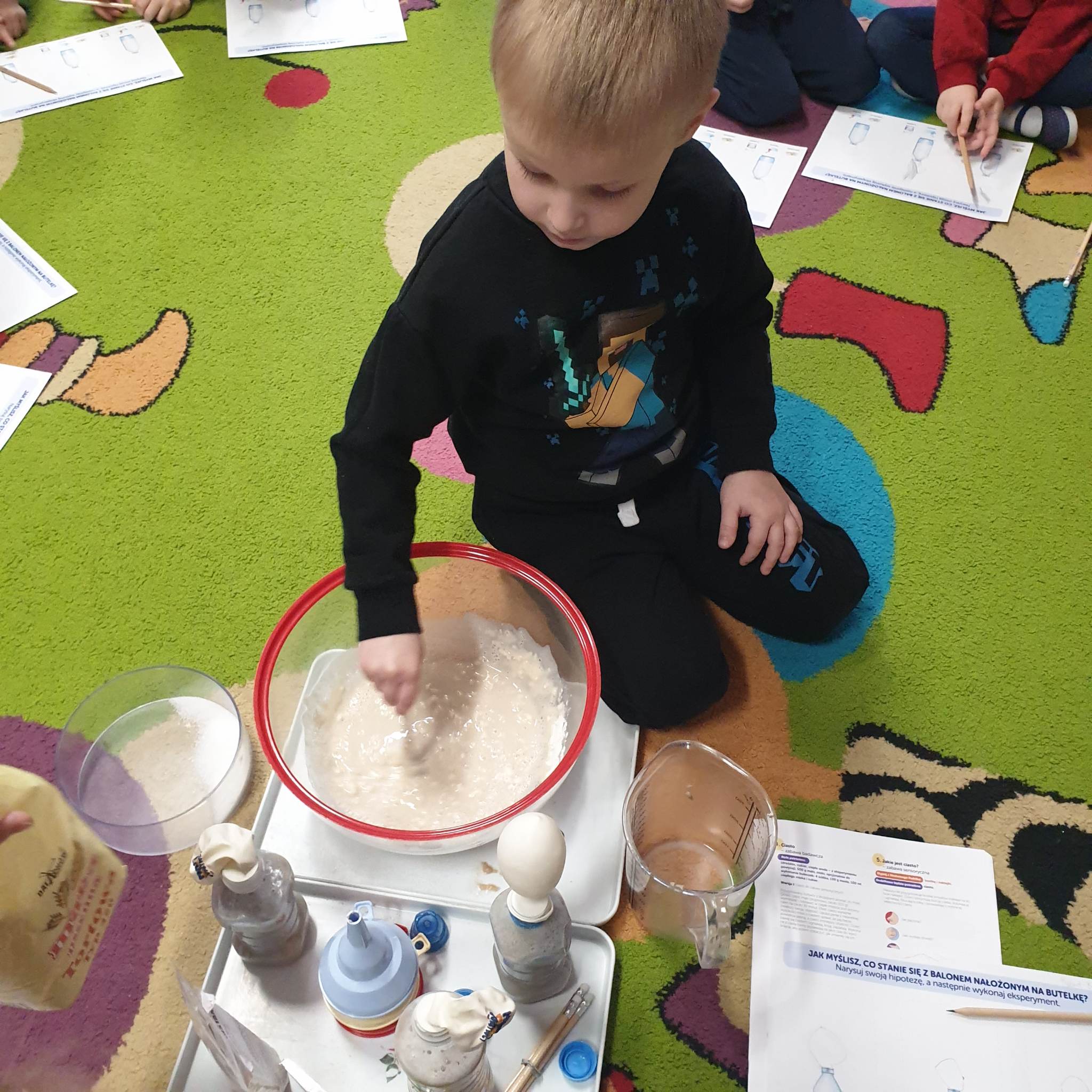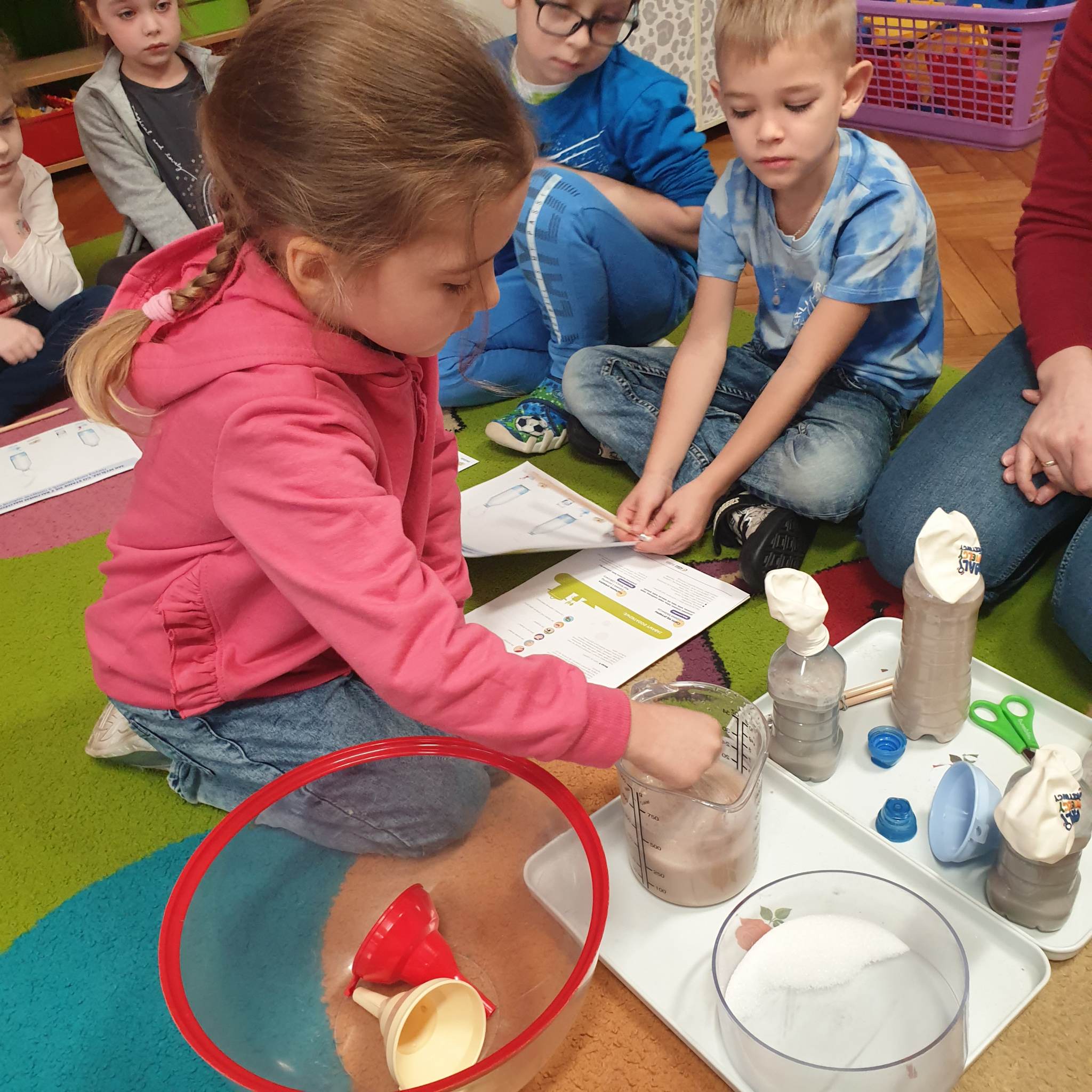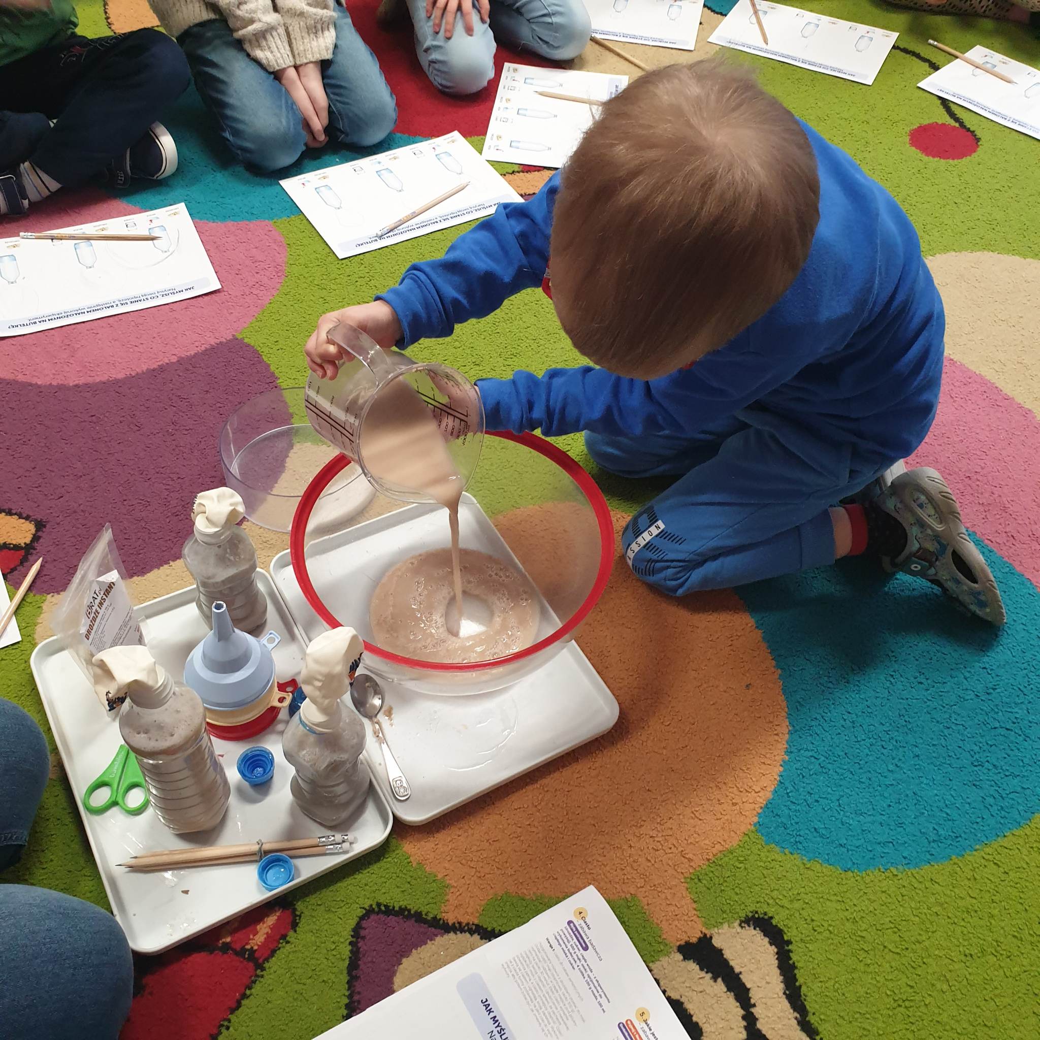 Przedszkolaki z grupy „Motylki“ biorą udział w programie „Mali Wielcy Odkrywcy“. W styczniu zajęły się eksperymentami kuchennymi, Dzieci dowiedziały się między innymi, jak powstaje ciasto, sprawdzały właściwości ciasta, drożdży, sprawdzały odczyn produktów, wykonały ciecz nienewtonowską. W eksperymentach wykorzystywały też barwniki spożywcze, czy owoce i warzywa. Zajęcia były pełne eksperymentów, doświadczeń i praktycznych obserwacji. Celem programu jest przede wszystkim propagowanie edukacji przez zachęcanie dzieci do przeprowadzania doświadczeń i obserwując nasze „Motylki“ podczas działania możemy stwierdzić, że cel zajęć został osiągnięty.