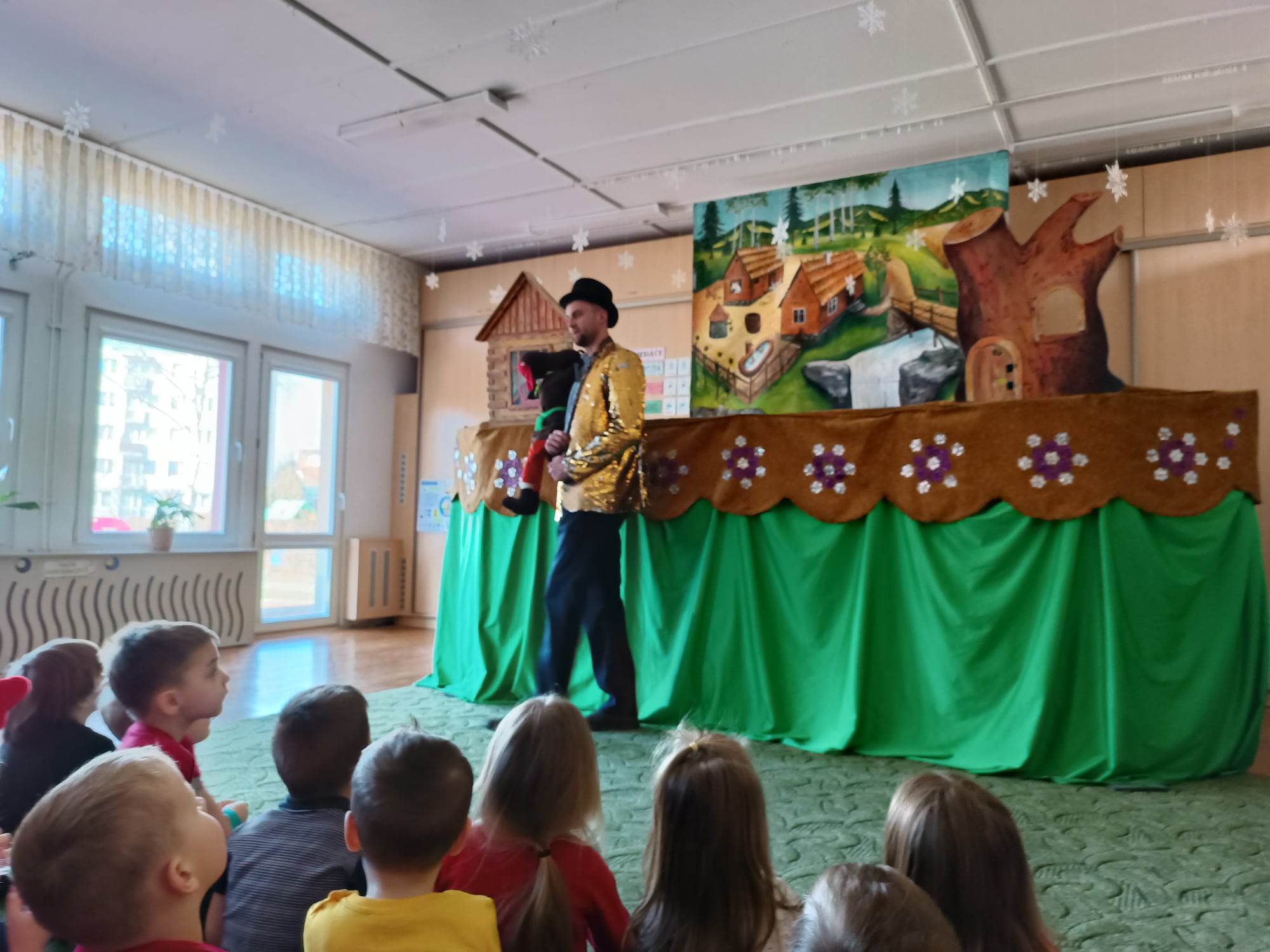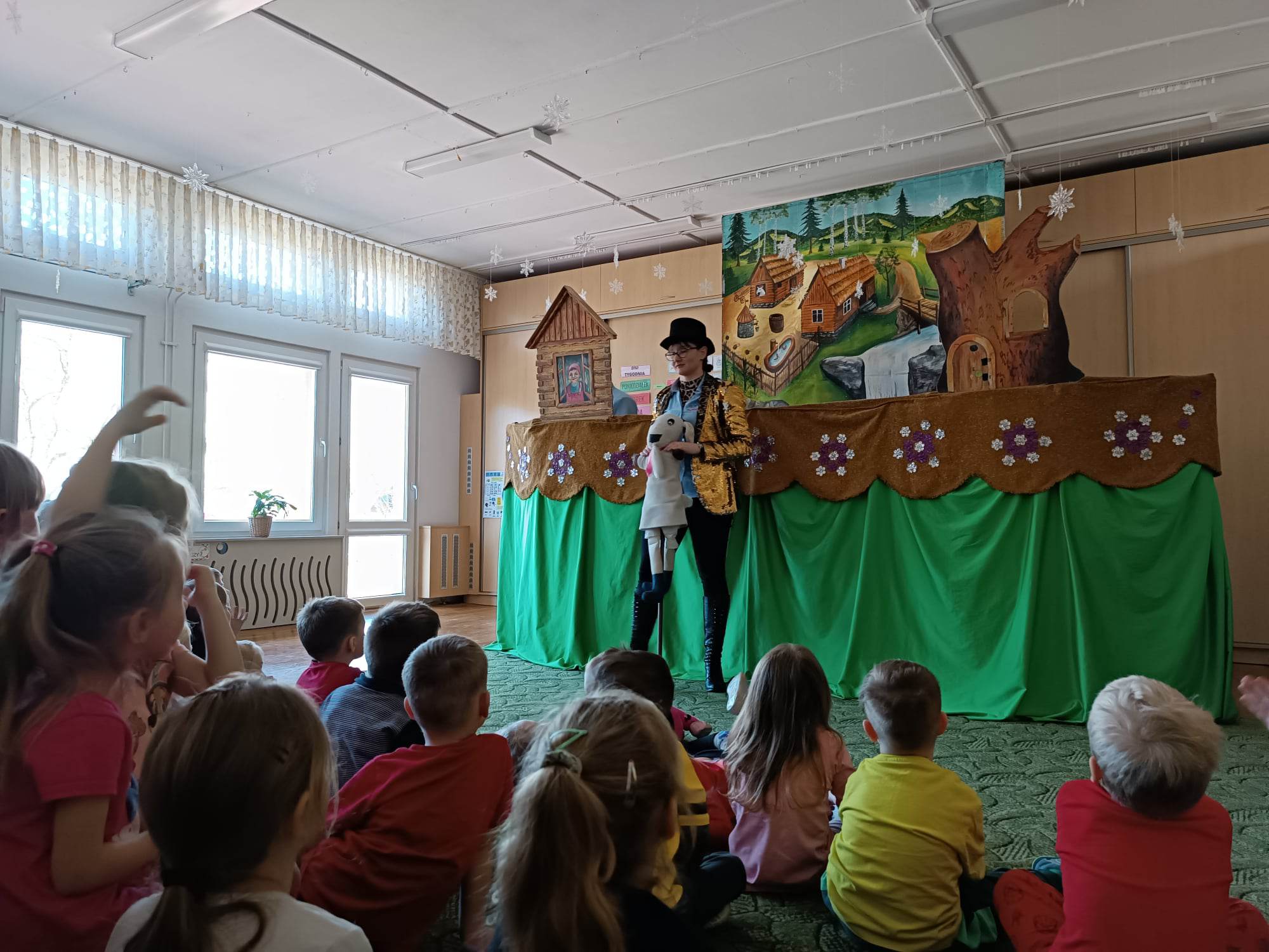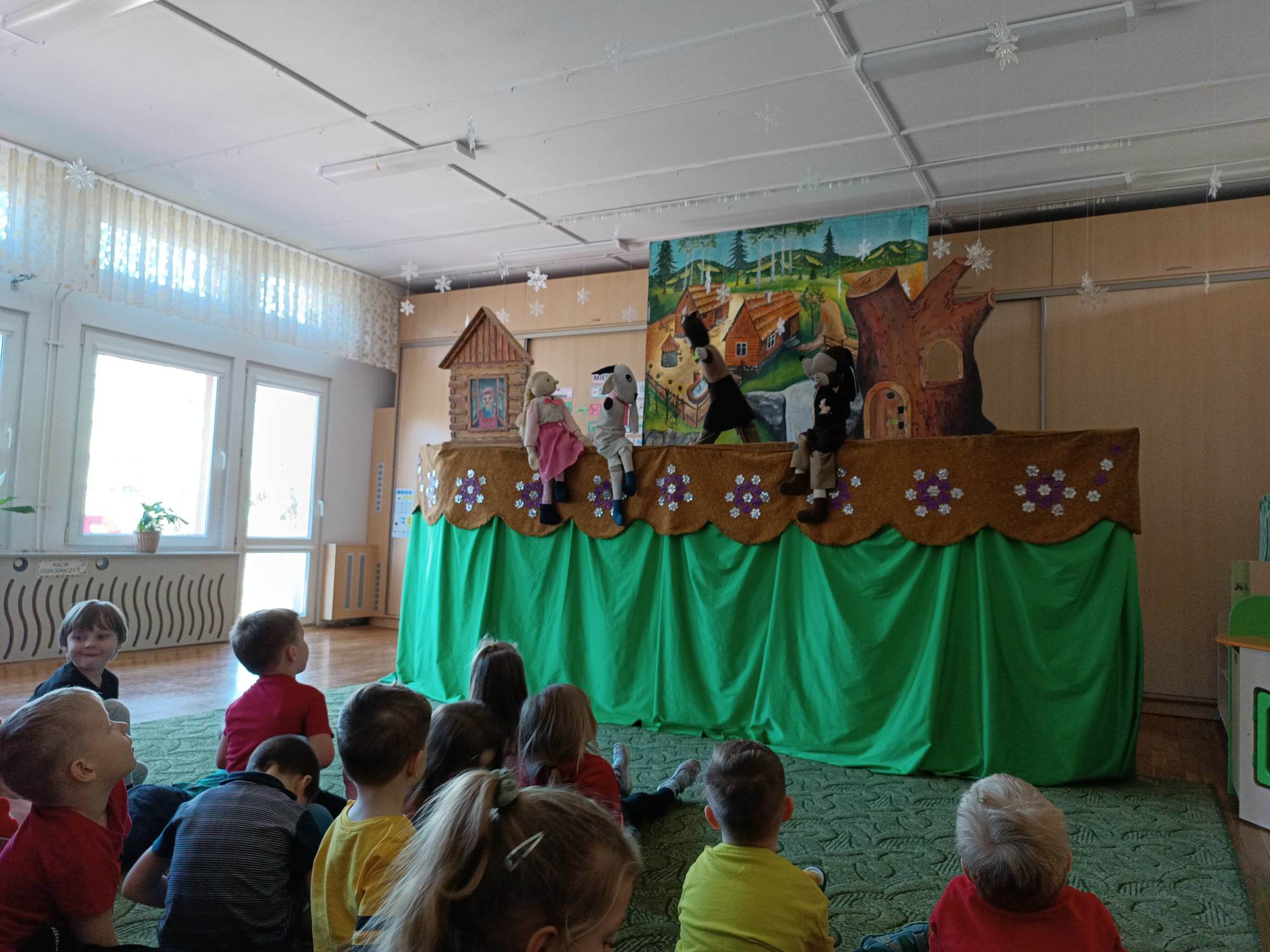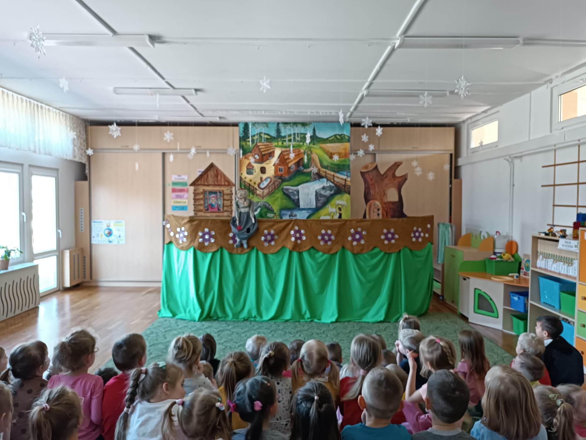 W ostatnim czasie przedszkolaki uczestniczyły w spektaklu Teatru Lalek Pinokio z Nowego Sącza pt: „Kłamstwa Kozy“. Spektakl w sposób humorystyczny ukazuje, że kłamstwo ma krótkie nogi, a w życiu nie należy oszukiwać i żerować na cudzej dobroci. Jest to historia sierotki Paulinki, która poszukuje pracy i miejsca dla siebie, trafia. Paulinka trafia do domu gospodyni, gdzie ma zaopiekować się podstępną Kozą. Koza okłamuje gospodynię, przez co dziewczyna musi szukać nowej pracy, jednak oszustwo szybko wychodzi na jaw i sama Koza zostaje wypędzona. Idzie do lasu, gdzie siłą zajmuje dom lisa. Dzieci z ciekawością obejrzały spektakl, który przypomniał im ważne zasady, dobro zawsze wygrywa, a kłamstwo nie popłaca.
