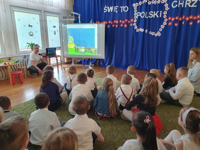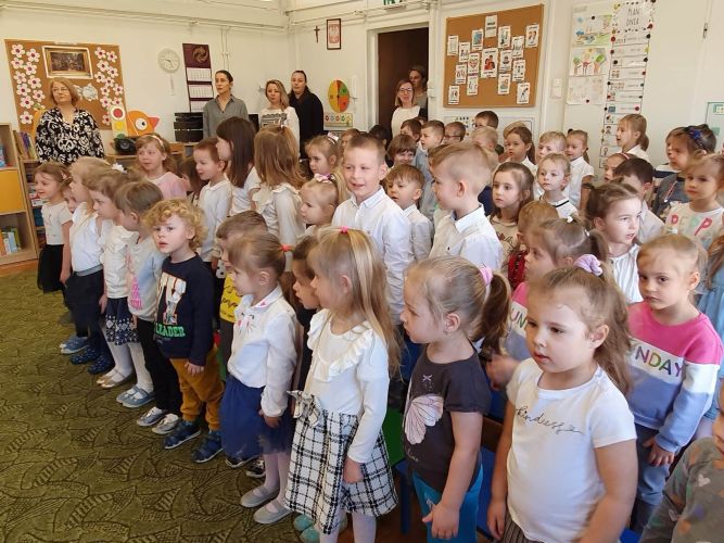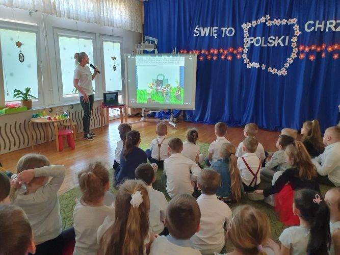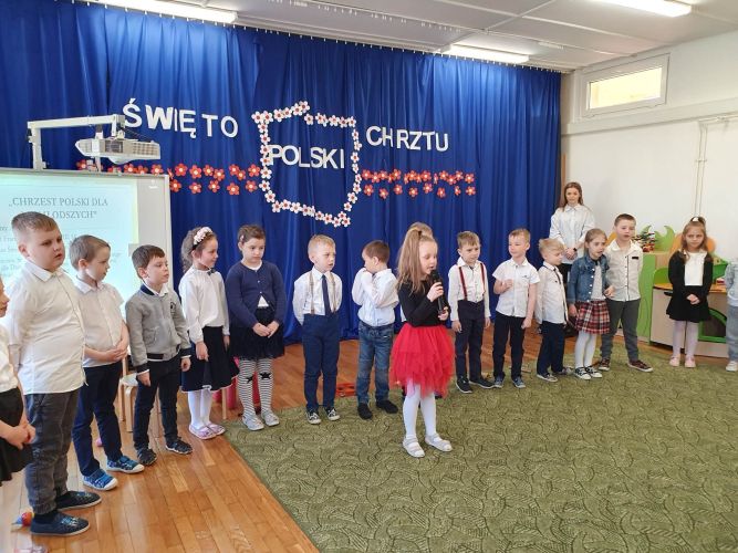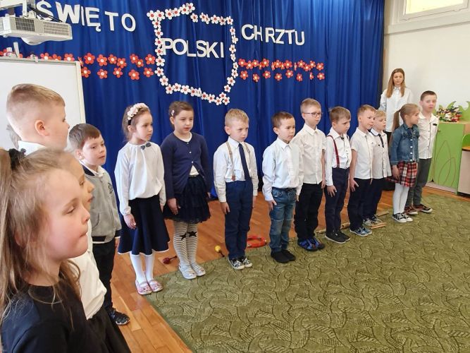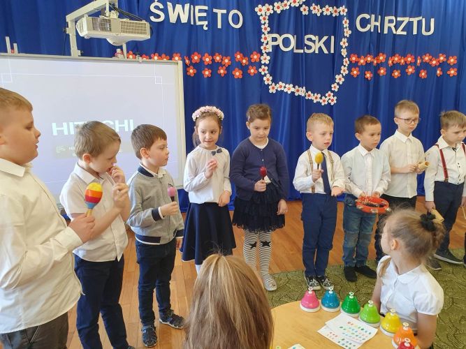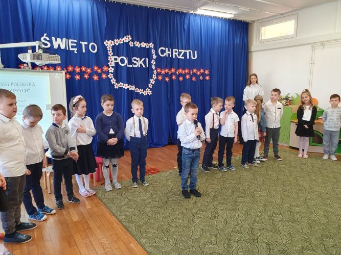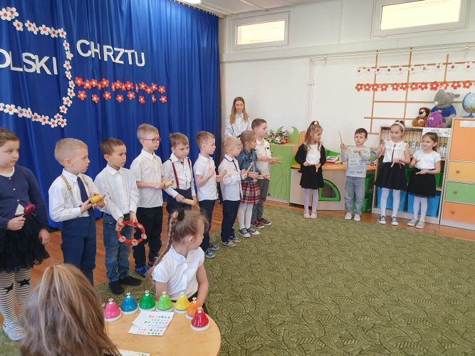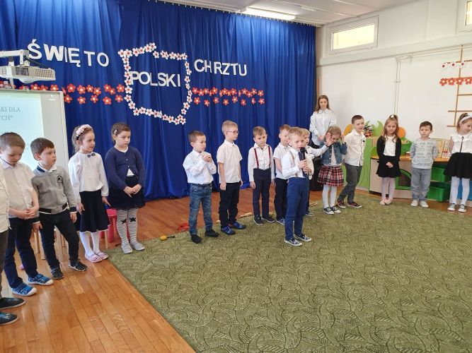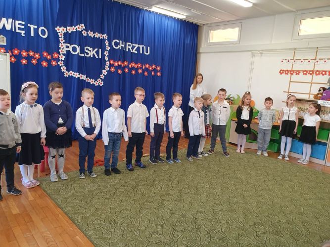 14 kwietnia 2023 r. dzieci z grupy „Zajączki“ włączyły się w akcję rozpropagowania nowego święta, jakim jest Święto Chrztu Polski, uroczystą akademią upamiętniającą to wydarzenie. W wydarzeniu tym uczestniczyli zaproszeni goście: Pani Dyrektor, nauczyciele i dzieci z młodszych grup przedszkolnych.