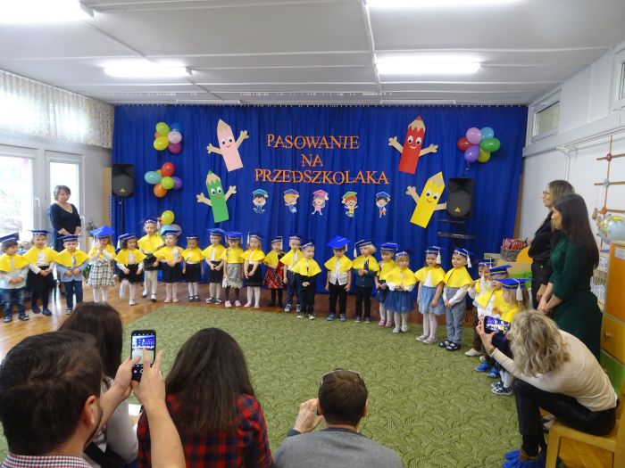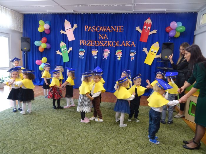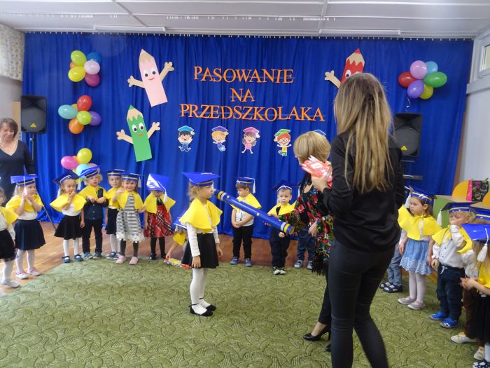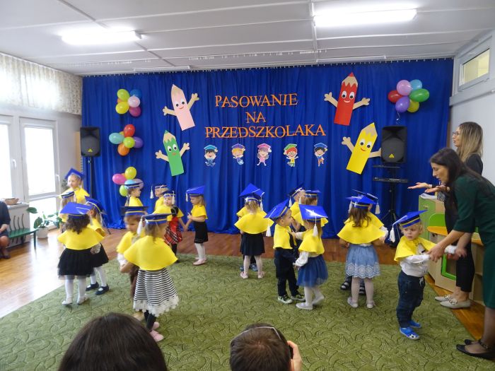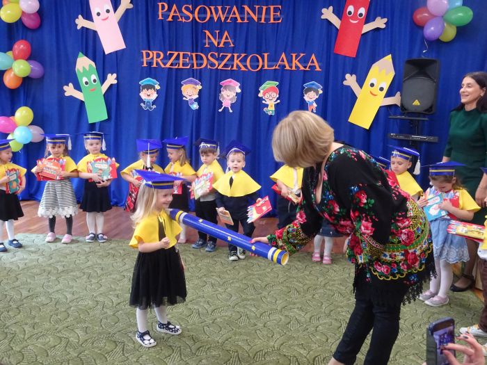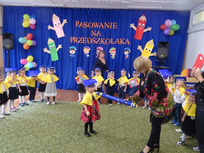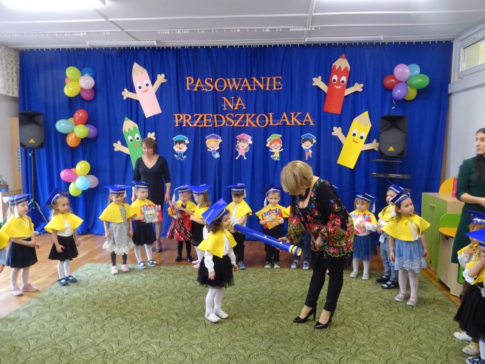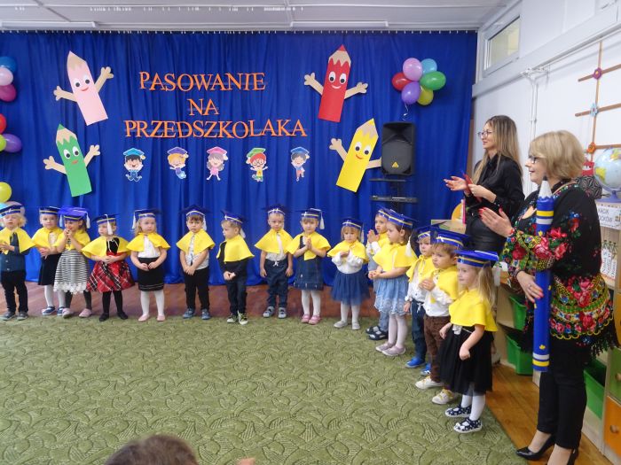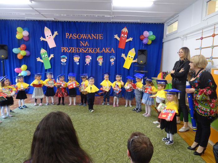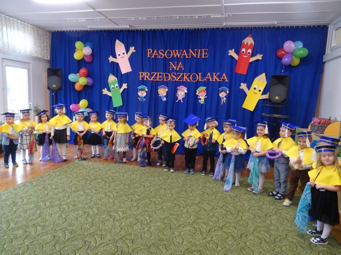 15 listopada 2022r. w grupie „Krasnale“ odbyła się uroczystość „Pasowania na Przedszkolaka“. Mali przedszkolacy zaprezentowali swoim Rodzicom przygotowany z dużą starannością program artystyczny, w którym śpiewali piosenki, tańczyli, recytowali wiersze oraz grali na instrumentach muzycznych. Po części artystycznej, Pani Dyrektor dokonała uroczystego pasowania każdego dziecka na przedszkolaka. Na pamiątkę tego ważnego wydarzenia każdy przedszkolak otrzymał dyplom, książeczkę oraz mały słodki upominek. Po skończonym wydarzeniu, Rodzice i dzieci mieli czas dla siebie – pamiątkowe zdjęcia oraz słowa wdzięczności. Wszystkim podobała się uroczystość i w niejednym oku pojawiły się łzy wzruszenia.